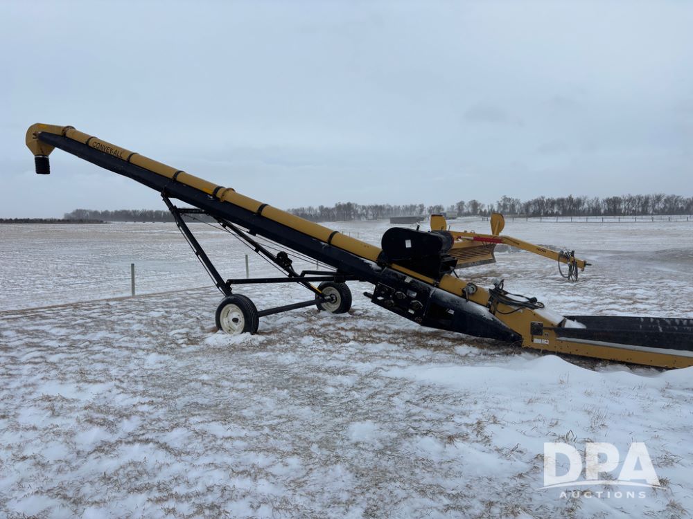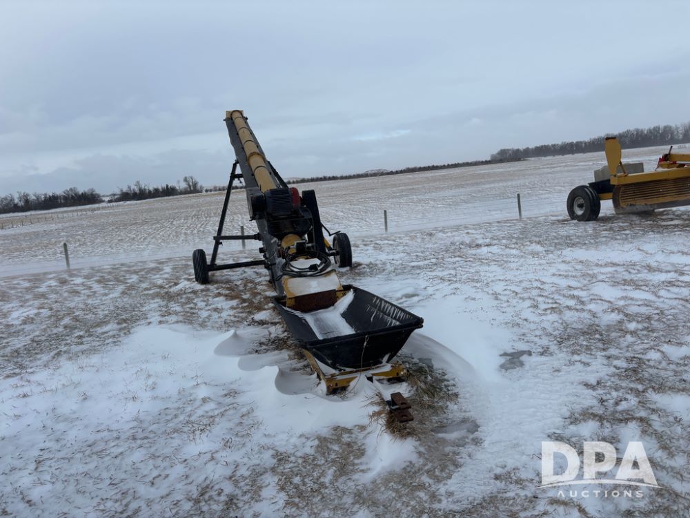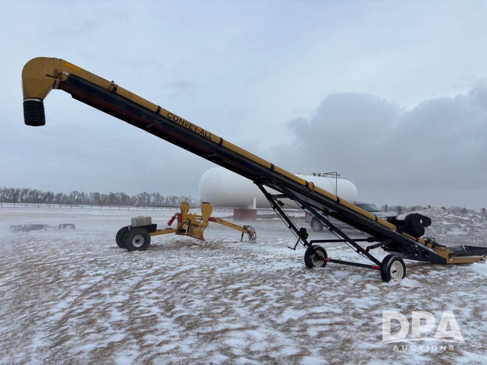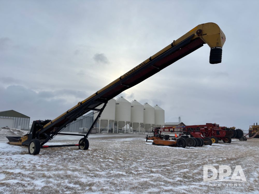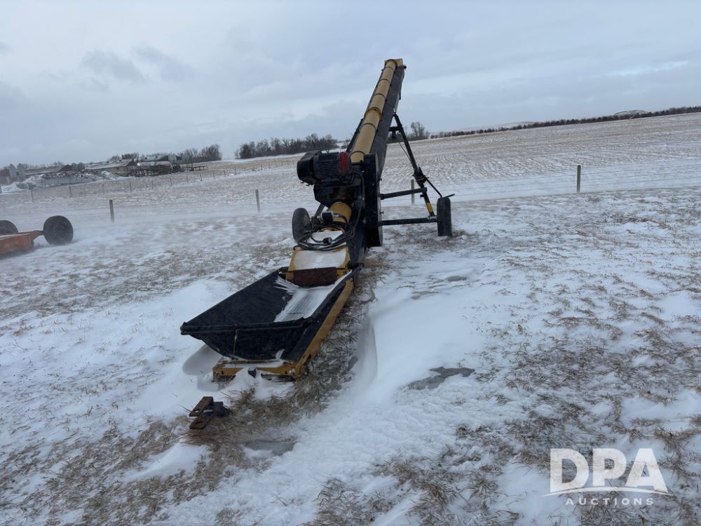 Convey all Seed Conveyor (DR12967), model 1035 portable electric seed conveyor, 60hp 3 phase electric motor, collapsible hopper, cleated belt.