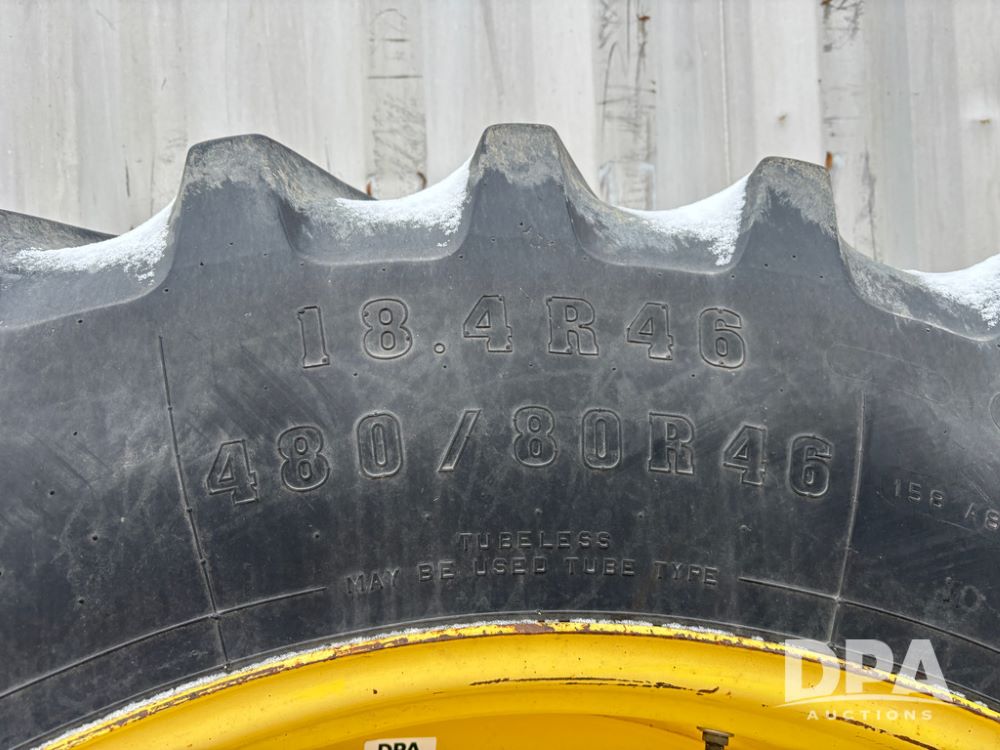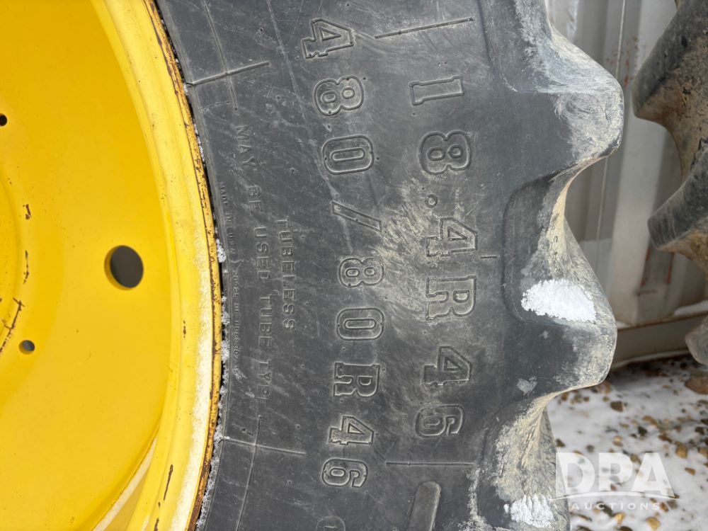 Firestone Dual Tires (DR12968), pair of Firestone 480/80R46 tires, mounted on John Deere wheels.