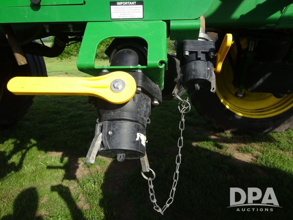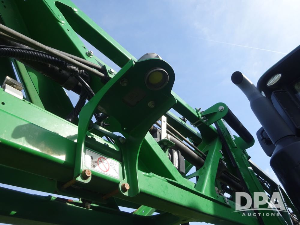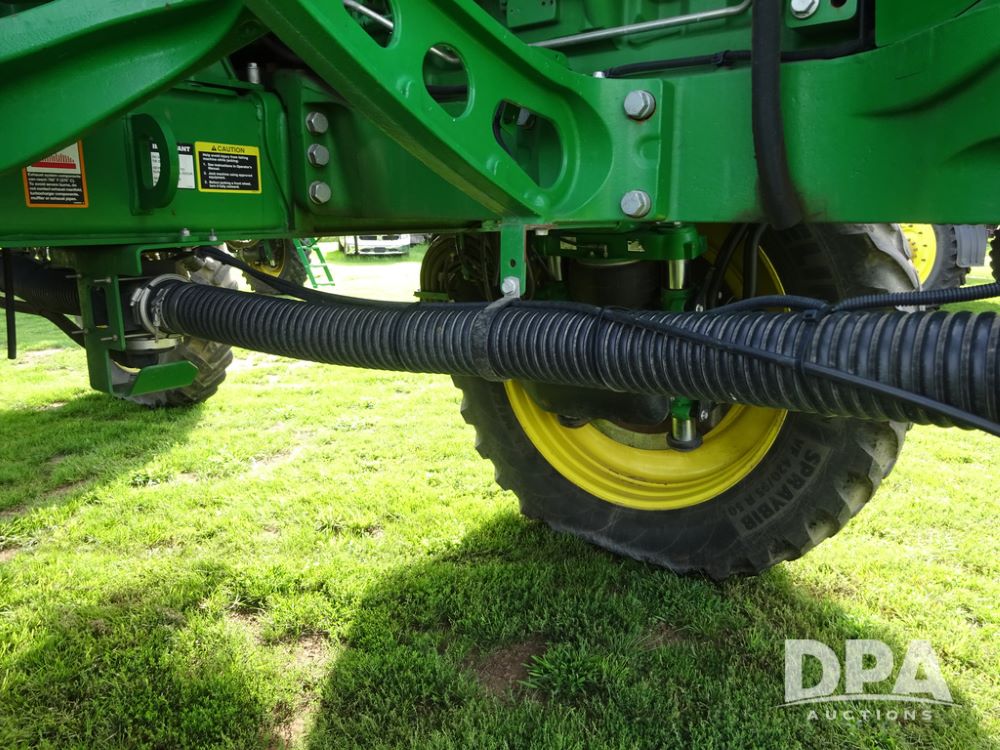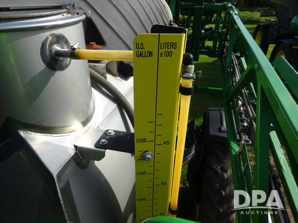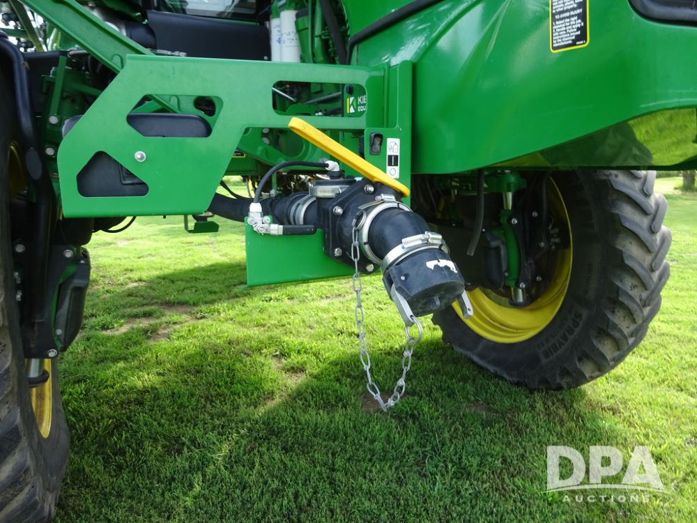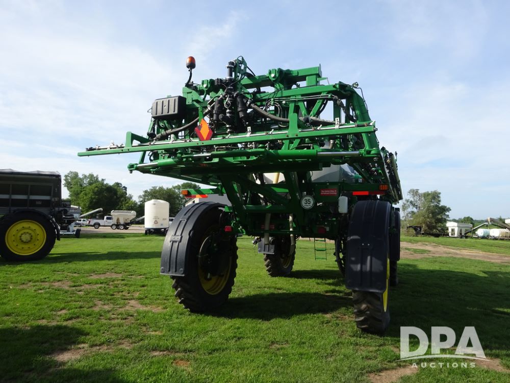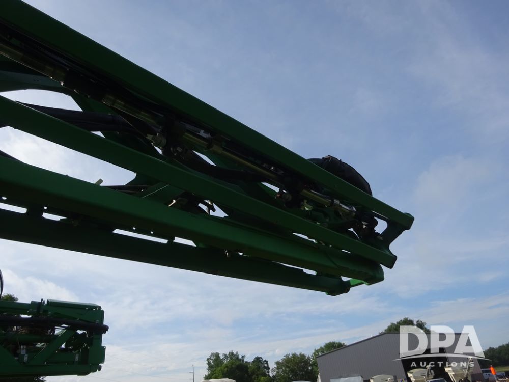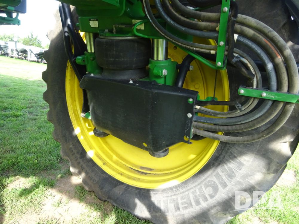 2018 John Deere R4045 Sprayer (PZ13716 Unit 106354), John Deere diesel engine, hydrostatic drive, 1200 gallon stainless steel liquid system, 120' boom, stainless steel chemical inductor, saddle mounted poly rinse tank, auto height adjust sensors, front and side load, StarFire 6000 globe, Green Star 3 display, buddy seat, cab heat/air conditioning, Michelin 420/95R50 row crop tires, full set fenders, shows 1,737 hours.