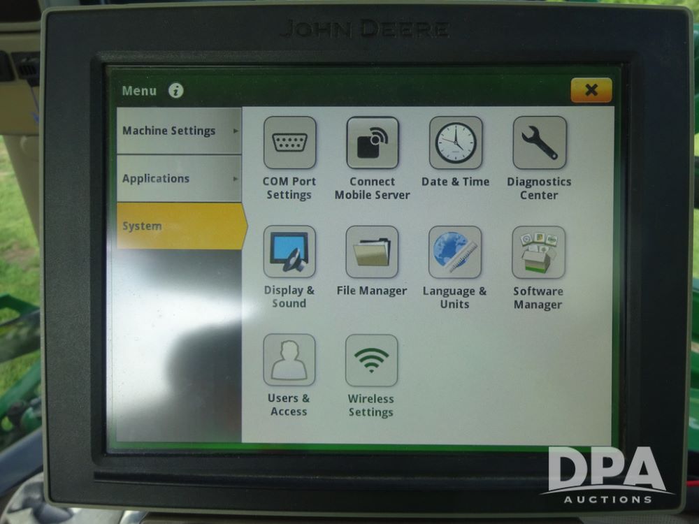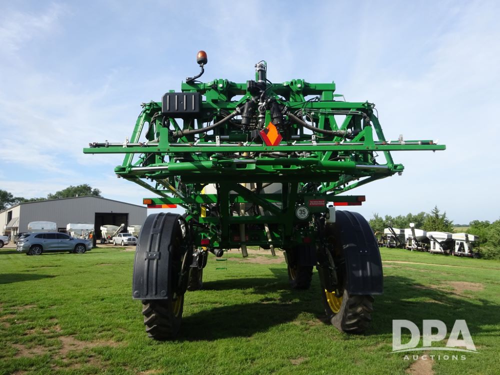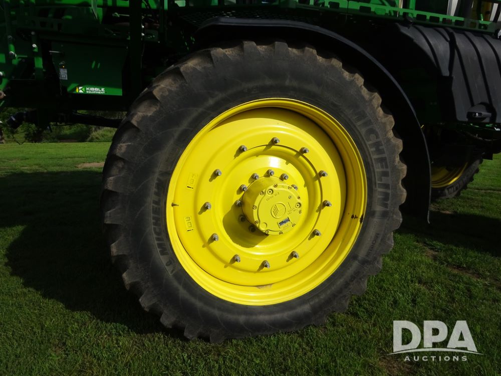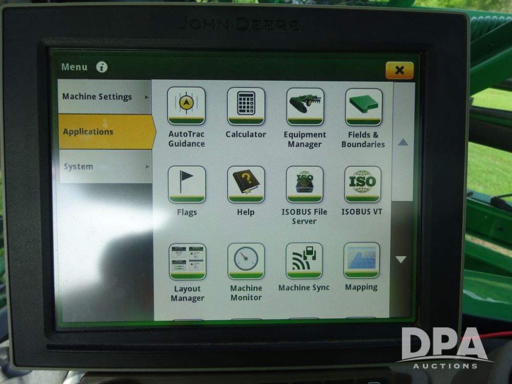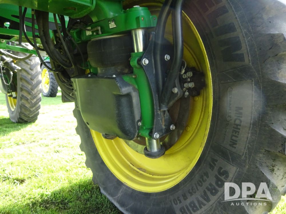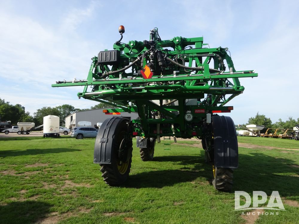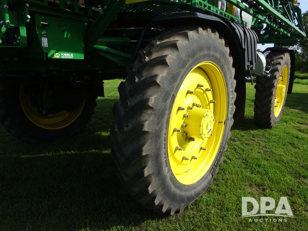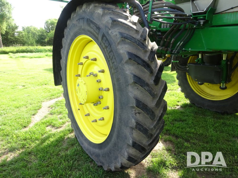 2018 John Deere R4045 Sprayer (PZ13716 Unit 106354), John Deere diesel engine, hydrostatic drive, 1200 gallon stainless steel liquid system, 120' boom, stainless steel chemical inductor, saddle mounted poly rinse tank, auto height adjust sensors, front and side load, StarFire 6000 globe, Green Star 3 display, buddy seat, cab heat/air conditioning, Michelin 420/95R50 row crop tires, full set fenders, shows 1,737 hours.