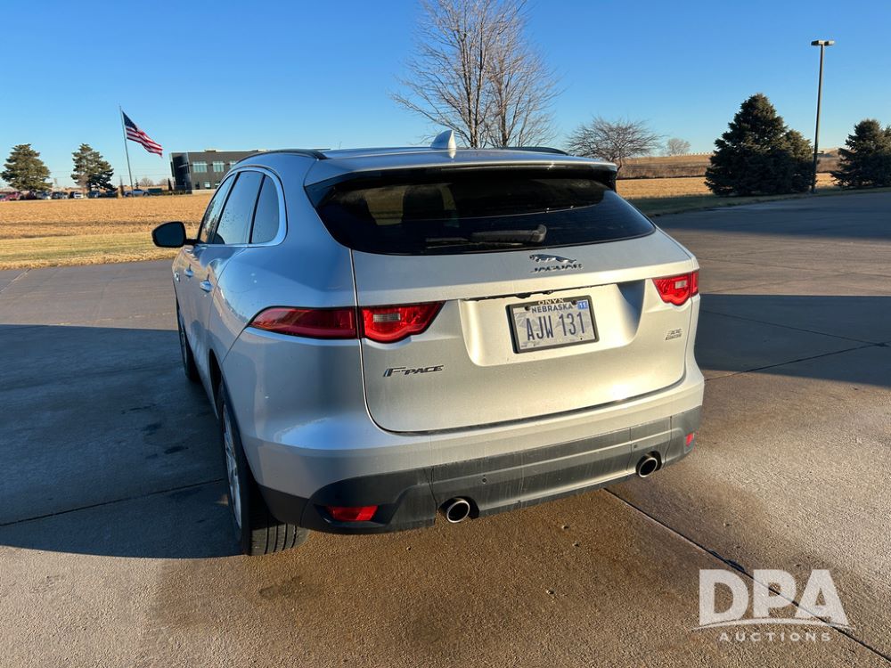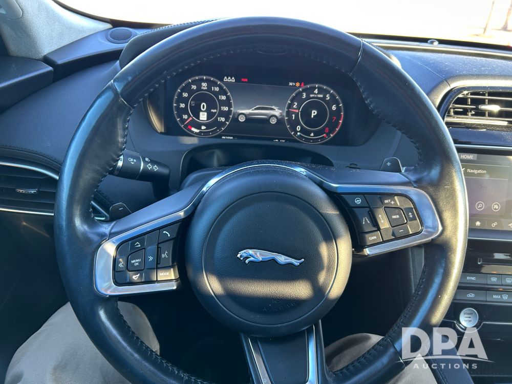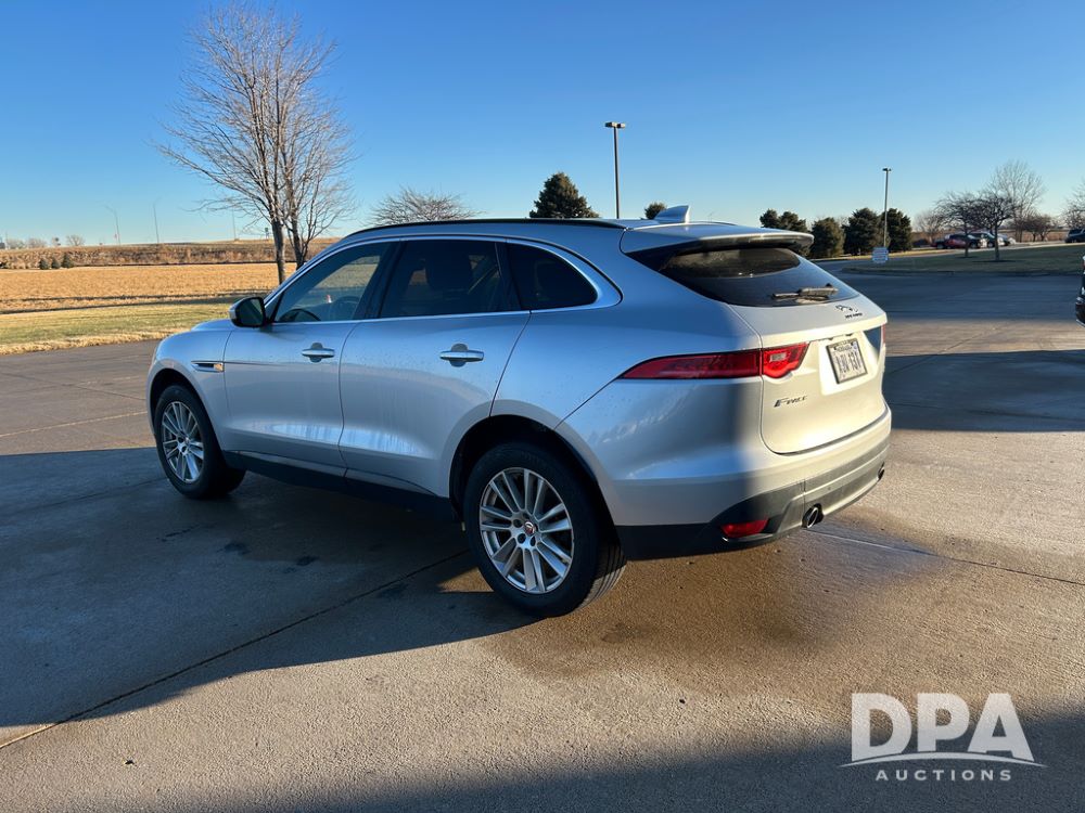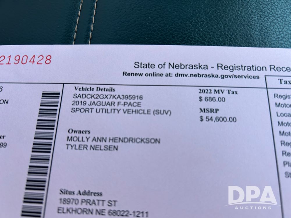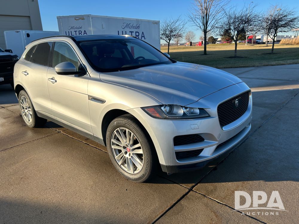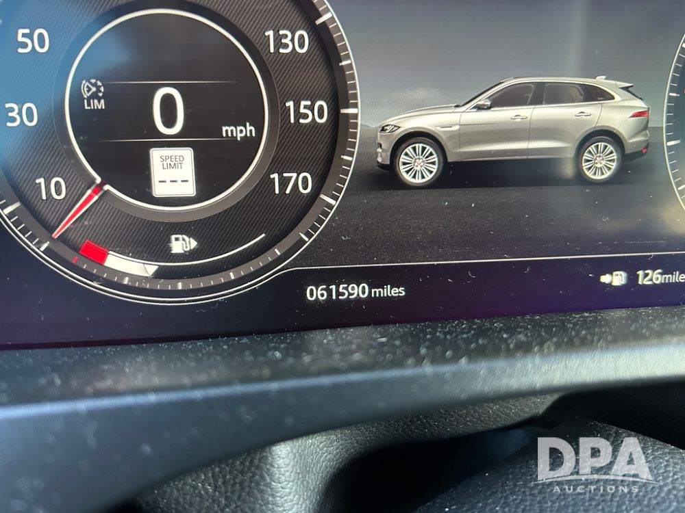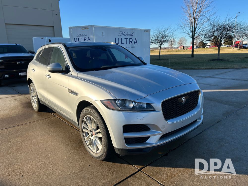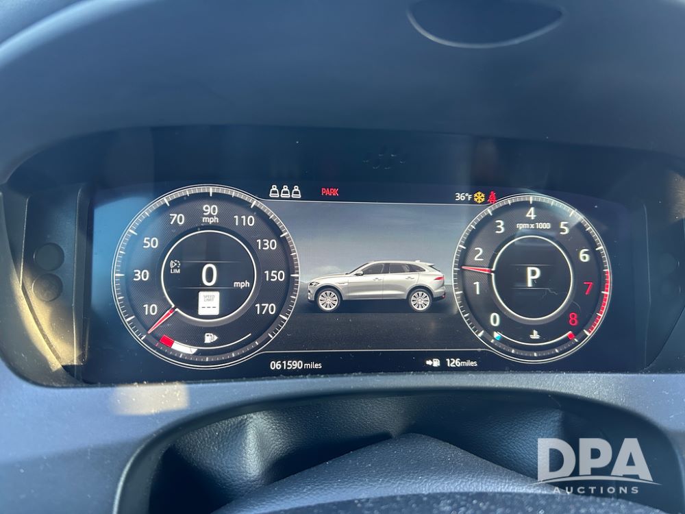 2019 Jaguar F-Pace SUV (CP1425), 2.0L 4 Cylinder turbo engine, 8 speed automatic transmission, 10 inch touchscreen, panoramic roof, power windows, locks, front seats, AM/FM radio and HD radio, adaptive cruise control, 22 inch wheels, shows 61,590 miles.