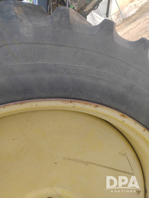 Notes: Pump is almost new. Left boom is bent. Needs frame work as the boom rubs tires when folded. Seller will move the axles in for transport after sale.