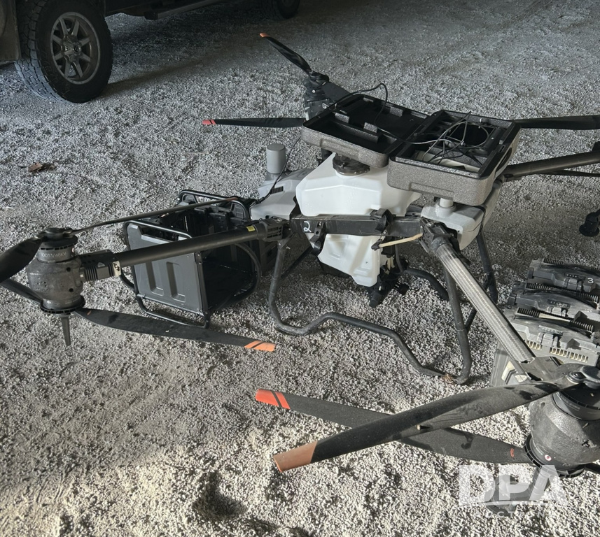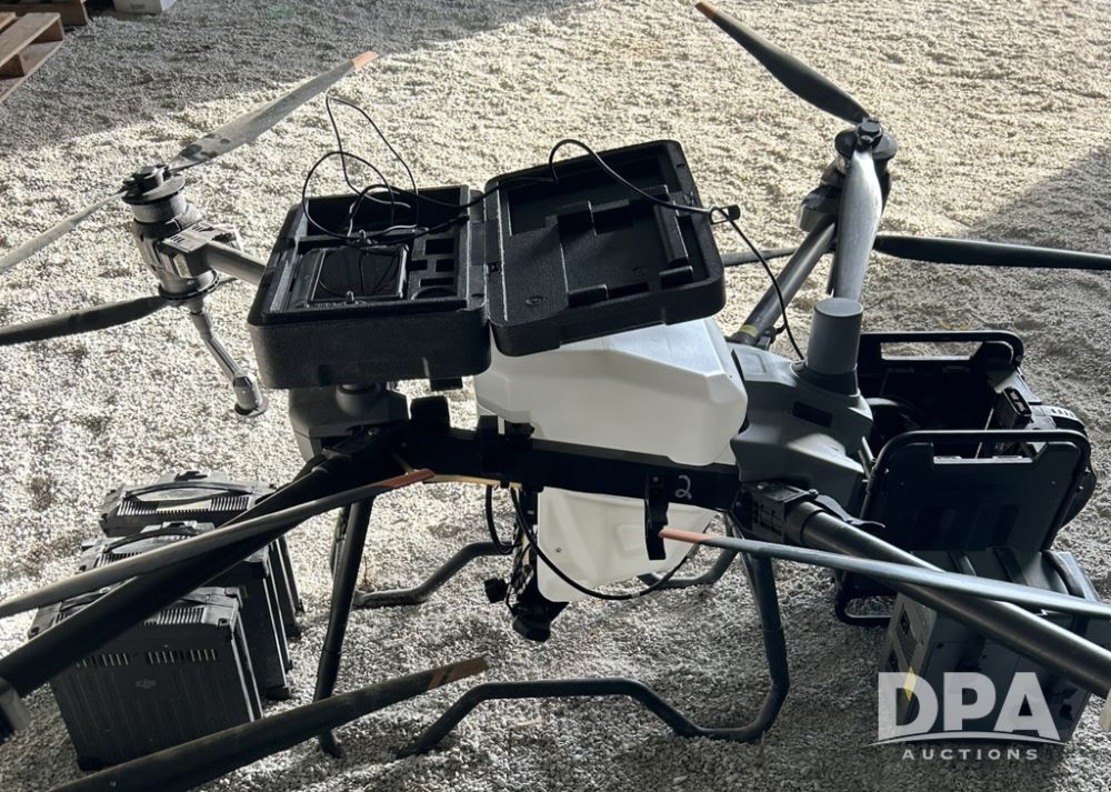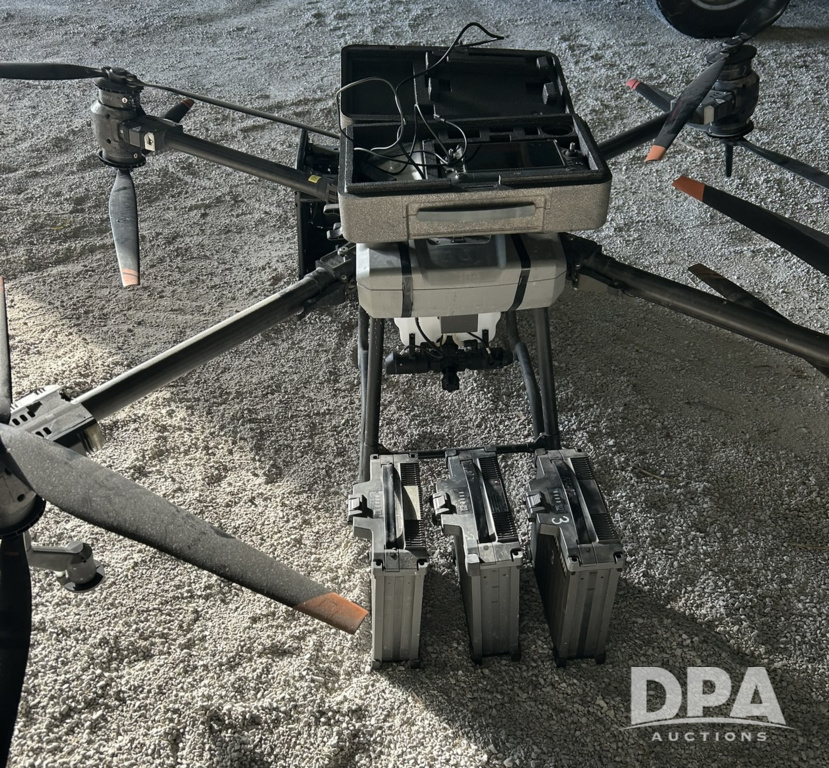 T40 Drone with Remote (LLD1631), T40 drone with remote, 1-remote charger, 1-C8000 battery charger, 3-db 1560 batteries, 1-colling station with extension charging cable and 110 volt AC adapter, 1-set of propellers and spacers, drone has 216 hours 57minutes of flight time.