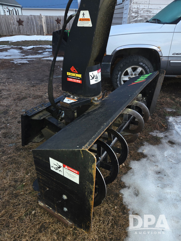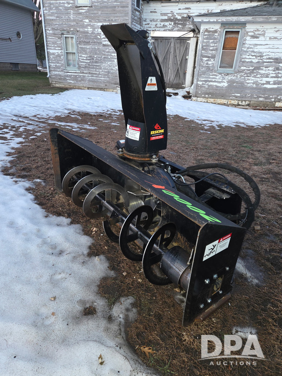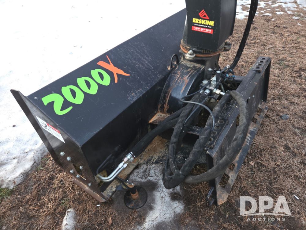 Erskine Snow Blower (DR12973), model 2000X, 2 stage hydraulic, skid loader quick mount, hydraulic spout.