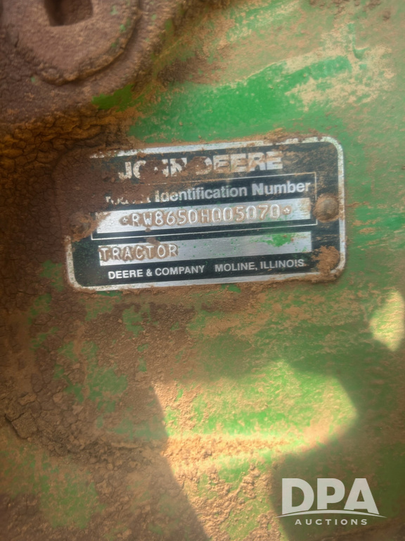 John Deere 8650 Tractor (LLD1623), John Deere diesel engine, 4WD, 3pt hitch, new injector pump, new starter.