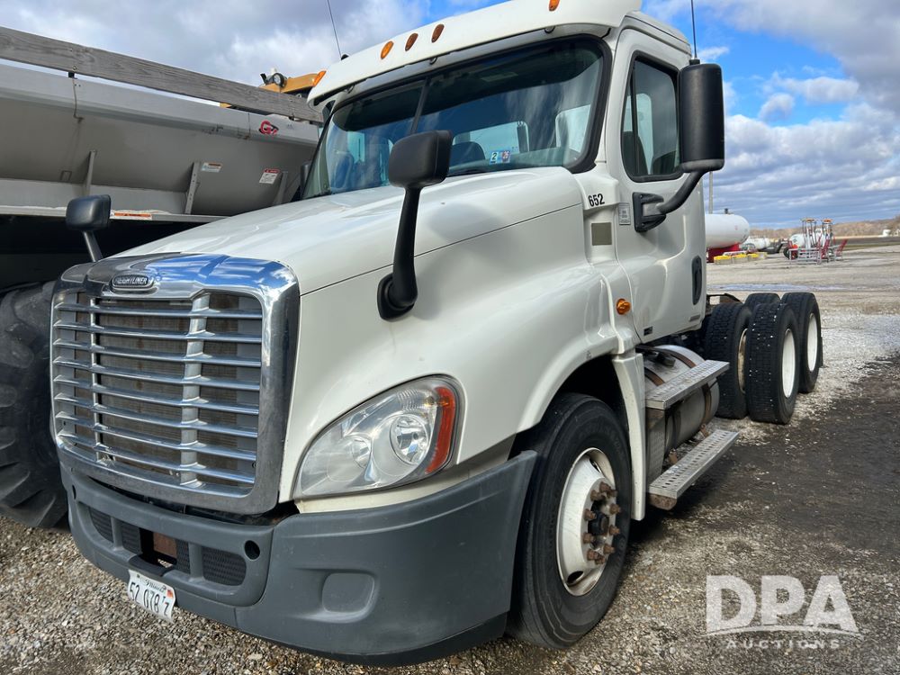 2012 Freightliner Cascadia Day Cab Truck (CP1465, Unit 652), Detriot DD13 diesel engine, Eaton Fuller 10 speed transmission, air conditioning, heat, Am/Fm CD radio, cruise control, engine brake, power windows & locks, tandem axle, full screw, air ride suspension, Jost 5th wheel, 11R22.5 tires, approx. 573,006 miles.
