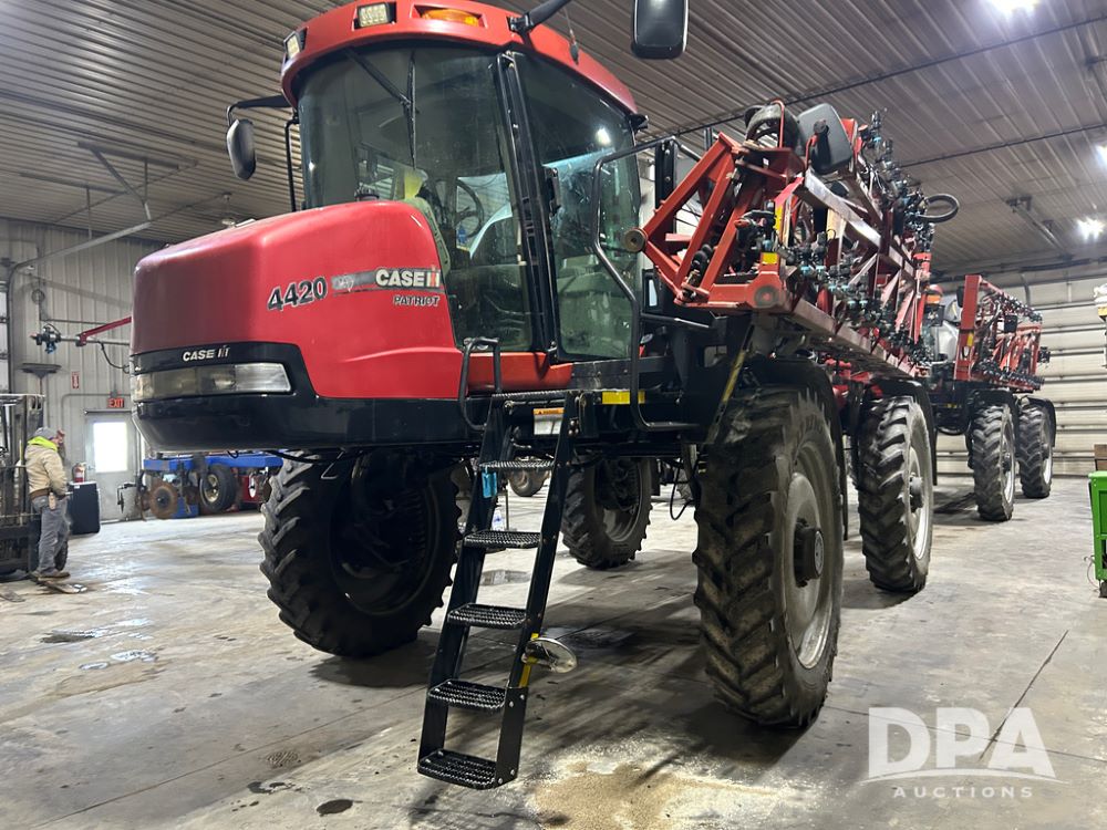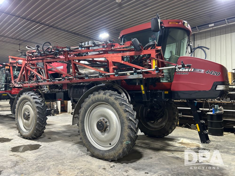 2010 Case IH 4420 Sprayer (CP1412, Unit 3041), diesel engine, hydrostatic drive, 1,200 gallon stainless steel liquid system, 120' boom, saddle mounted poly rinse tank, pulse nozzles, AIM Command, stainless steel chemical inductor, Raven Pro controller, cab cam, heat/air conditioning, AM/FM CD radio, 380/90R46 row crop tires, shows 4,760 hours.