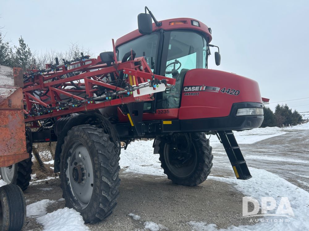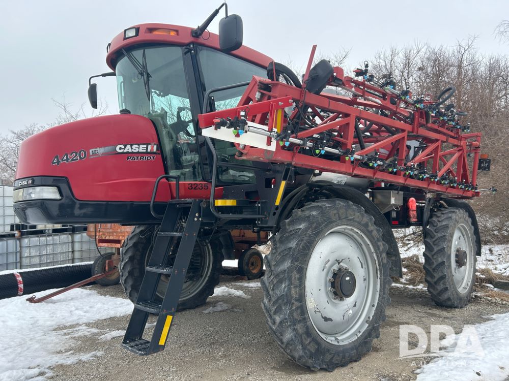 2010 Case IH 4420 Sprayer (CP1409, Unit 3235), diesel engine, hydrostatic drive, 1200 gallon stainless steel liquid system, 120' boom, pulse nozzles on 20'' centers, stainless steel chemical inductor, AIM Command, Raven Viper IV controller, saddle mounted poly rinse tank, cab cam, AM/FM CD radio, 380/90R436 row crop tires, shows 4,217 hours.