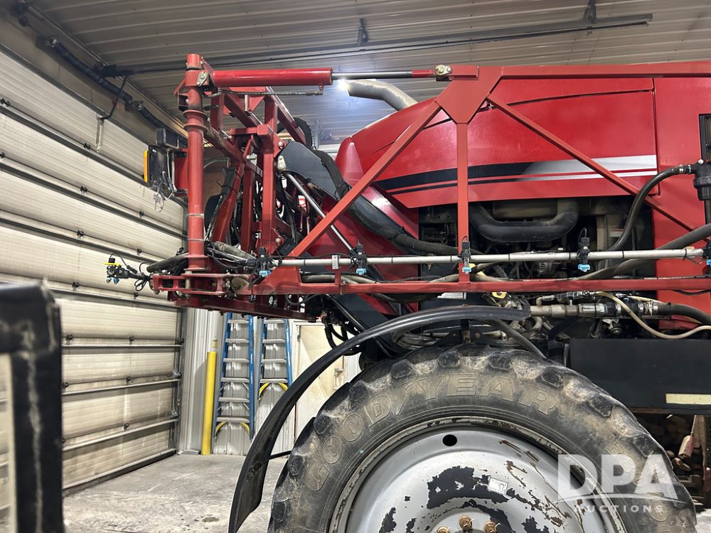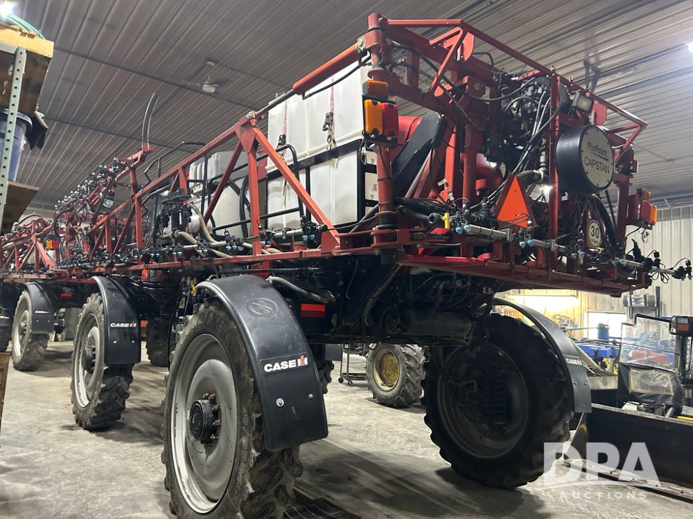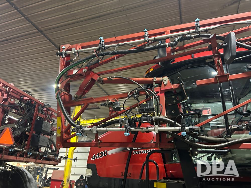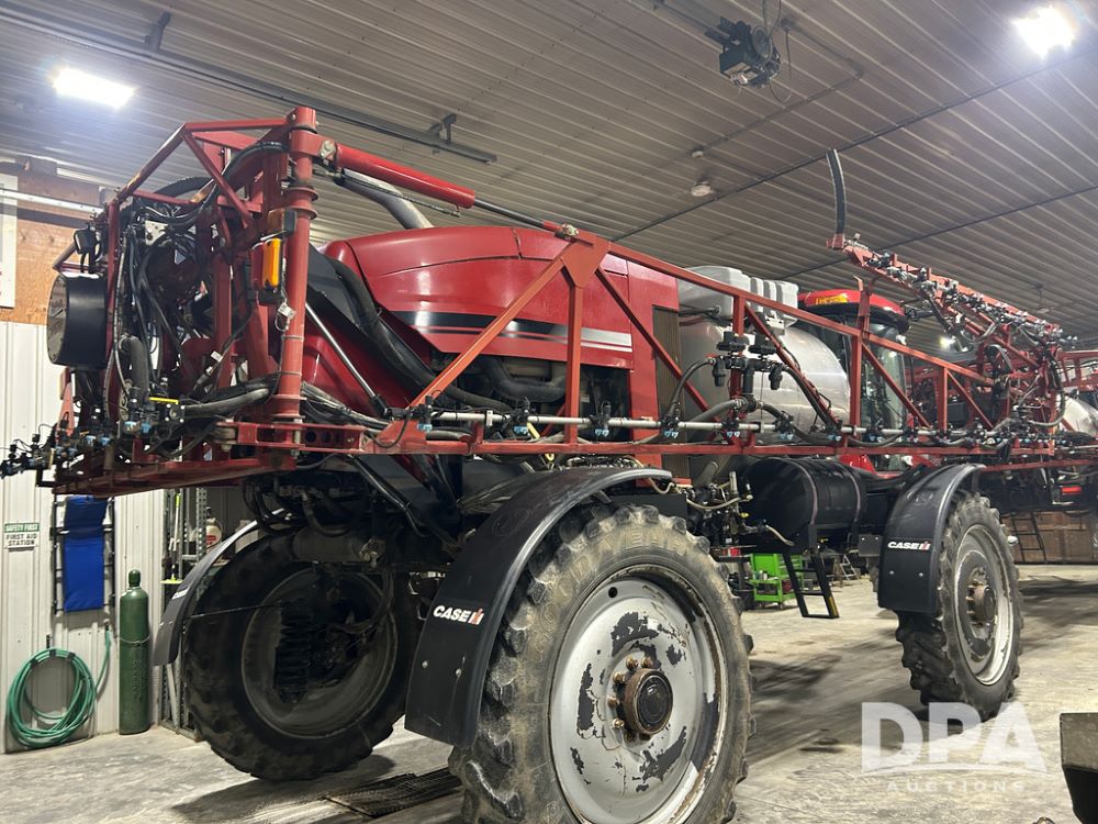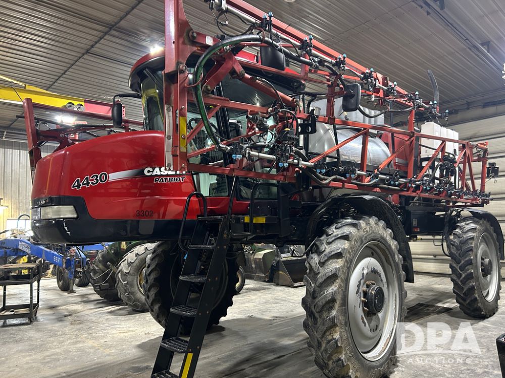 2014 Case IH 4430 Sprayer (CP1413, Unit 3302), diesel engine, hydrostatic drive, 1200 gallon stainless steel liquid system, 90' boom, saddle mounted poly rinse tank, pulse nozzles, Carstan System, Raven Viper IV controller, Raven Side Kick direct injection w/poly liquid tanks, cab heat/air conditioning, 380/90R46 row crop tires,