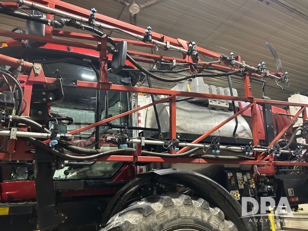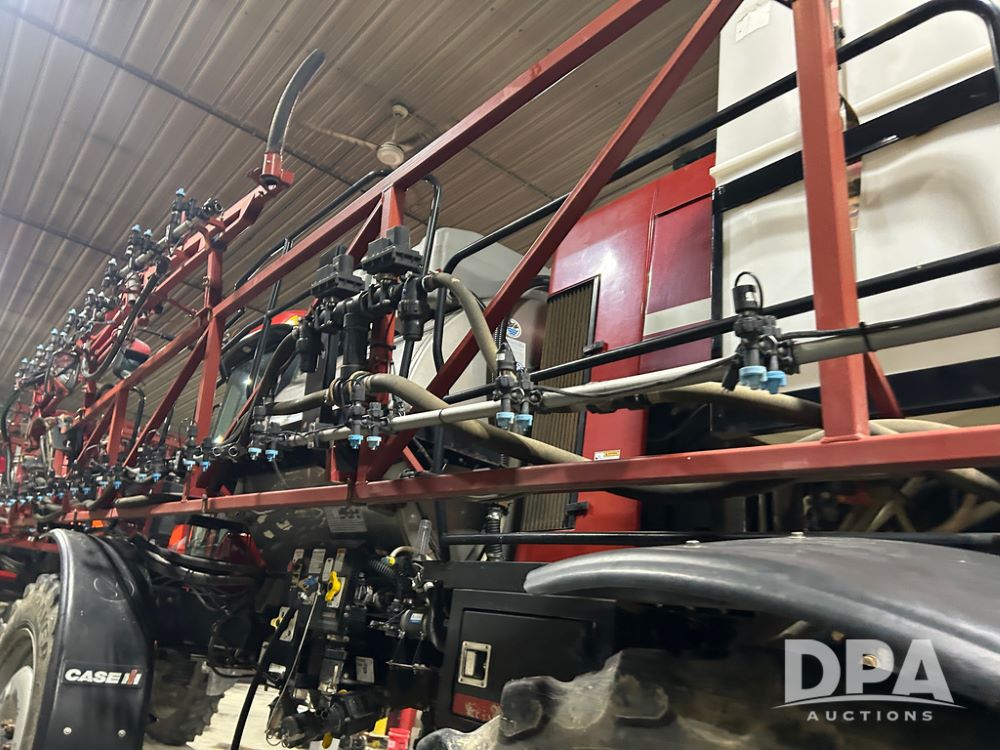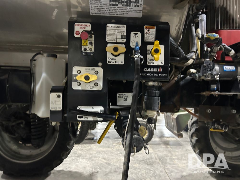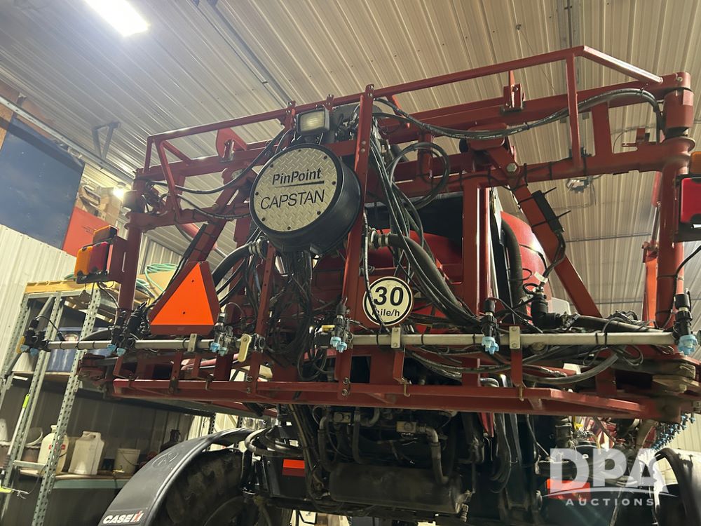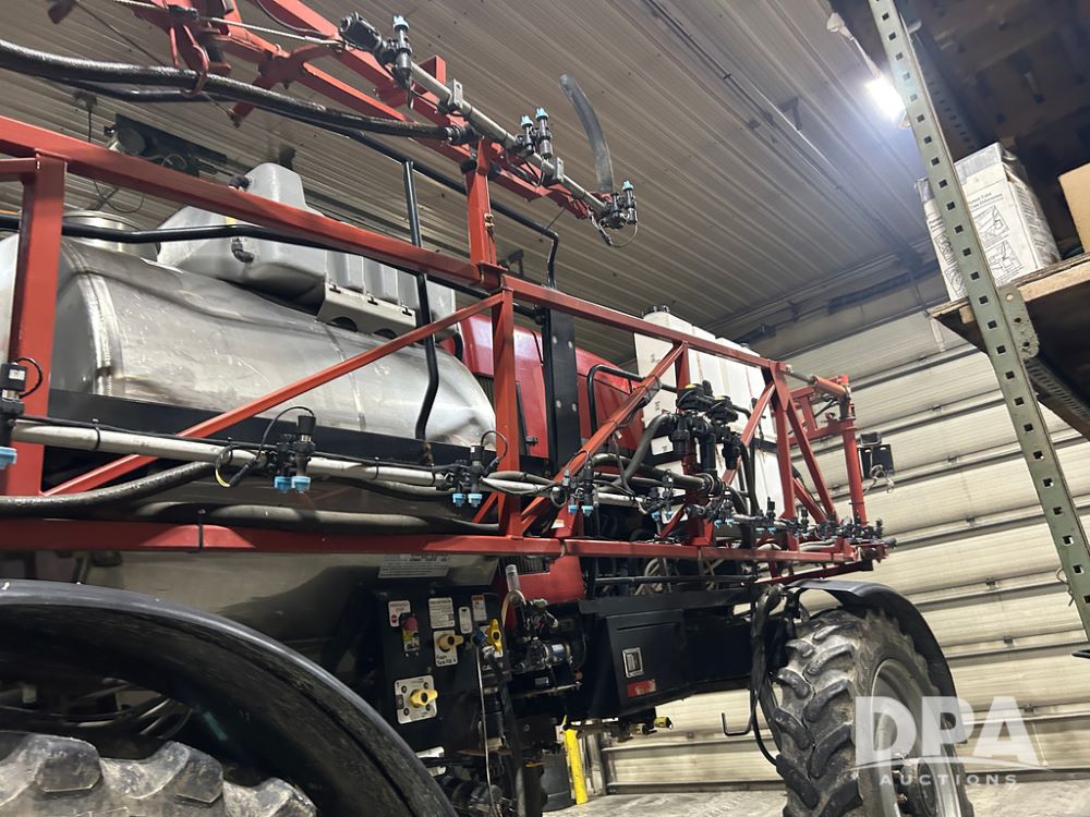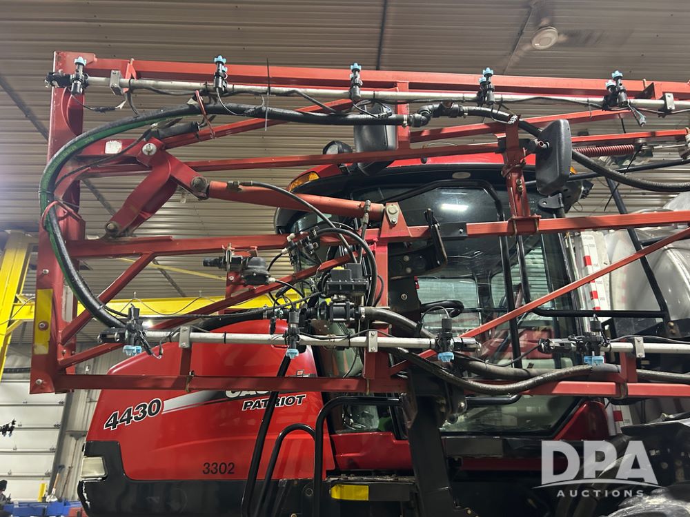 2014 Case IH 4430 Sprayer (CP1413, Unit 3302), diesel engine, hydrostatic drive, 1200 gallon stainless steel liquid system, 90' boom, saddle mounted poly rinse tank, pulse nozzles, Carstan System, Raven Viper IV controller, Raven Side Kick direct injection w/poly liquid tanks, cab heat/air conditioning, 380/90R46 row crop tires,