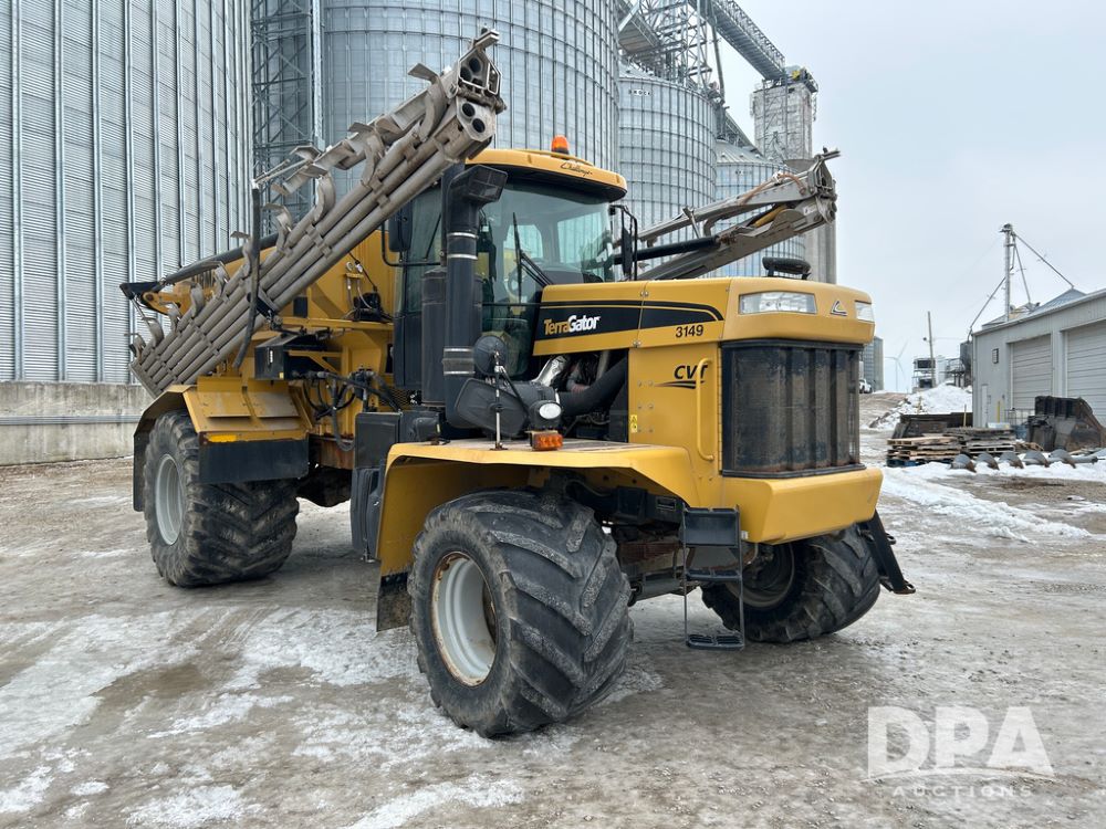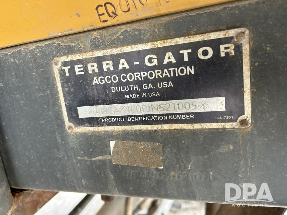 2018 Terra Gator 8400 Floater (CP1411, Unit 3149), diesel engine, CVT transmission, Air Max Precision 2 dry air flow box, 70' stainless steel boom, Raven Viper IV controller, light bar, stainless steel foam tank, electric roll over tarp, heat/air conditioning, cab cam, 750/50R26 front tires, 1050/50R32 rear tires.