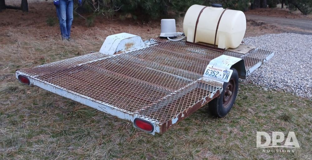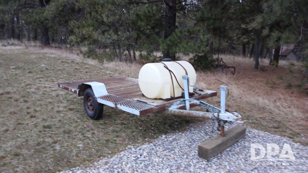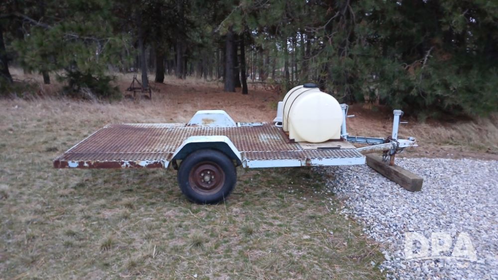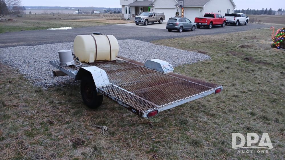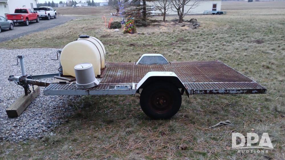 Bull Equipment Trailer (NP6425), Bull approx. 10' trailer, single axle, bumper hitch, poly flat bottom liquid tank.
