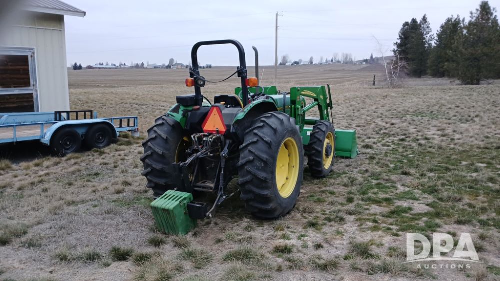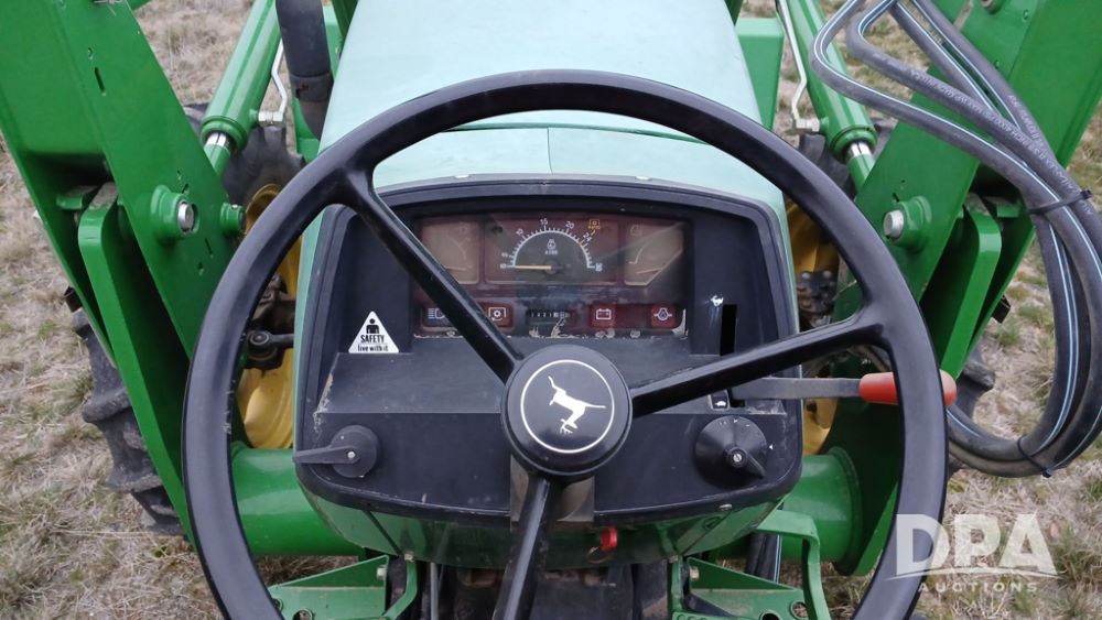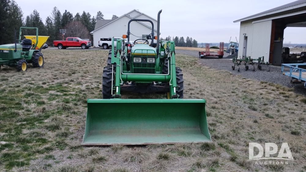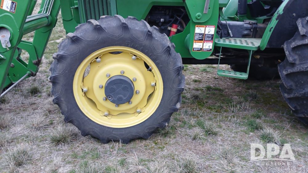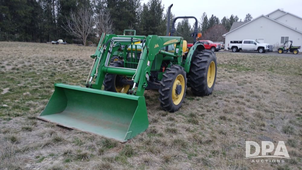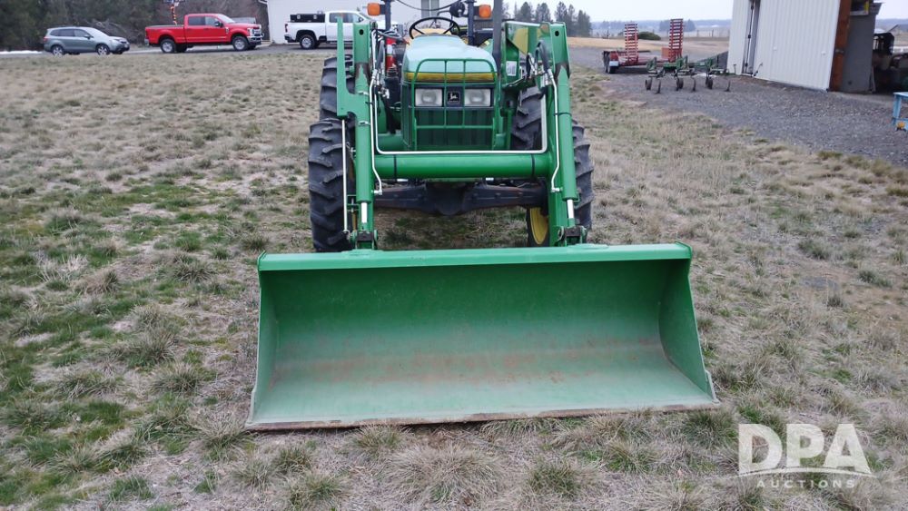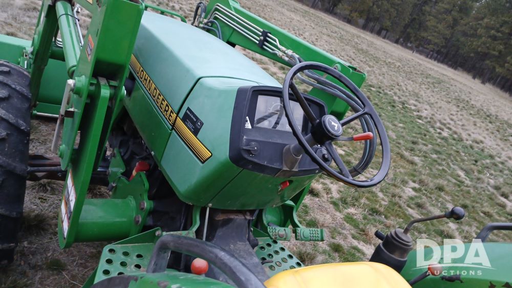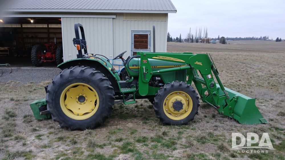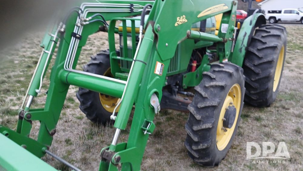 John Deere 5200 Tractor (NP6422), diesel engine, roll bar, John Deere 542 hydraulic front end loader, bucket, 16.9-28 rear tires, (6) rear suitcase weights, PTO, shows 1,421 hours.