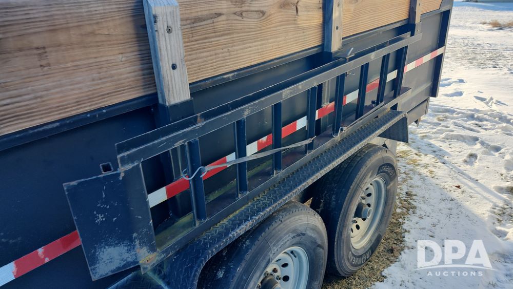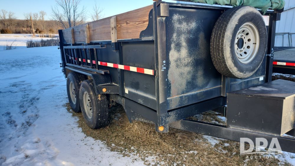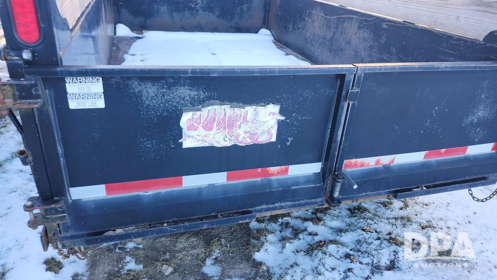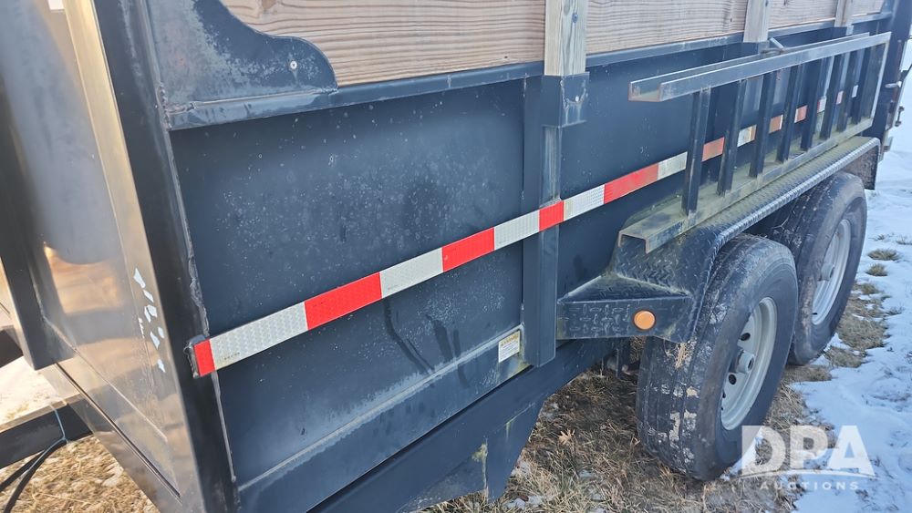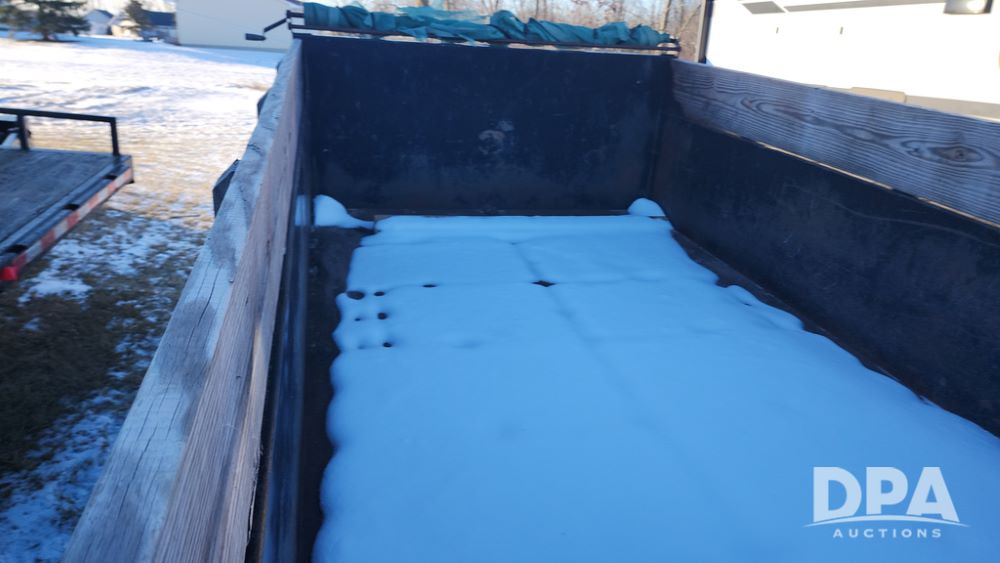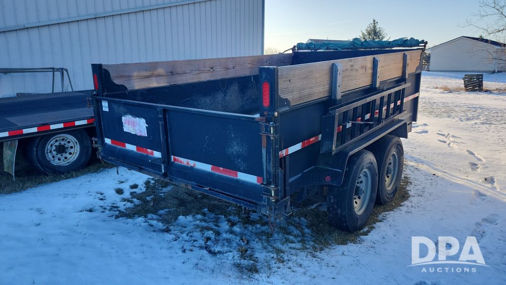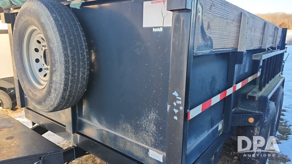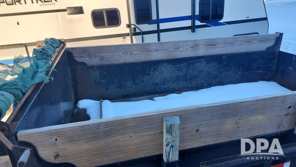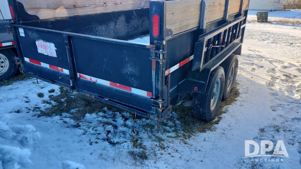 2008 Dump Trailer (NP6433), Approx. 80" x 12' bumper hitch dump trailer, tandem axle, spring suspension, swing rear doors, ramps, extended wood sides, ST235/85R16 tires (spare tire).