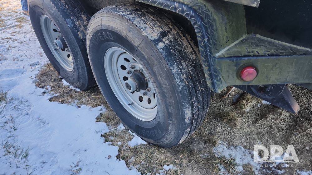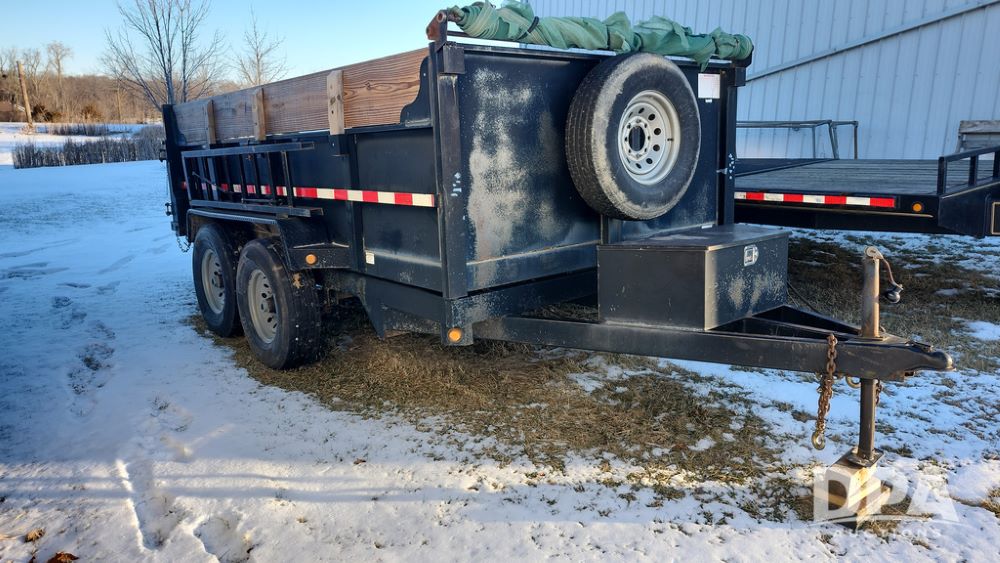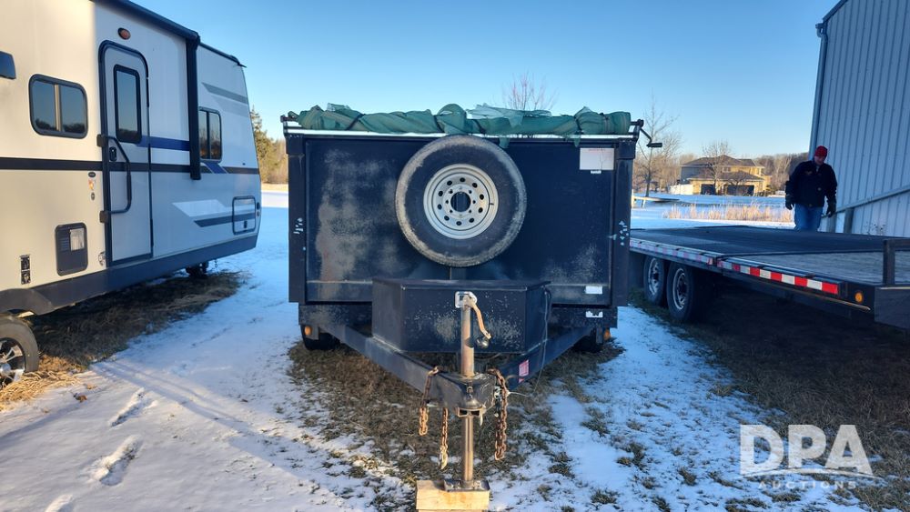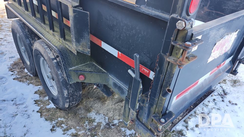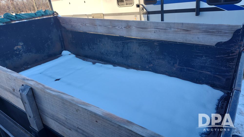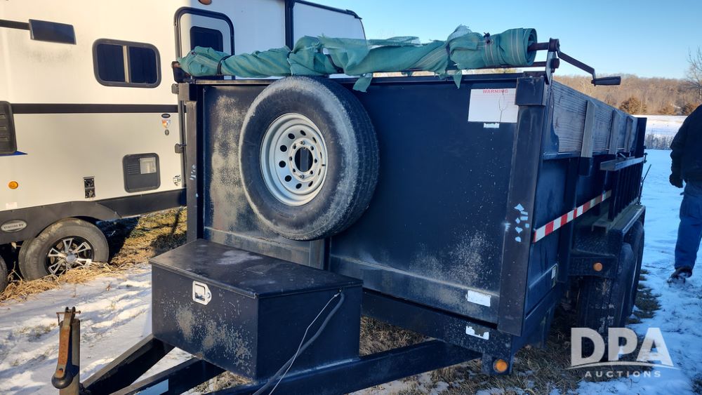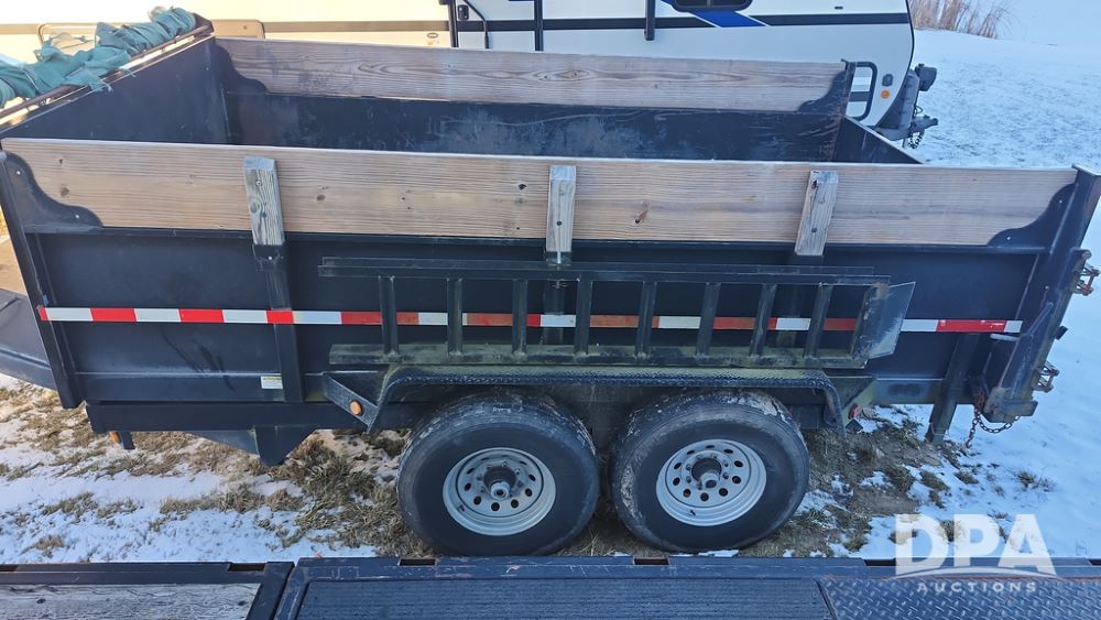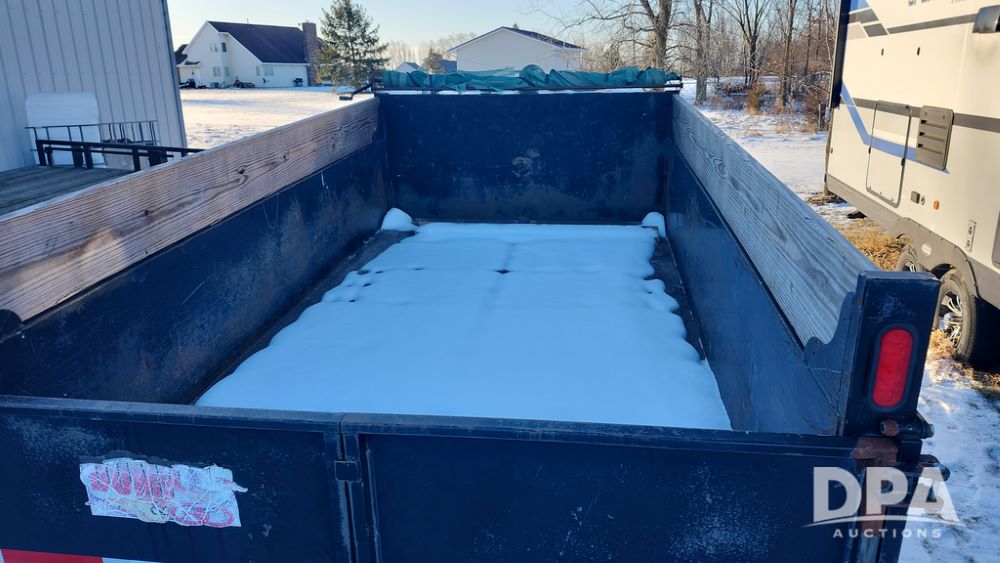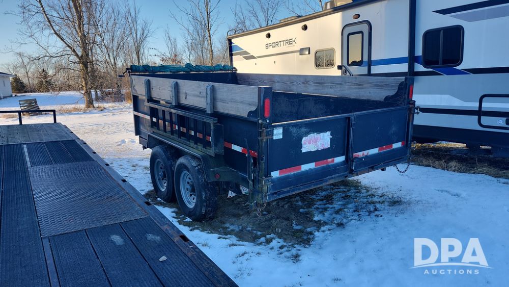 2008 Dump Trailer (NP6433), Approx. 80" x 12' bumper hitch dump trailer, tandem axle, spring suspension, swing rear doors, ramps, extended wood sides, ST235/85R16 tires (spare tire).