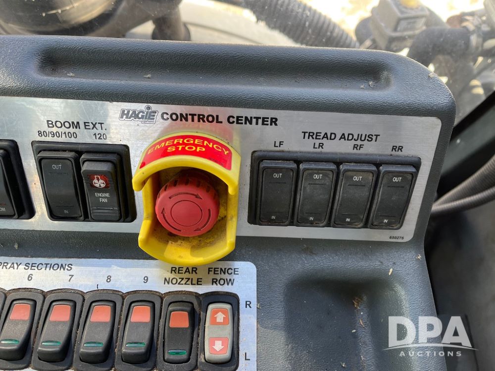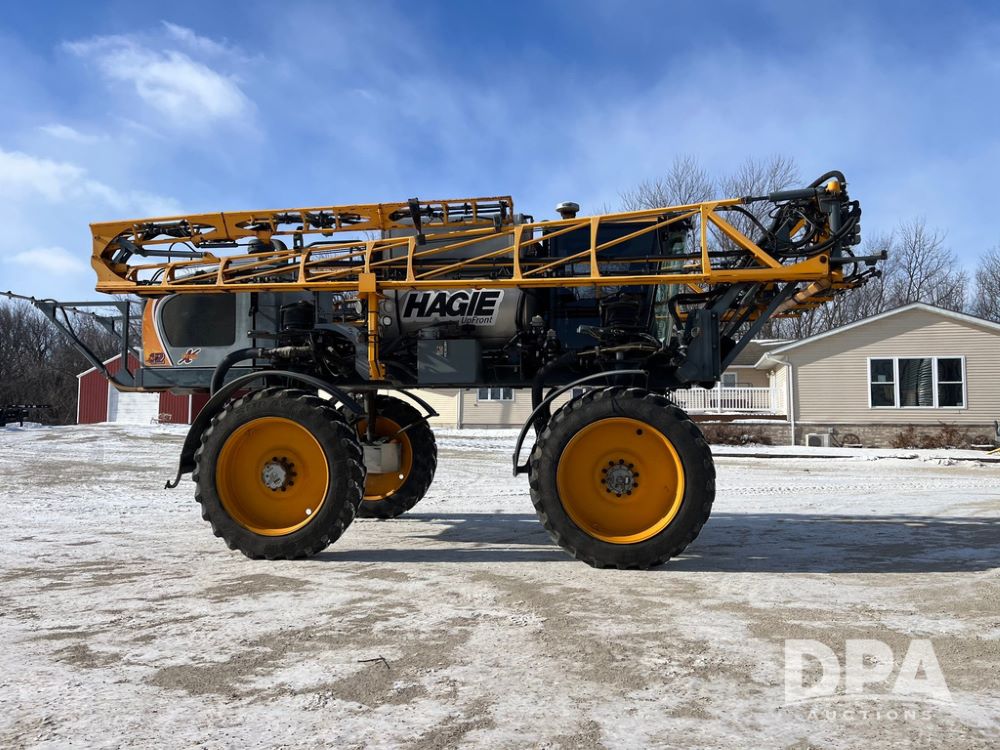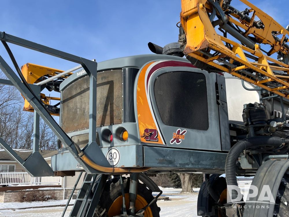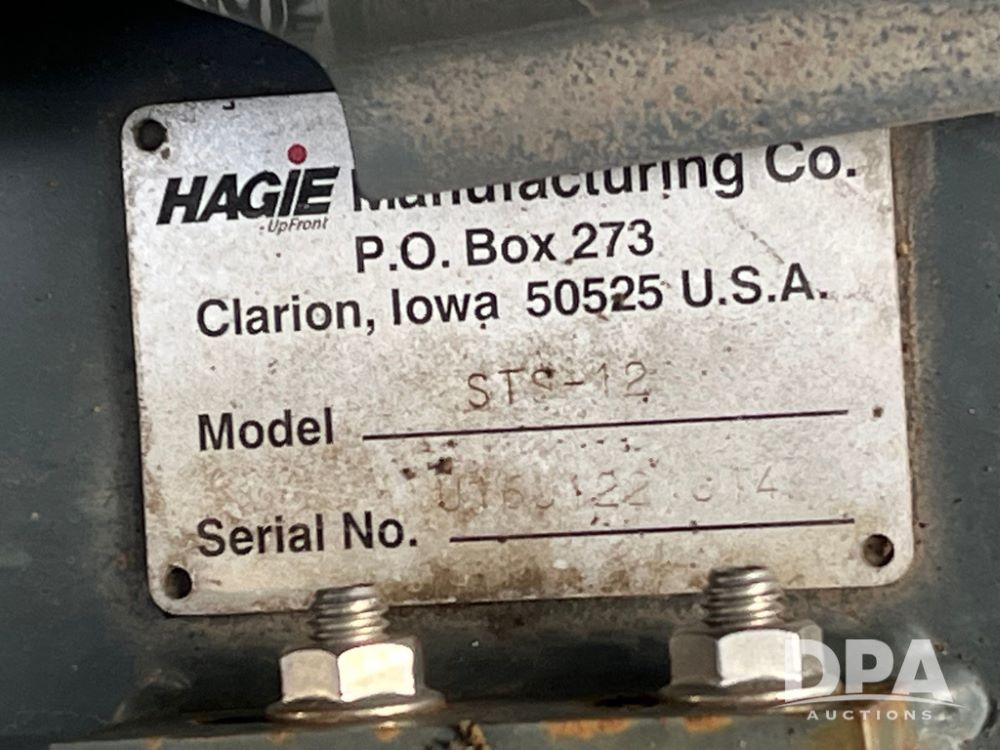 2012 Hagie STS12 X Drive Sprayer (JN3790), Cummins 6.7L diesel engine, reversing fan, hydrostatic transmission, air conditioning, heat, Am/Fm CD radio, beacon light, rear steer, 1200 gallon stainless steel liquid system, 90' boom, 15" spacing, rear boom, tips behind rear wheels, Norac height control, side poly rinse tank, Good Year Ultra Sprayer 380/90R46 tires @ 75%, fenders, Ag Leader Integra monitor, shows 3,609 hours.