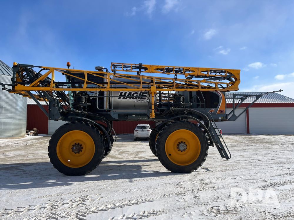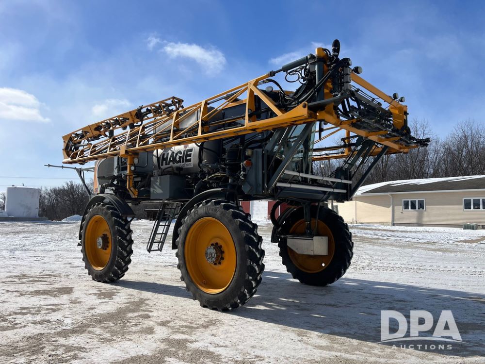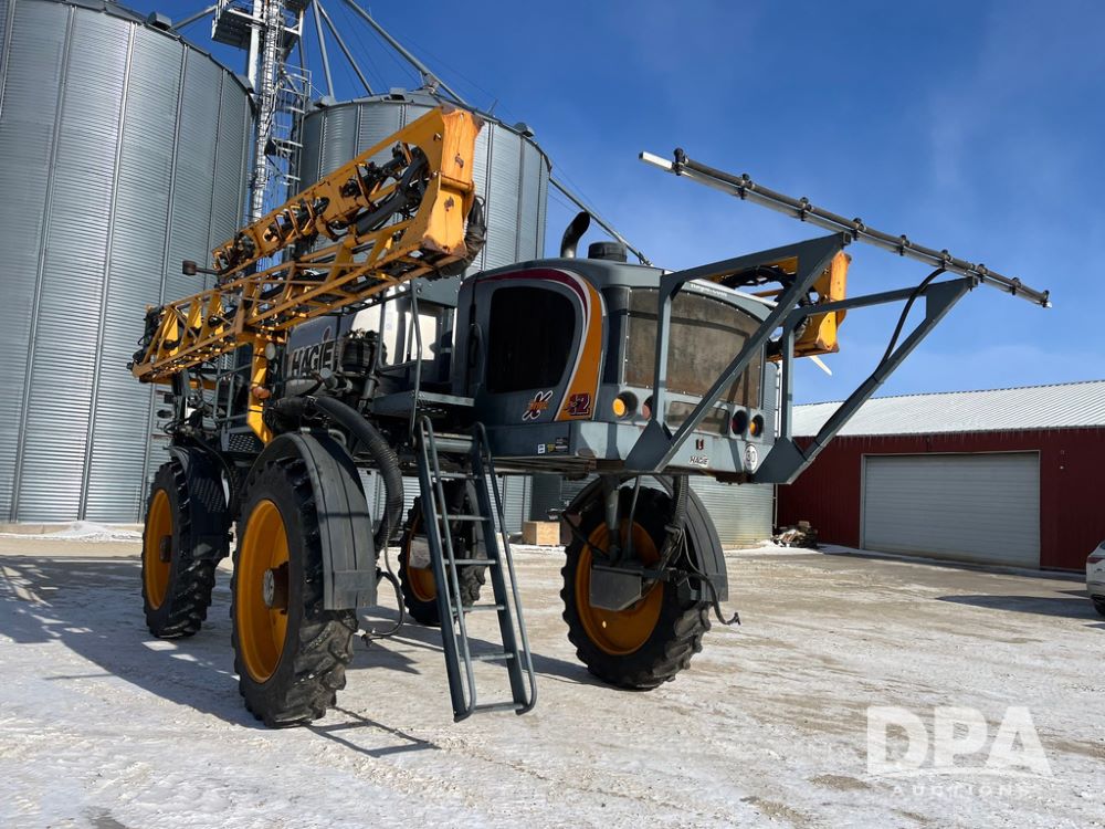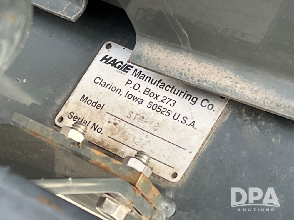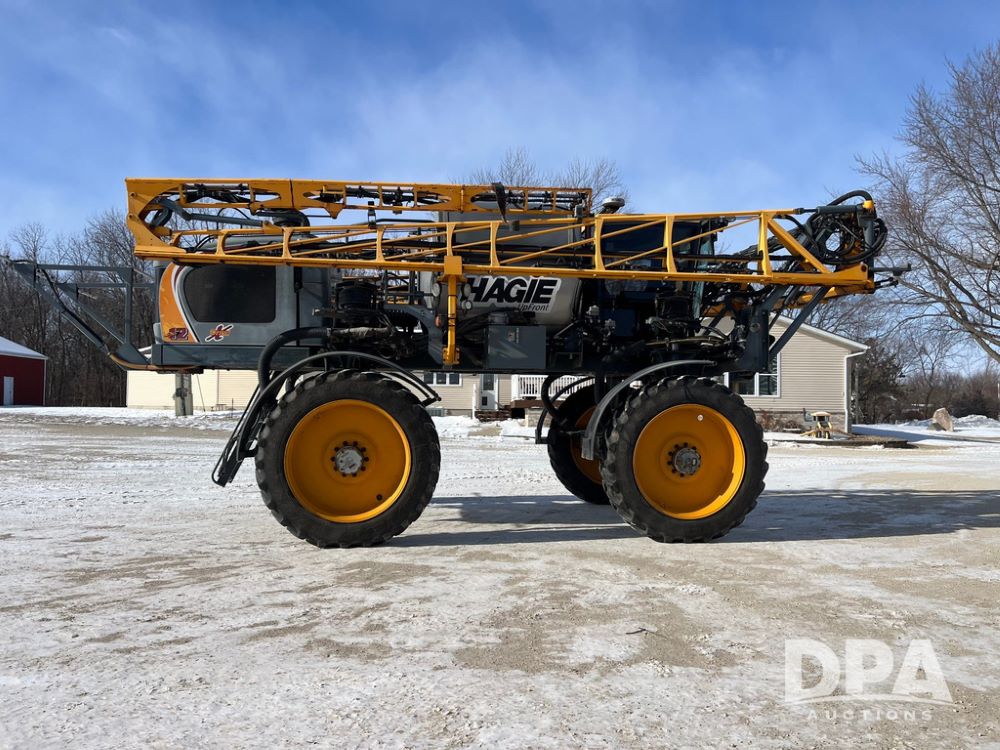 2012 Hagie STS12 X Drive Sprayer (JN3790), Cummins 6.7L diesel engine, reversing fan, hydrostatic transmission, air conditioning, heat, Am/Fm CD radio, beacon light, rear steer, 1200 gallon stainless steel liquid system, 90' boom, 15" spacing, rear boom, tips behind rear wheels, Norac height control, side poly rinse tank, Good Year Ultra Sprayer 380/90R46 tires @ 75%, fenders, Ag Leader Integra monitor, shows 3,609 hours.