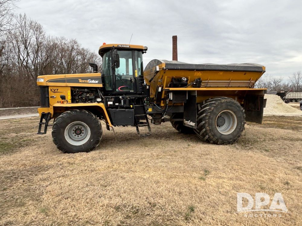 2018 Terra-Gator 8400B Fertilizer Spreader (PD5468), AGCO diesel engine, CVT transmission, air/heat, AM/FM radio, New Leader 4500 dry spreader box, Edge 4 dual spinner, roll over tarp, all hydraulic, Michelin 1050/50R32 floater tires, Raven monitor, Raven globe, 2,464 hours.