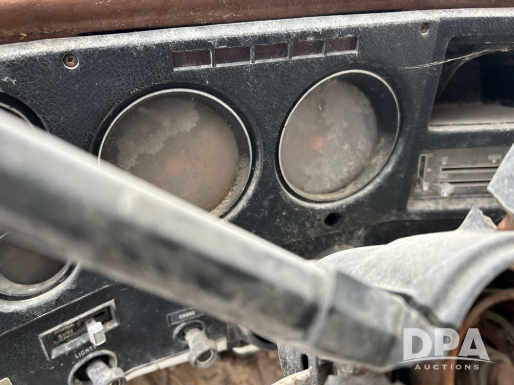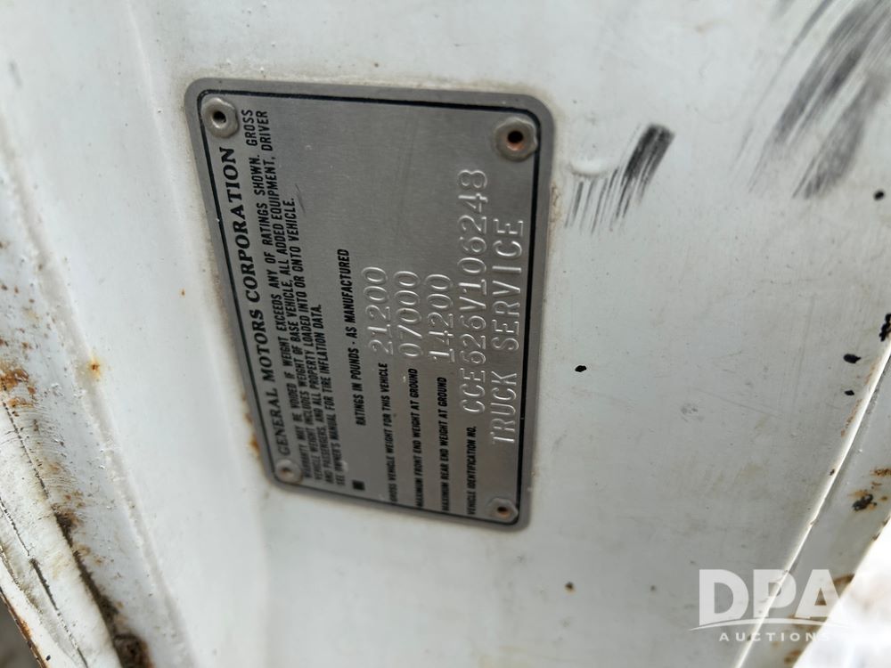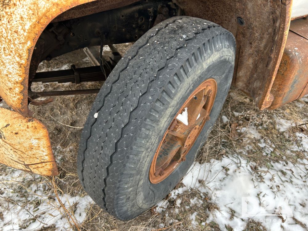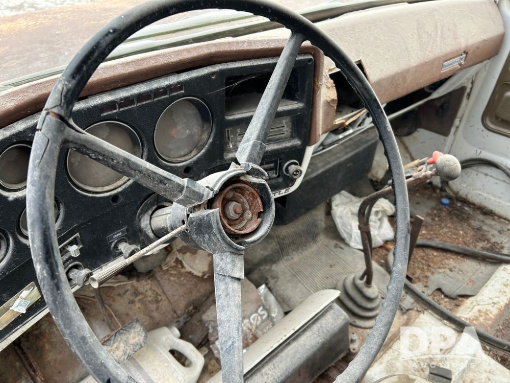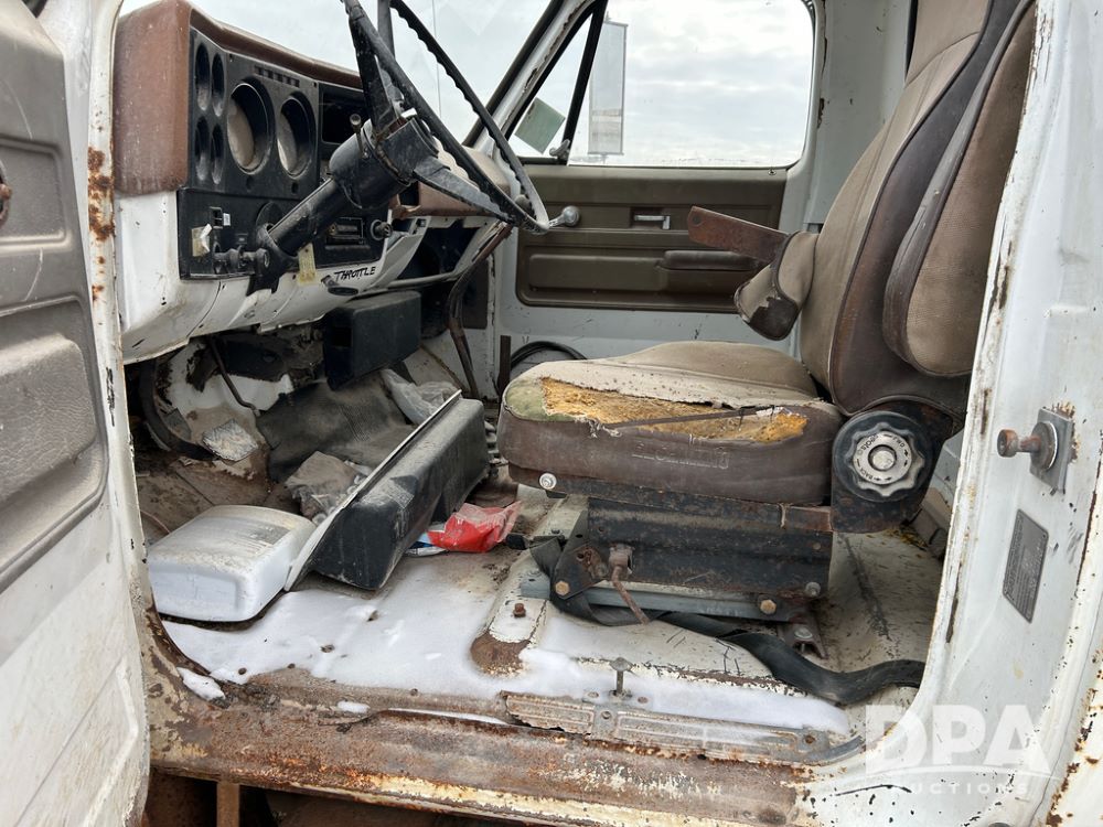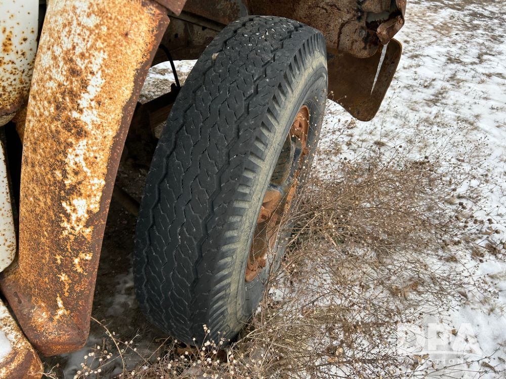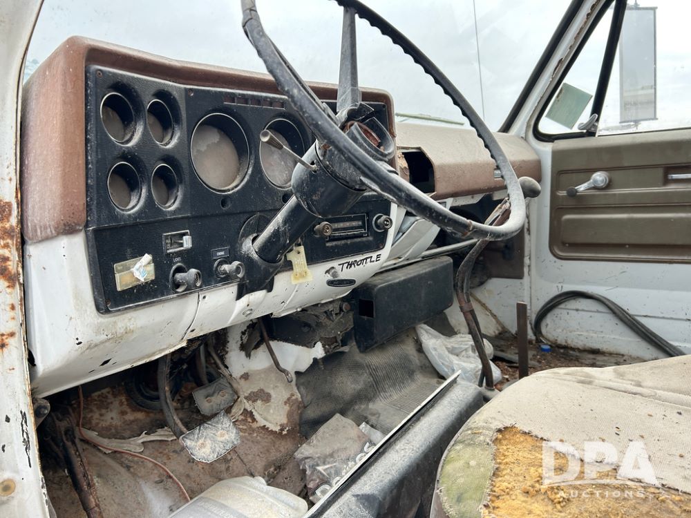 Chevy Grain Truck (CP1505, Unit 4340), NON RUNNER C60 grain truck, gas engine, 5 speed transmission, 2 speed rear end, single axle, 14' steel grain box & hoist, rear barn door tail gate w/grain doors, 9:00-20 tires.
