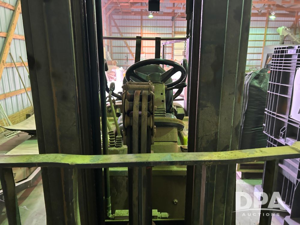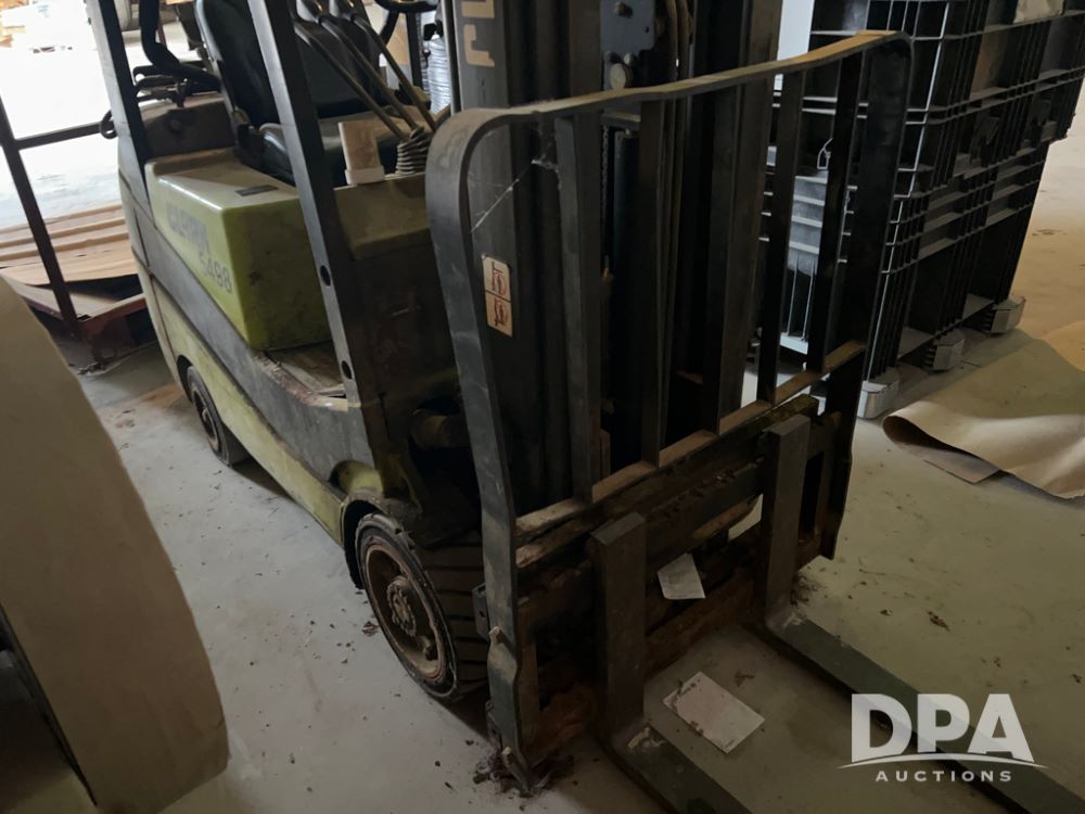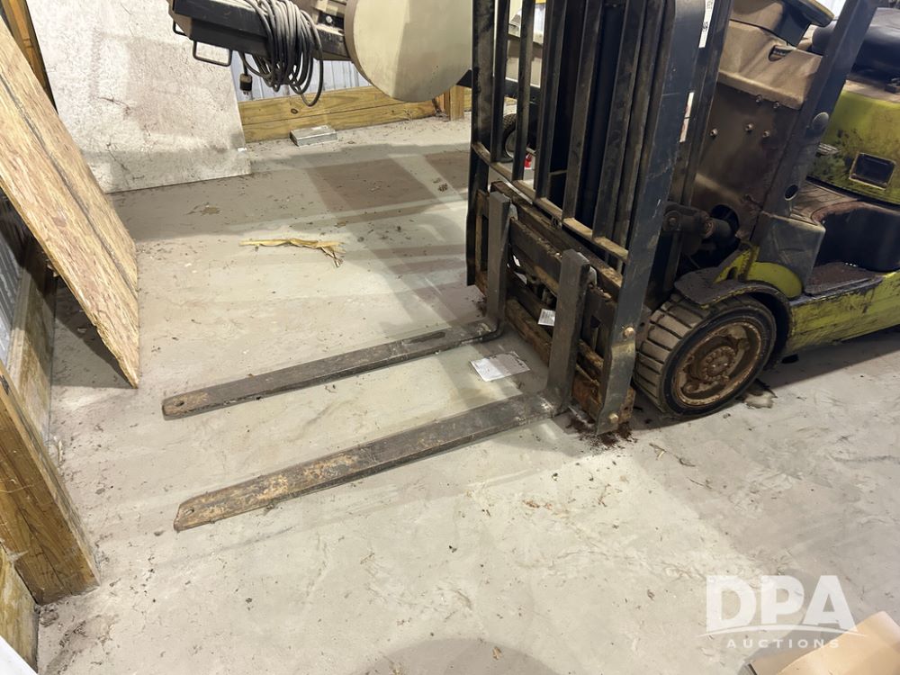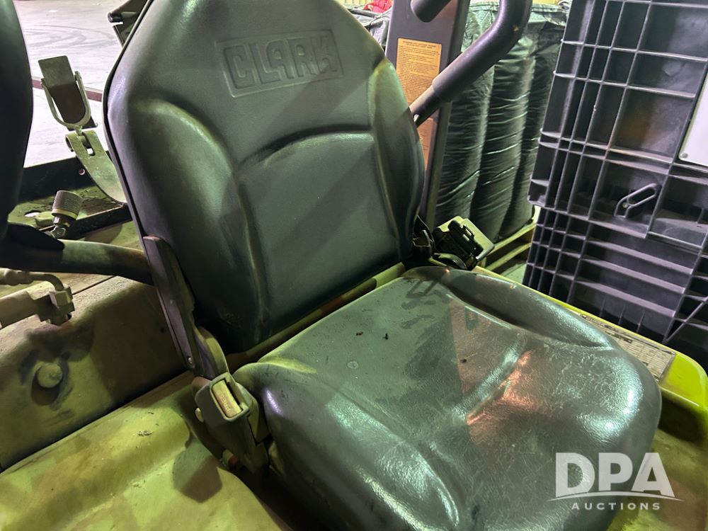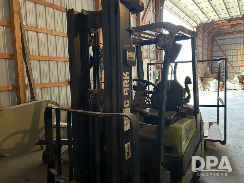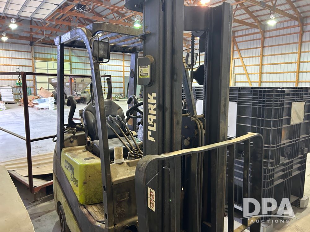Clark Forklift (CP1471, Unit 5498), model C20, LP engine, no tank, shuttle shift drive, 3 stage mast, 3600lb capacity, 48'' forks, hydraulic side shift, solid tires,