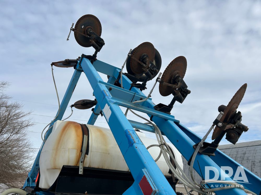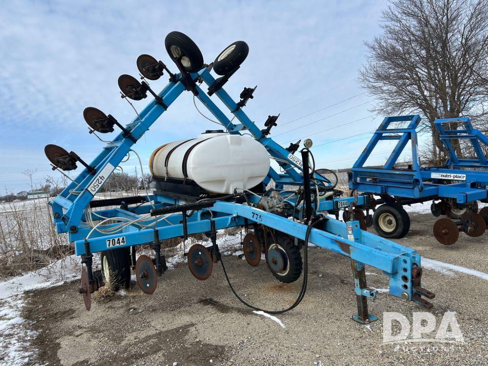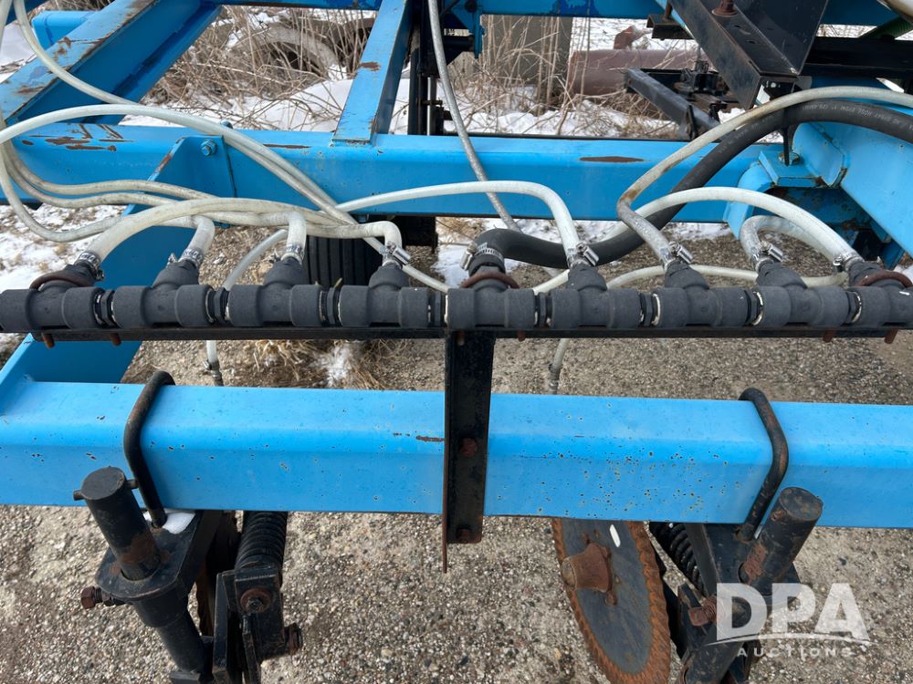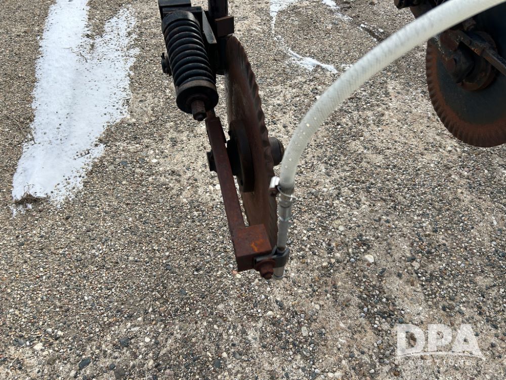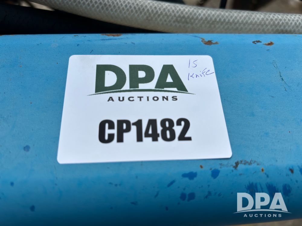 DMI 4250 Tool Bar (CP1482, Unit 7044), 15 knife pull type tool bar, hydraulic wings, manual gauge wheels, ground drive pump, front coulters, 500 gallon poly liquid tank.