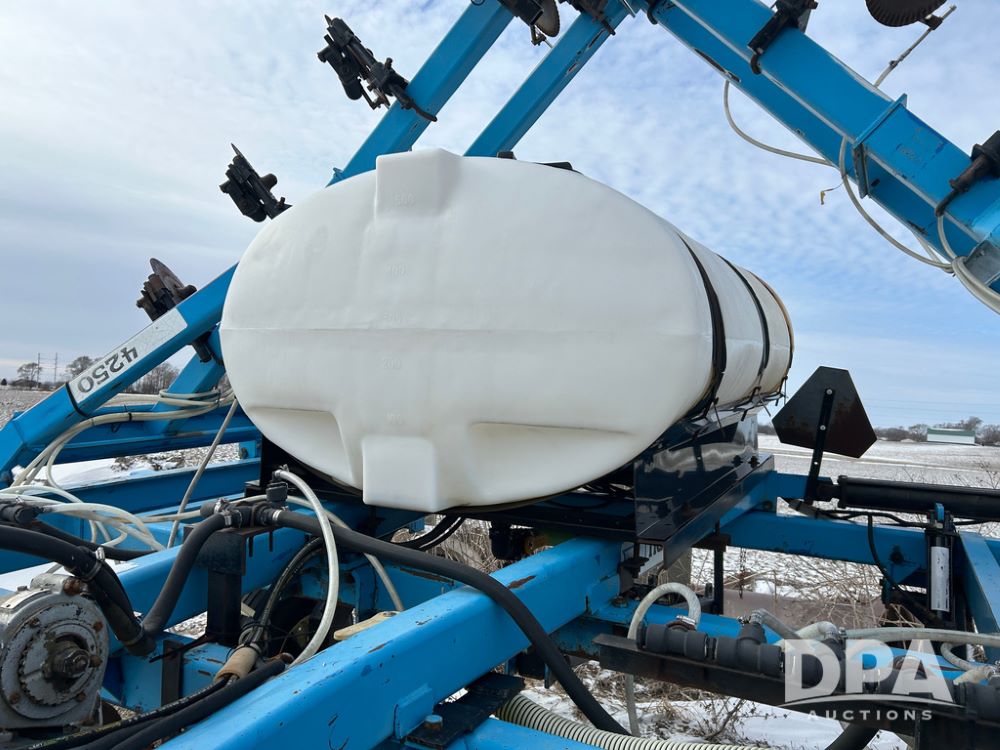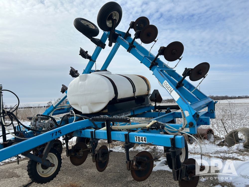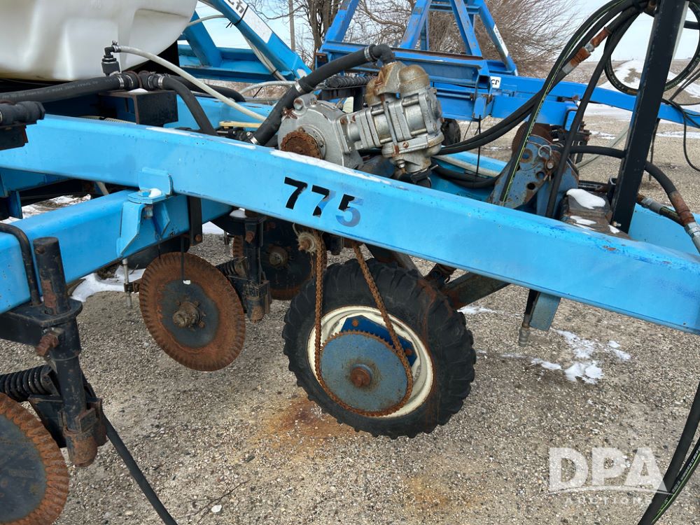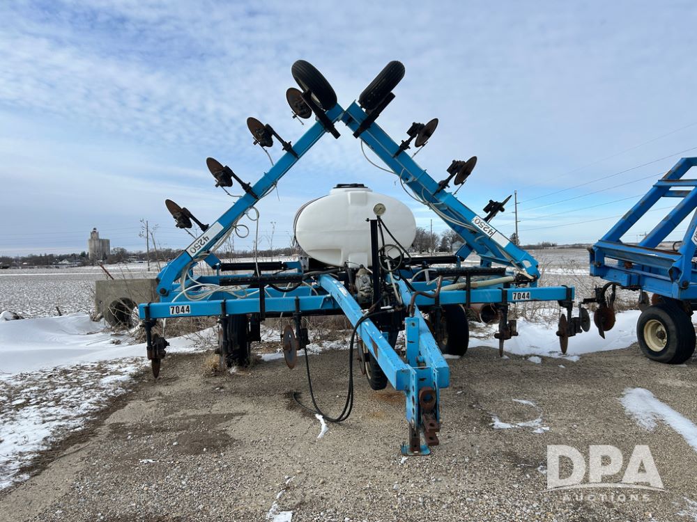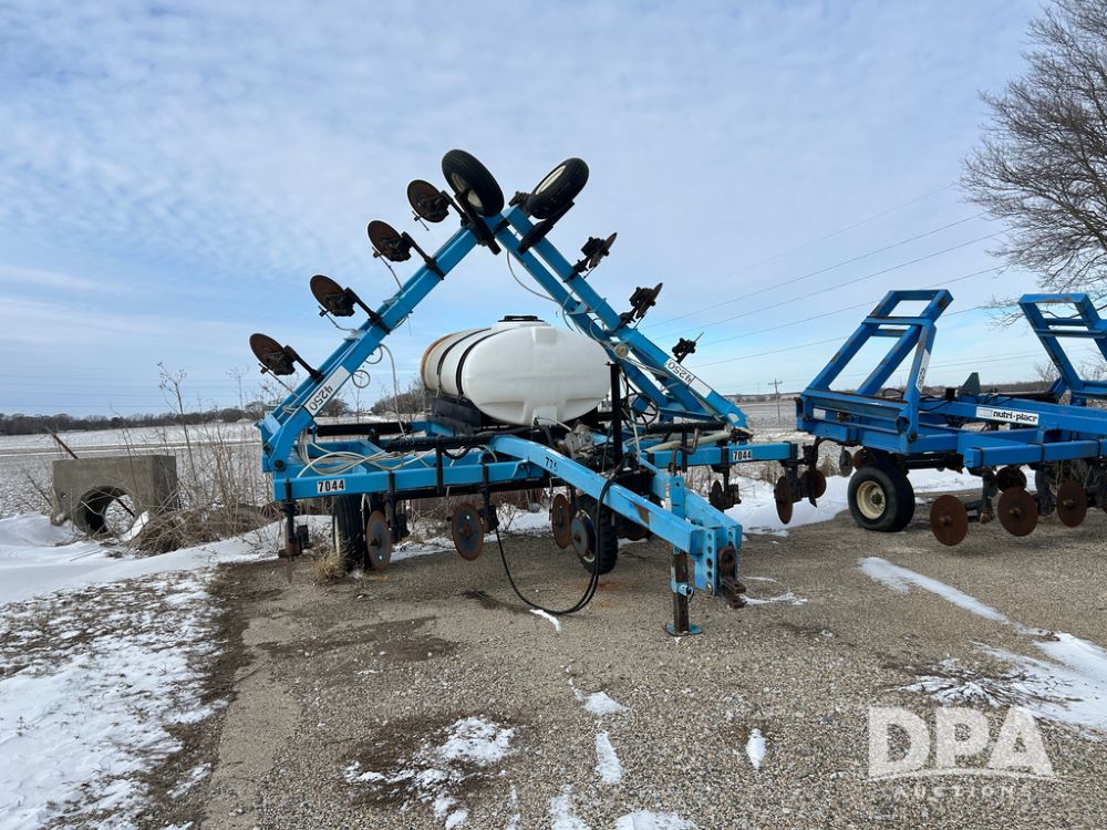 DMI 4250 Tool Bar (CP1482, Unit 7044), 15 knife pull type tool bar, hydraulic wings, manual gauge wheels, ground drive pump, front coulters, 500 gallon poly liquid tank.