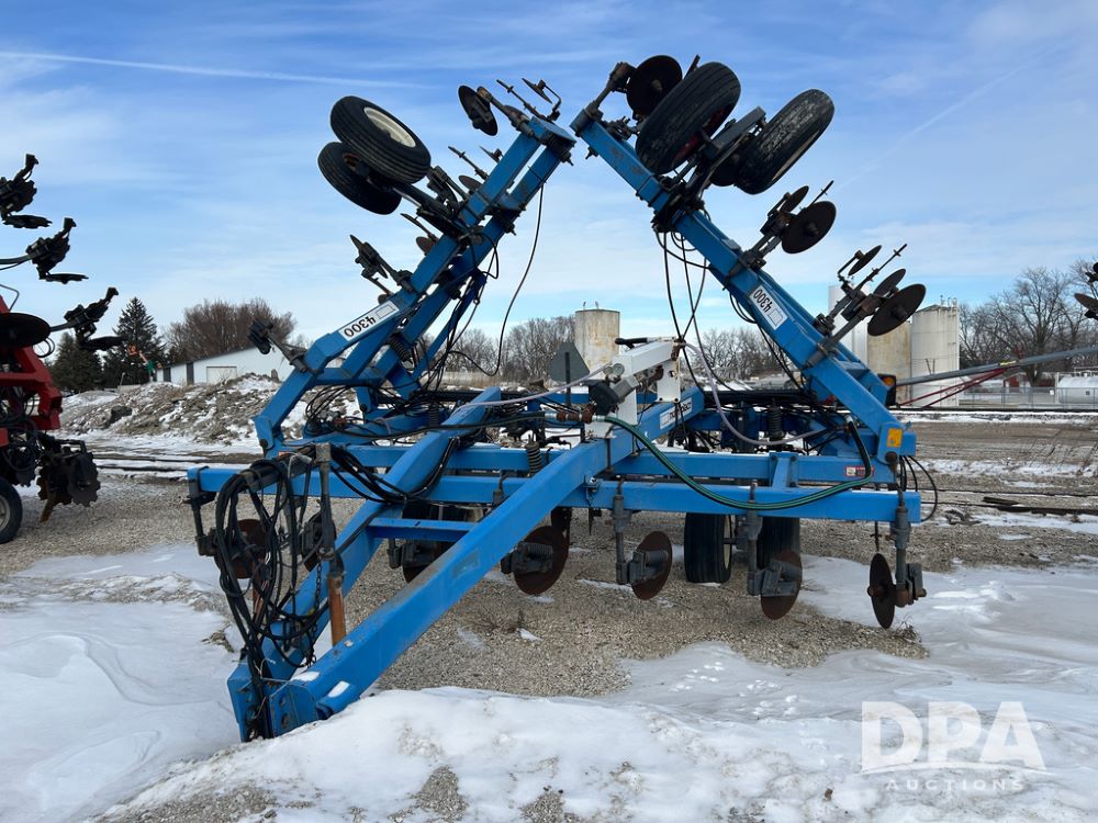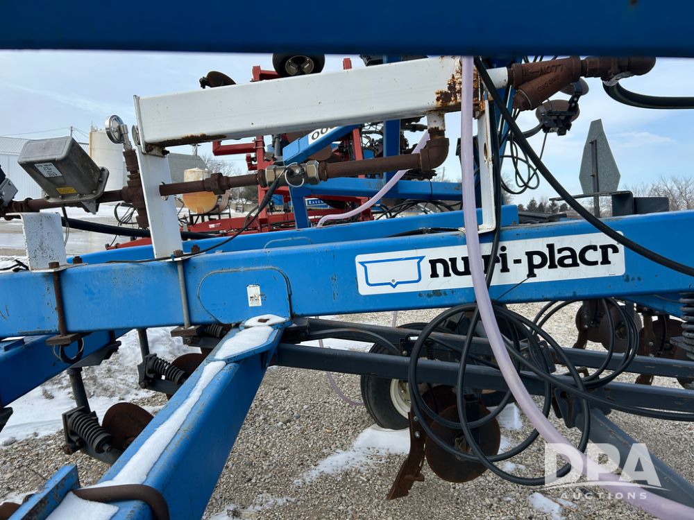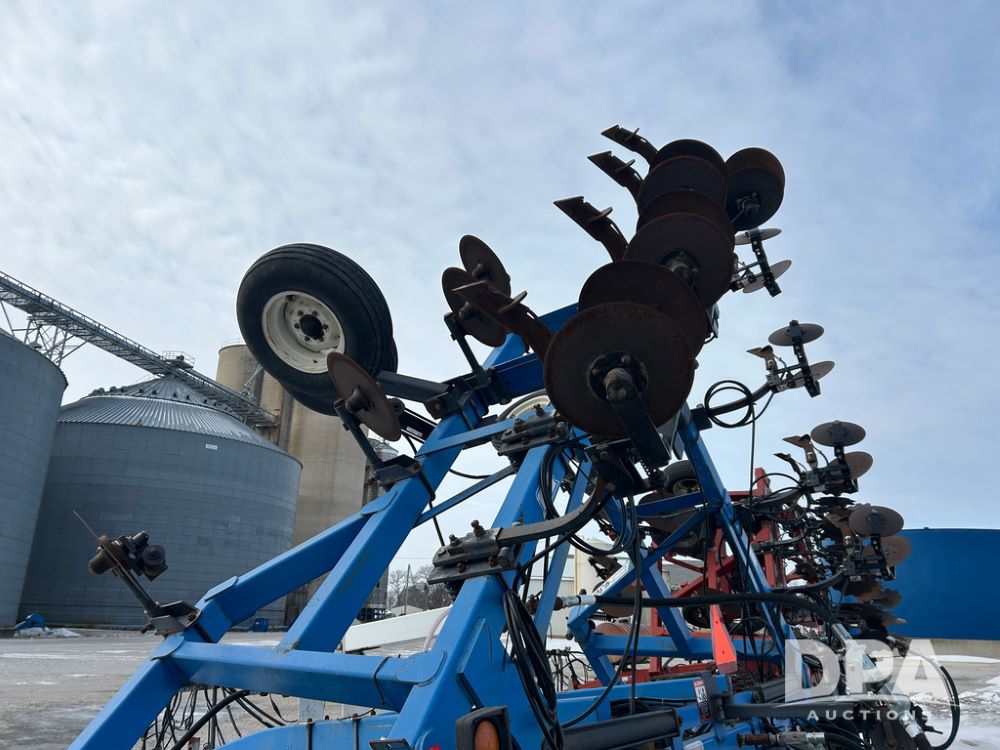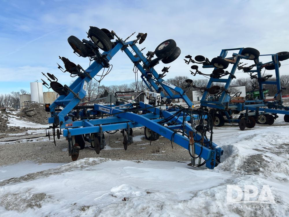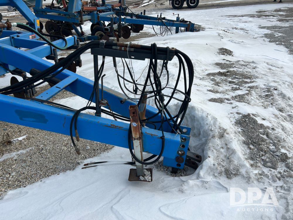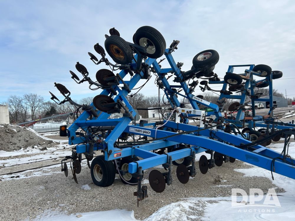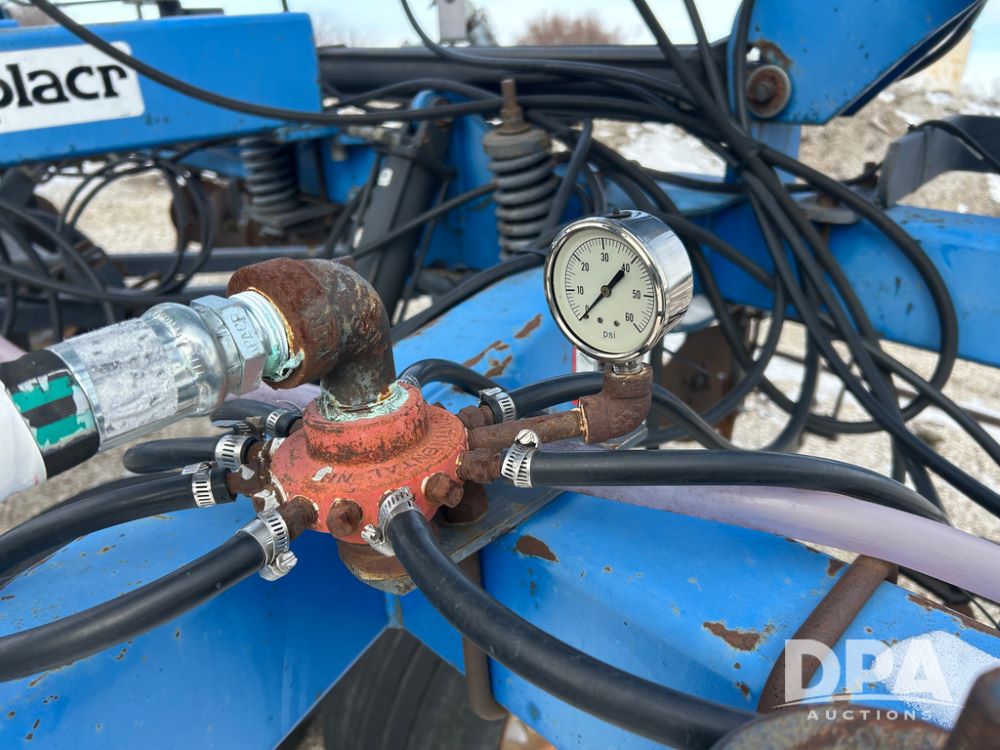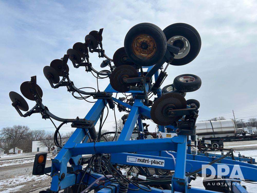 DMI 4300 Tool Bar (CP1487, Unit 784), 15 knife pull type tool bar, hydraulic wings and gauge wheels, walking tandem axles, front coulters, double disc rear sealers, Raven cooler.