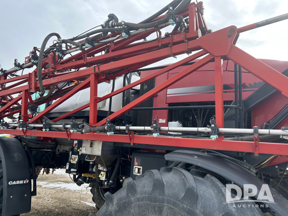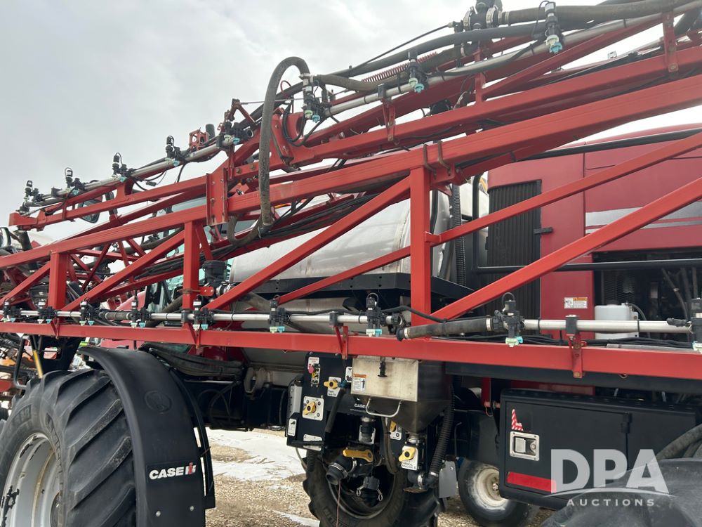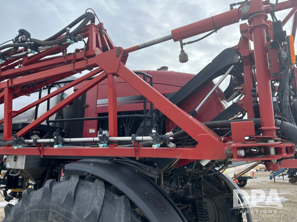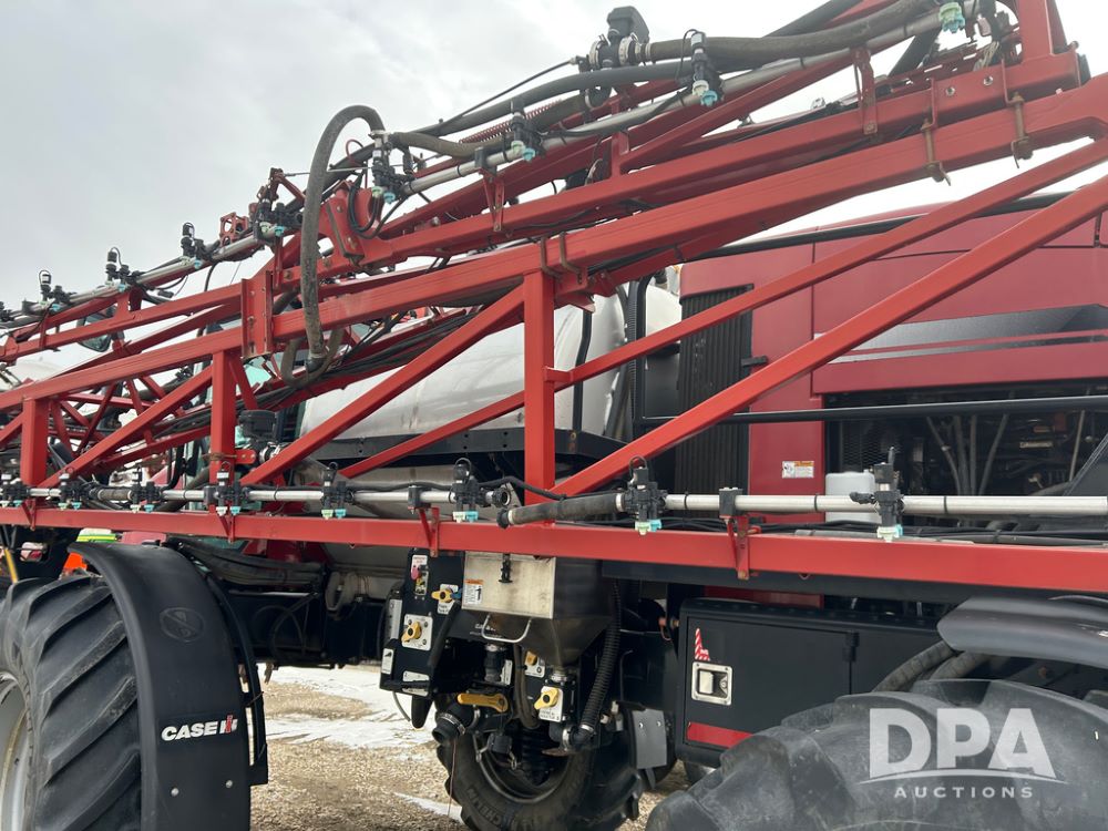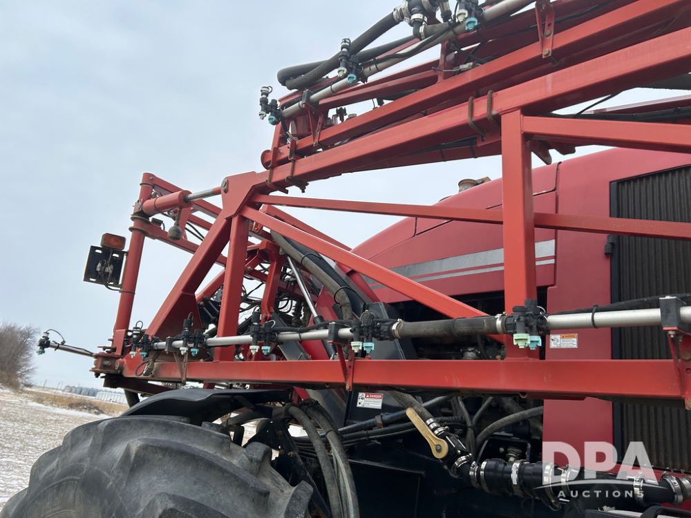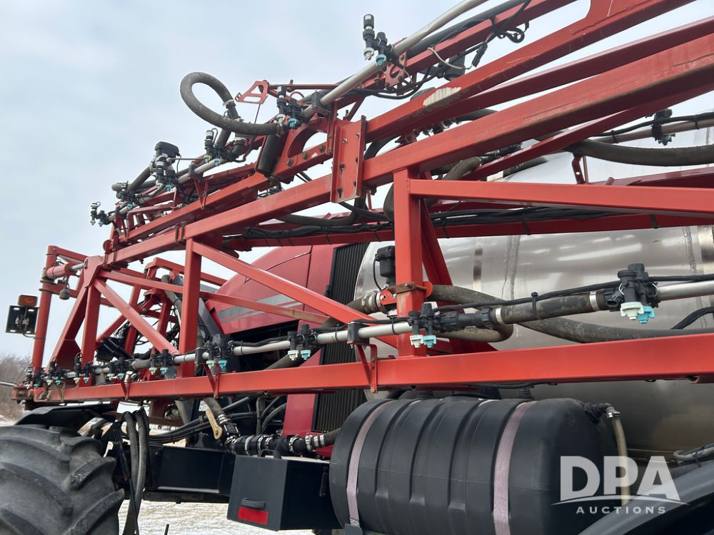 Case IH 4420 Sprayer (CP1488, Unit 3284), diesel engine, hydrostatic drive, 1200 gallon stainless steel liquid system, 120' boom, pulse nozzles, AIM Command, Raven Viper Pro controller, stainless steel chemical inductor, poly rinse tank, cab cam, cab heat/air conditioning, 650/65R38 flotation tires.