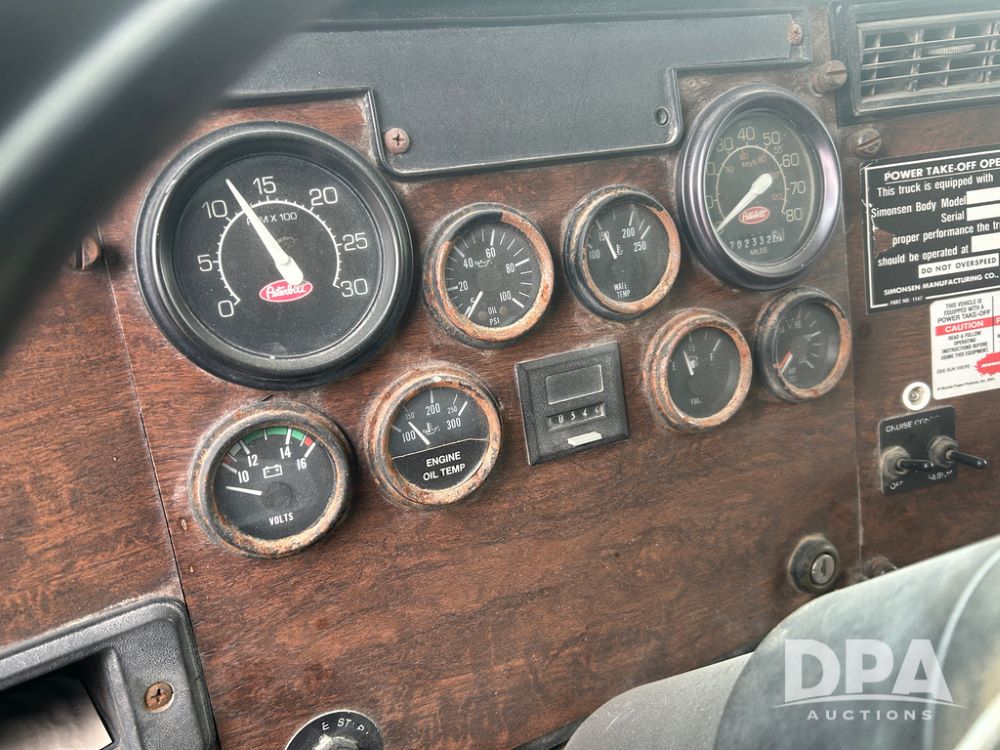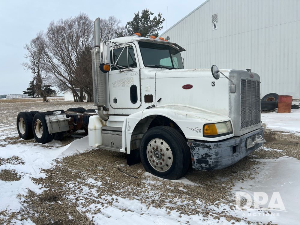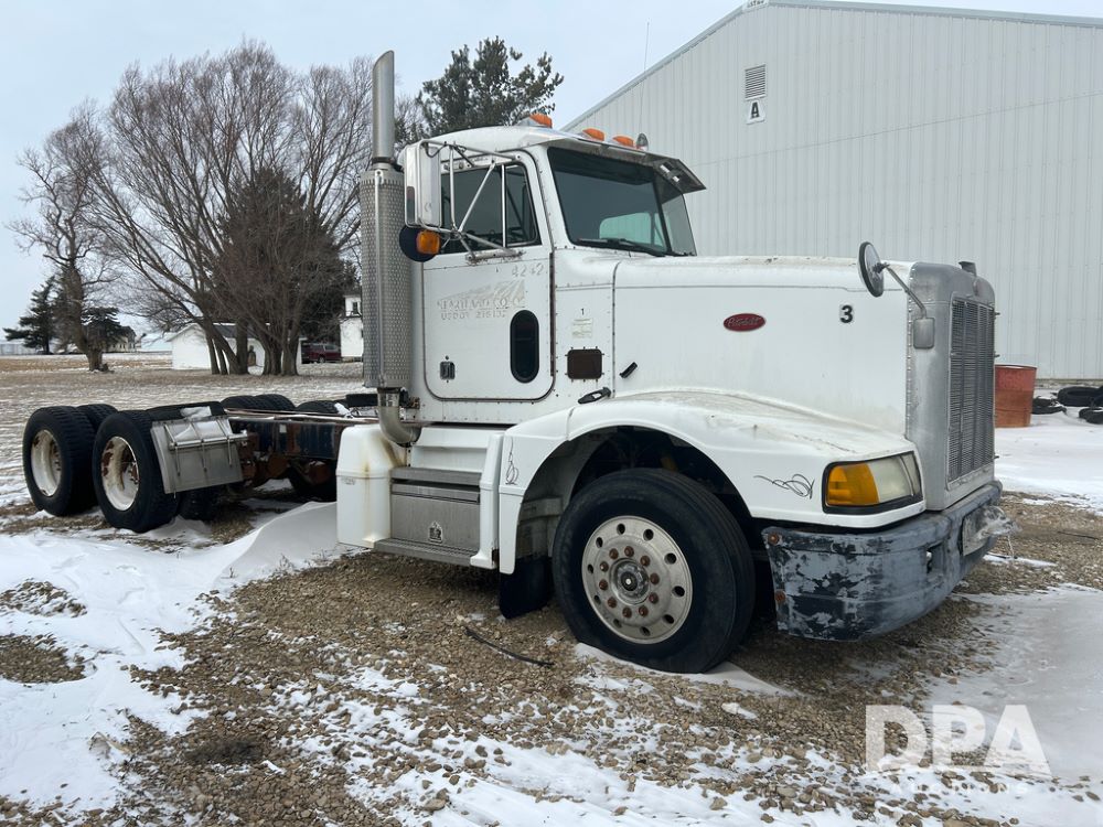 Peterbilt 377 Truck (DR8328, Unit 4242), NON RUNNER, cab/chassis, Cat diesel engine, 10 speed transmission, tandem full screw, air ride suspension, cruise control, odometer reads 702,332 miles.