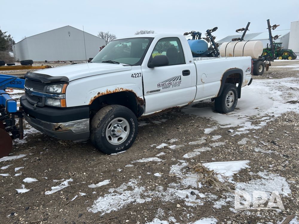2004 Chevy 2500HD Pickup (CP1491, Unit 4227), NON RUNNER, gas engine, automatic transmission, 4X4, regular cab, long box, rear ag bumper, cab heat/air conditioning.