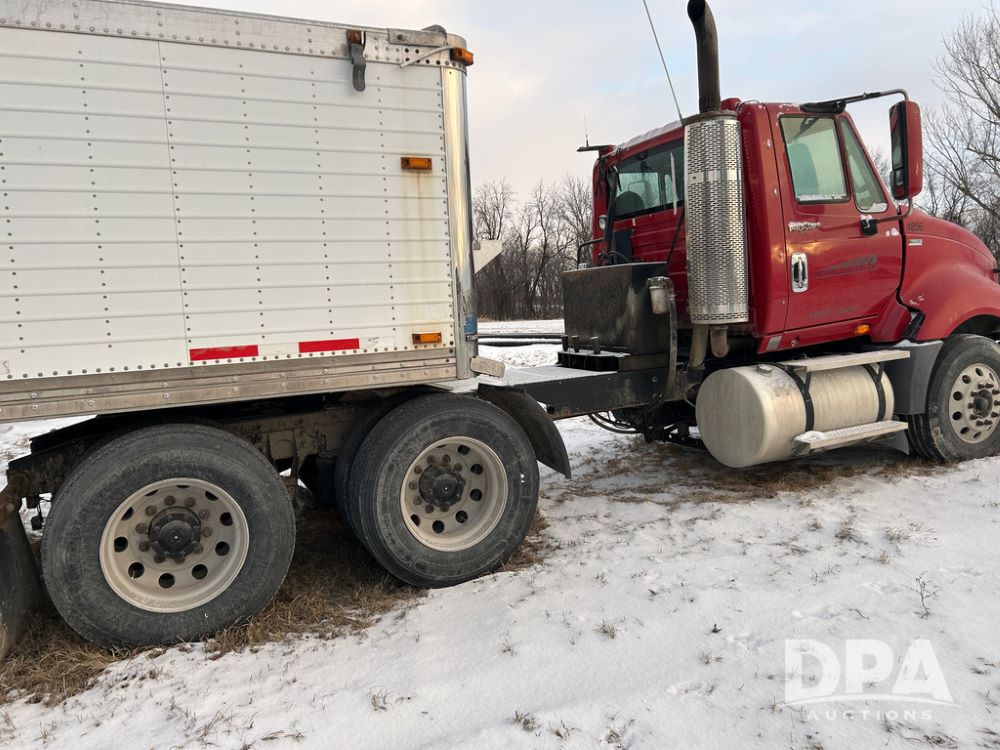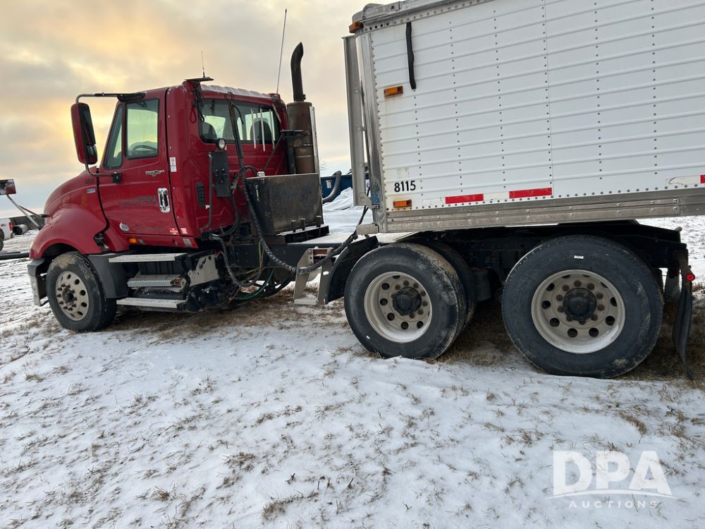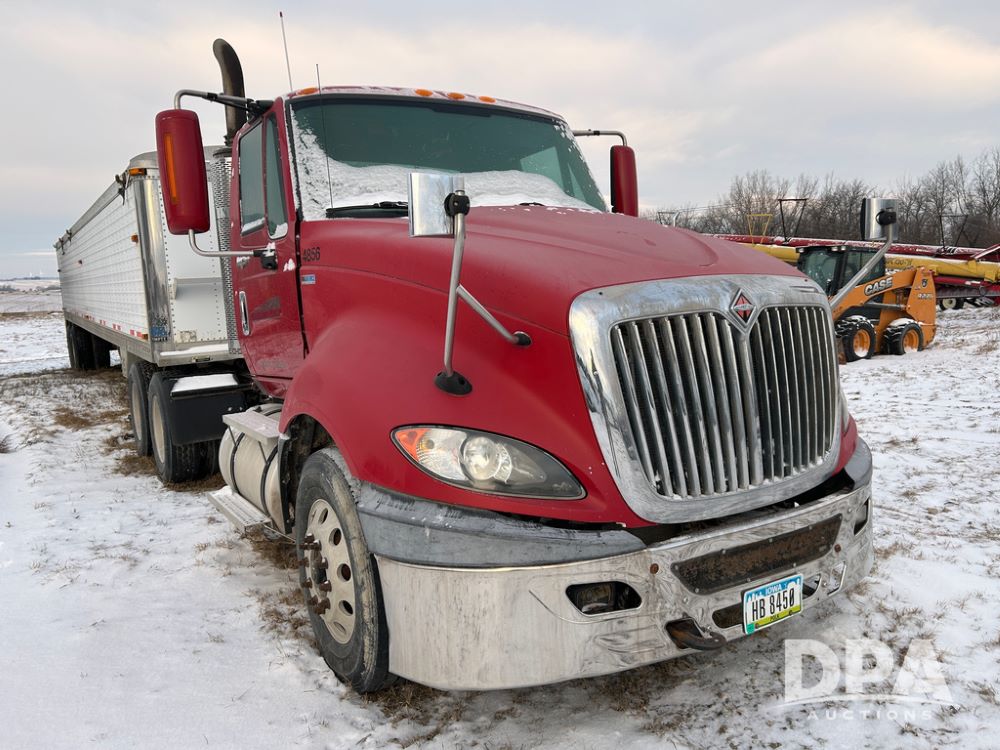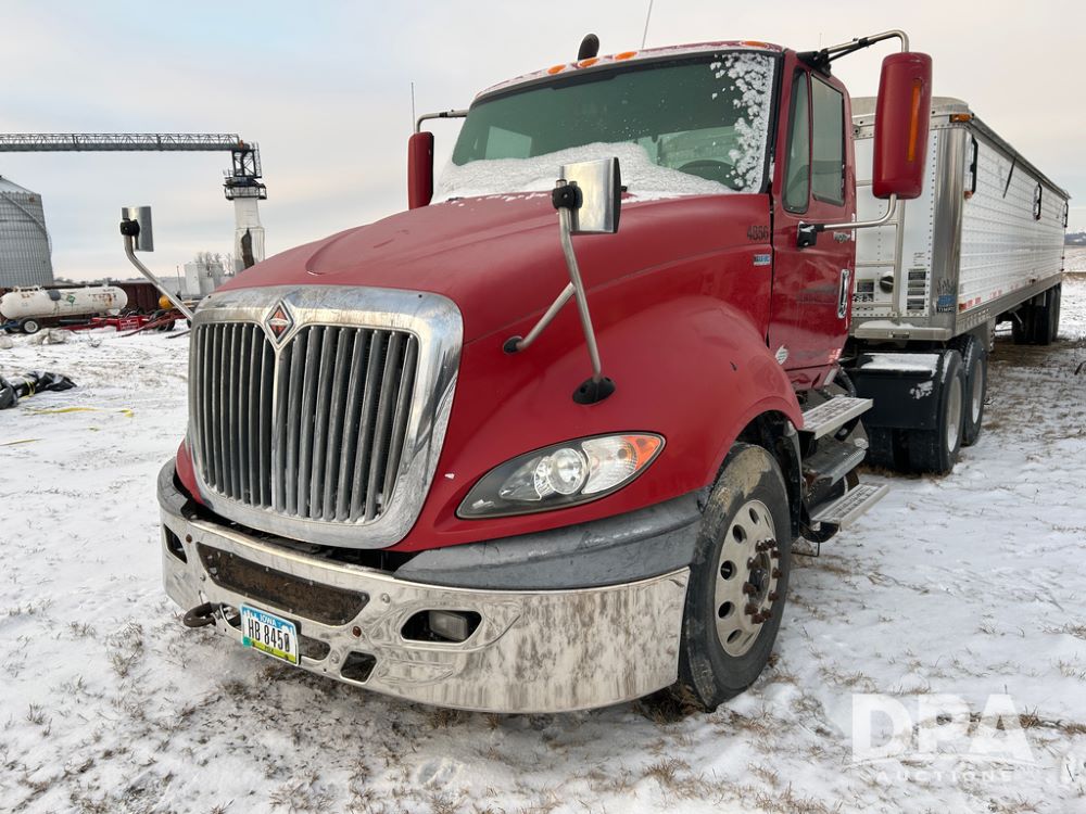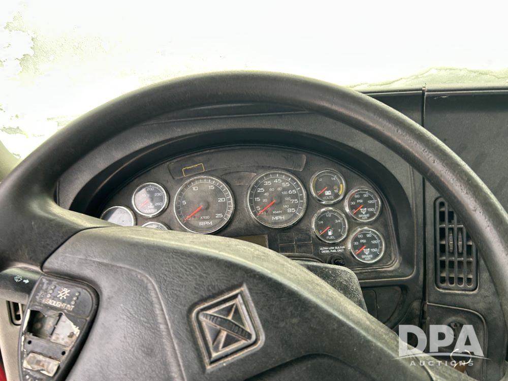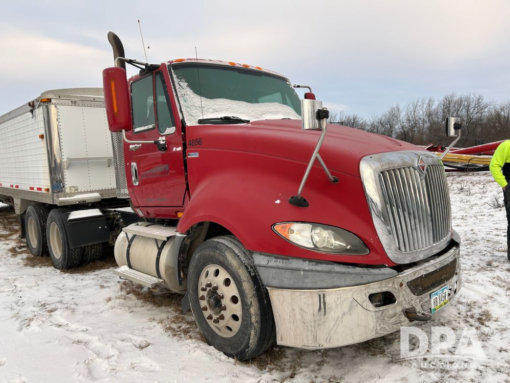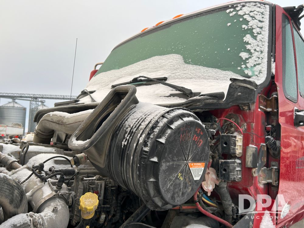2014 International Pro Star Truck (CP1491, Unit 4856), diesel engine,10 speed transmission, tandem axle full screw, air ride suspension, 196'' WB, day cab, hydraulic wet kit, 5th wheel plate, engine brake, cruise control, 22.5 tires, aluminum wheels.
