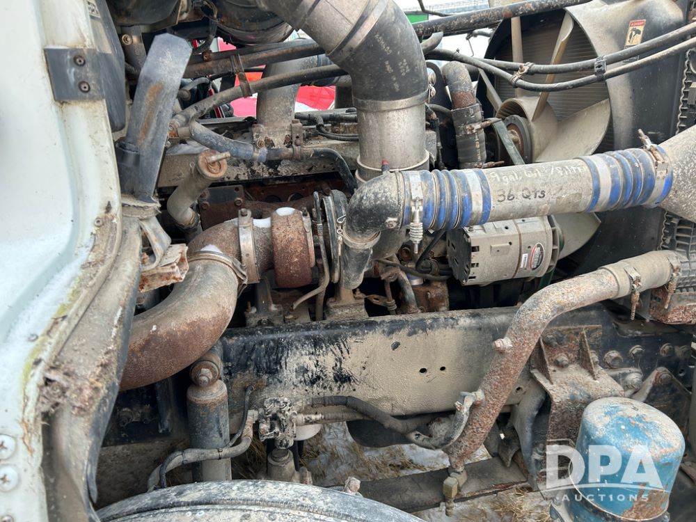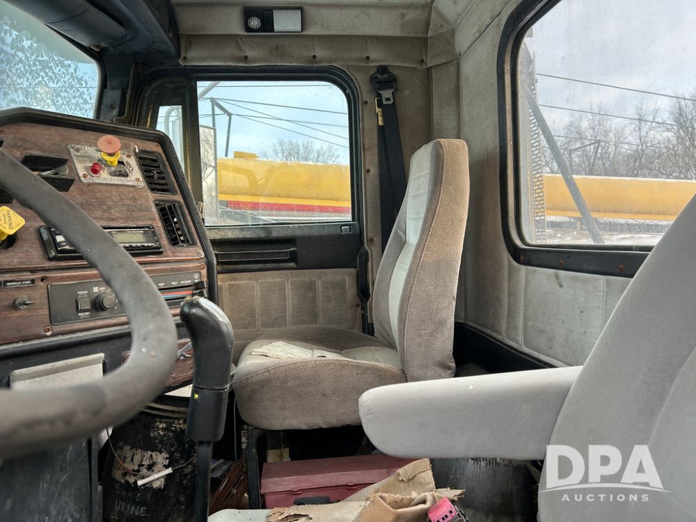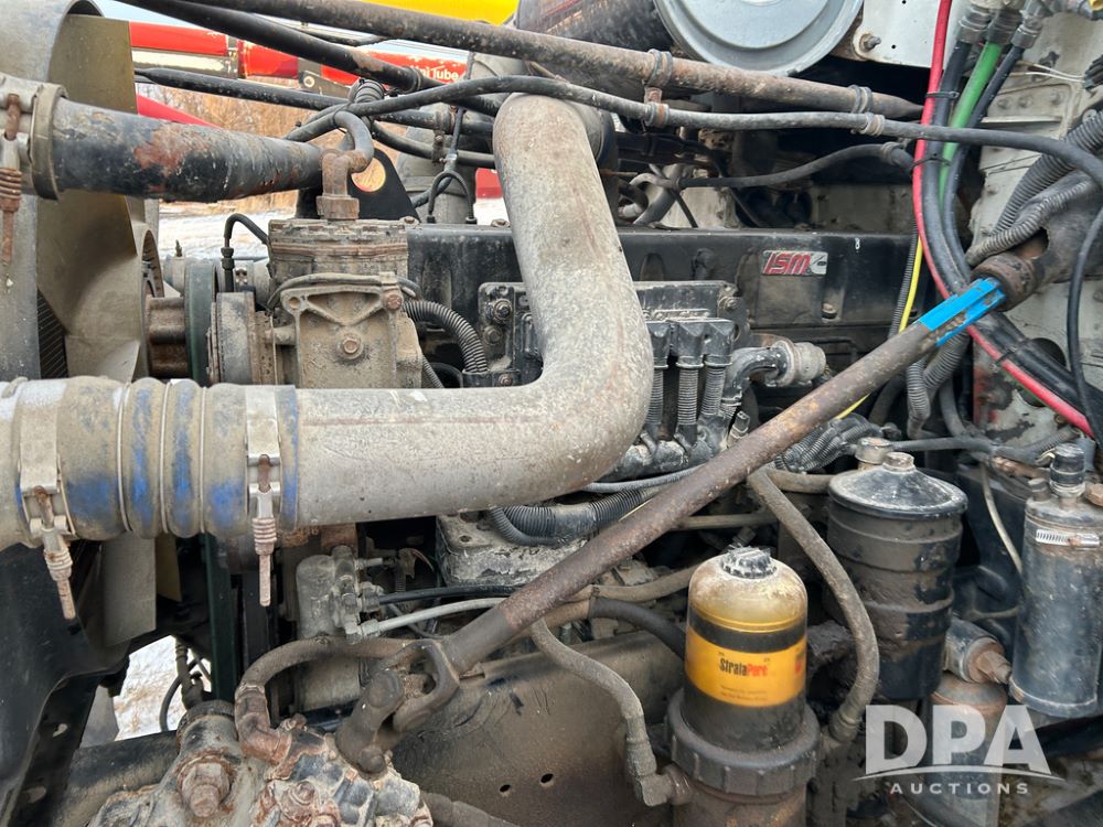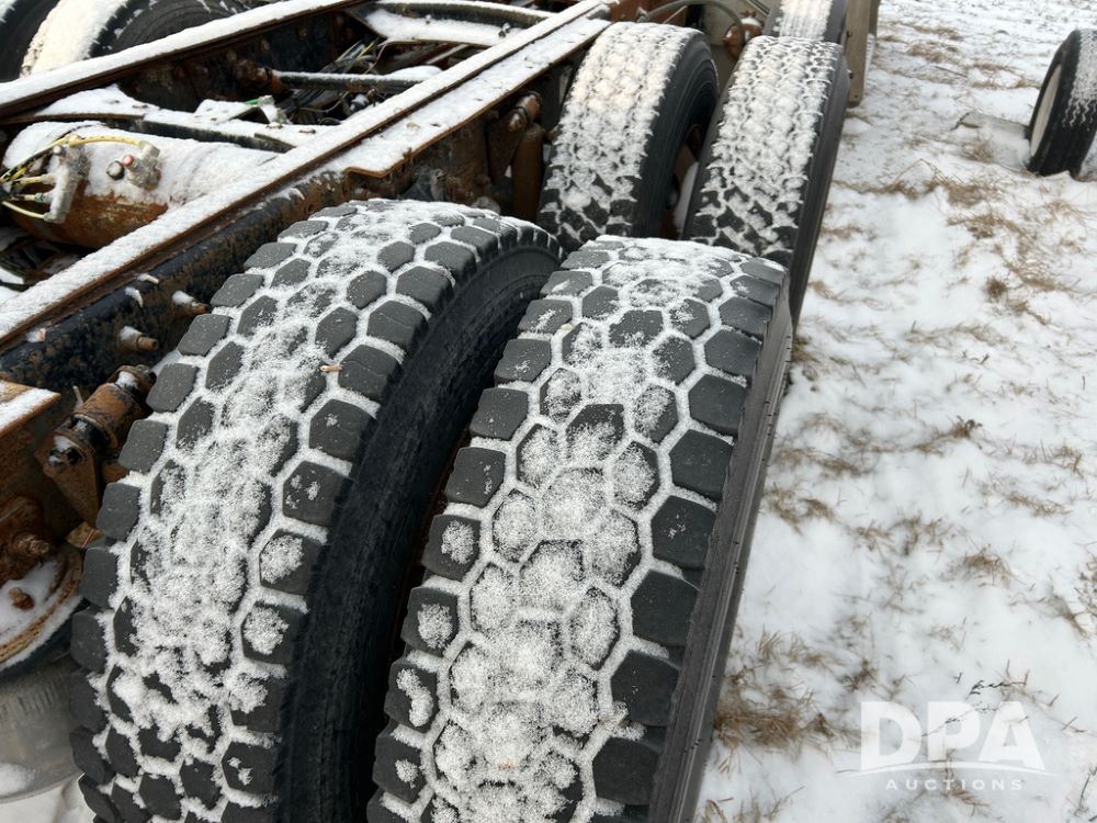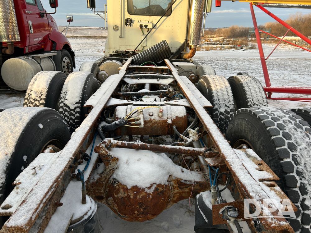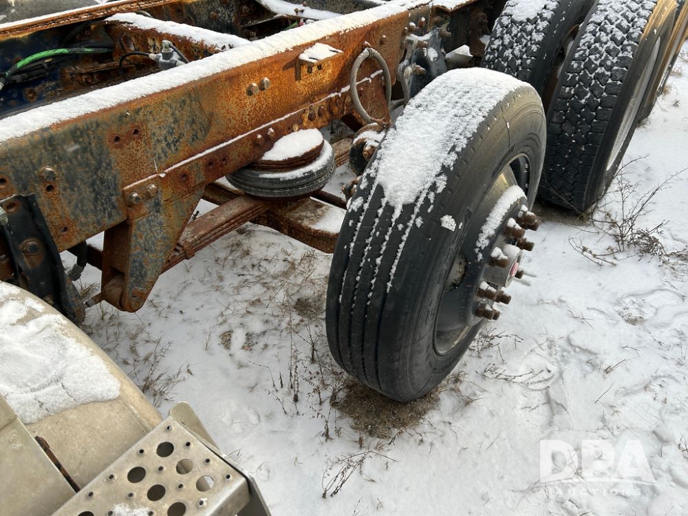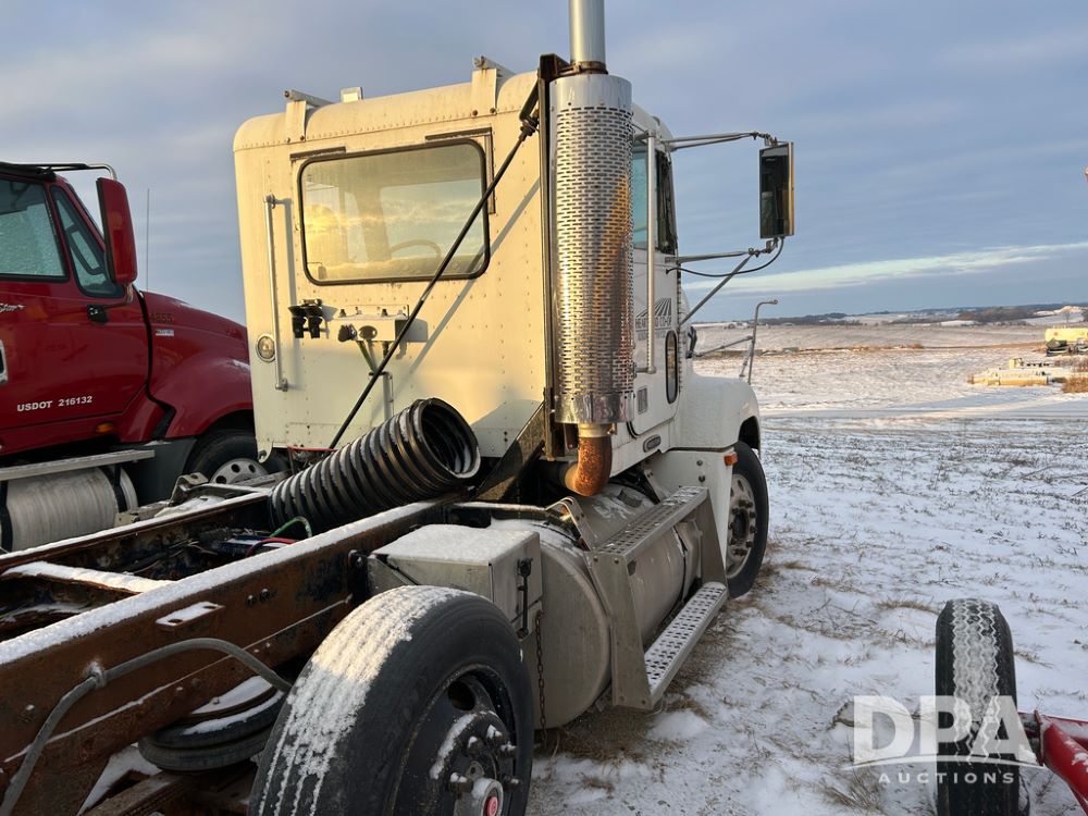 2000 Freightliner FLD112 Truck (CP1494, Unit 4135), cab/chassis, Cummins ISM diesel engine, 10 speed transmission, tandem axle full screw, air lift tag axle, air ride suspension, dual aluminum fuel tanks, cruise control, air dump valve, 22.5 tires, aluminum wheels, odometer reads 766,188 miles.
