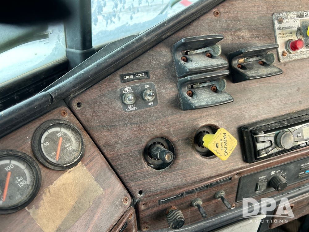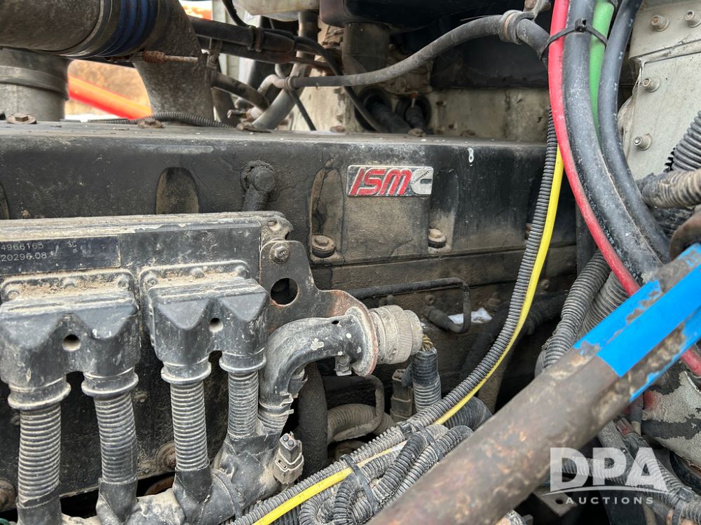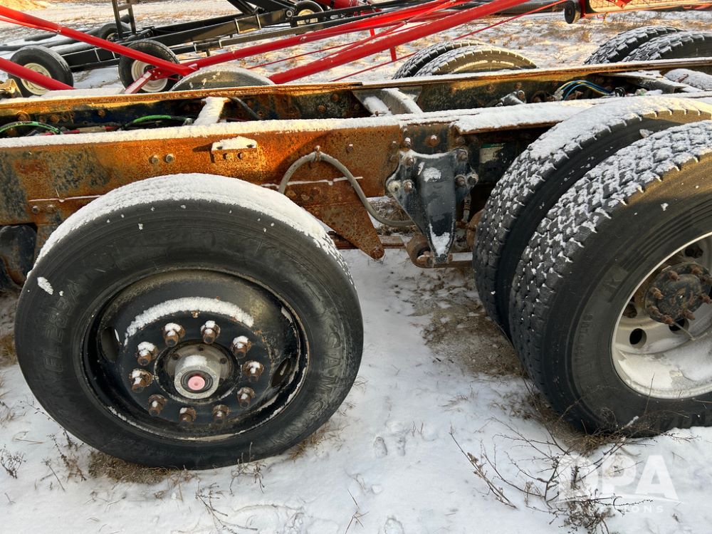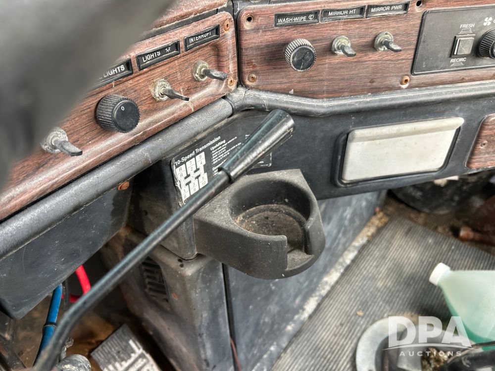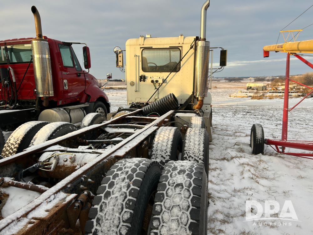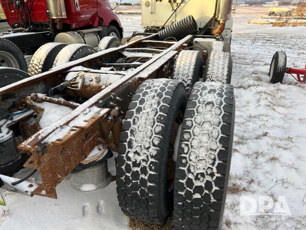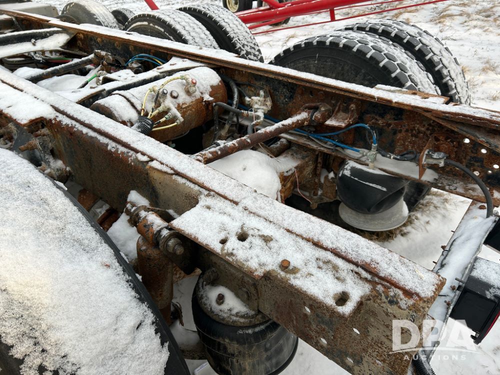 2000 Freightliner FLD112 Truck (CP1494, Unit 4135), cab/chassis, Cummins ISM diesel engine, 10 speed transmission, tandem axle full screw, air lift tag axle, air ride suspension, dual aluminum fuel tanks, cruise control, air dump valve, 22.5 tires, aluminum wheels, odometer reads 766,188 miles.