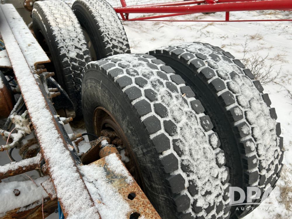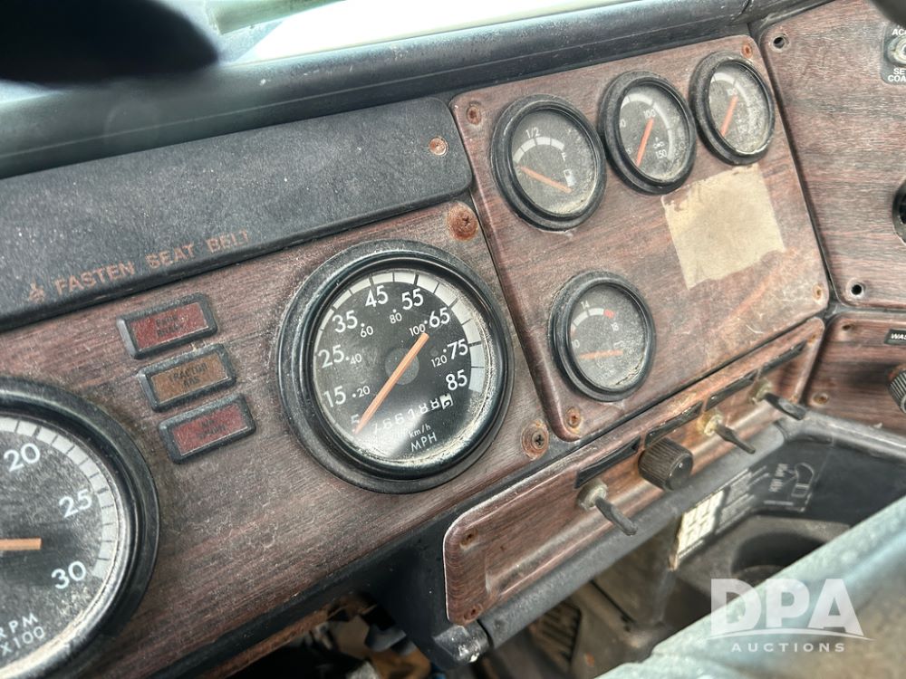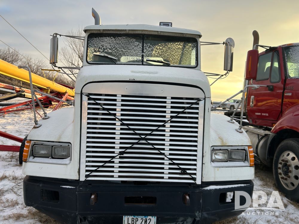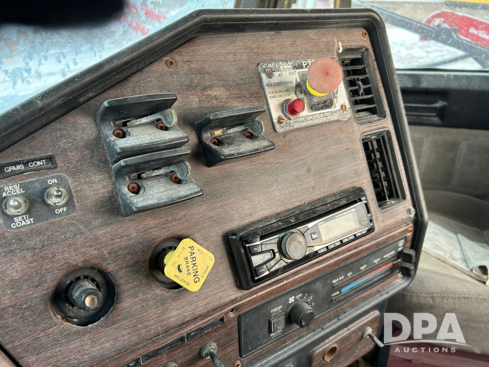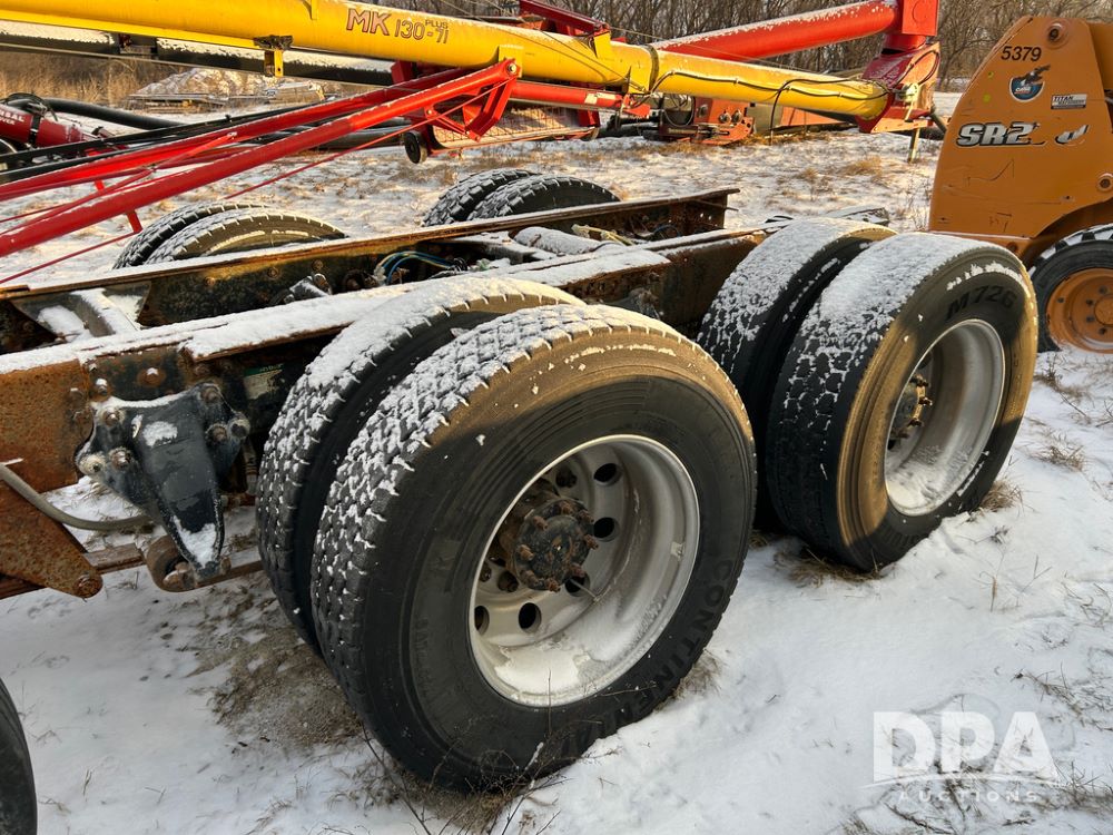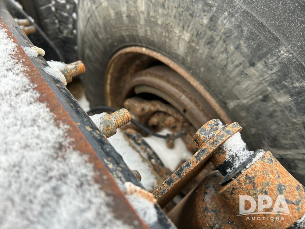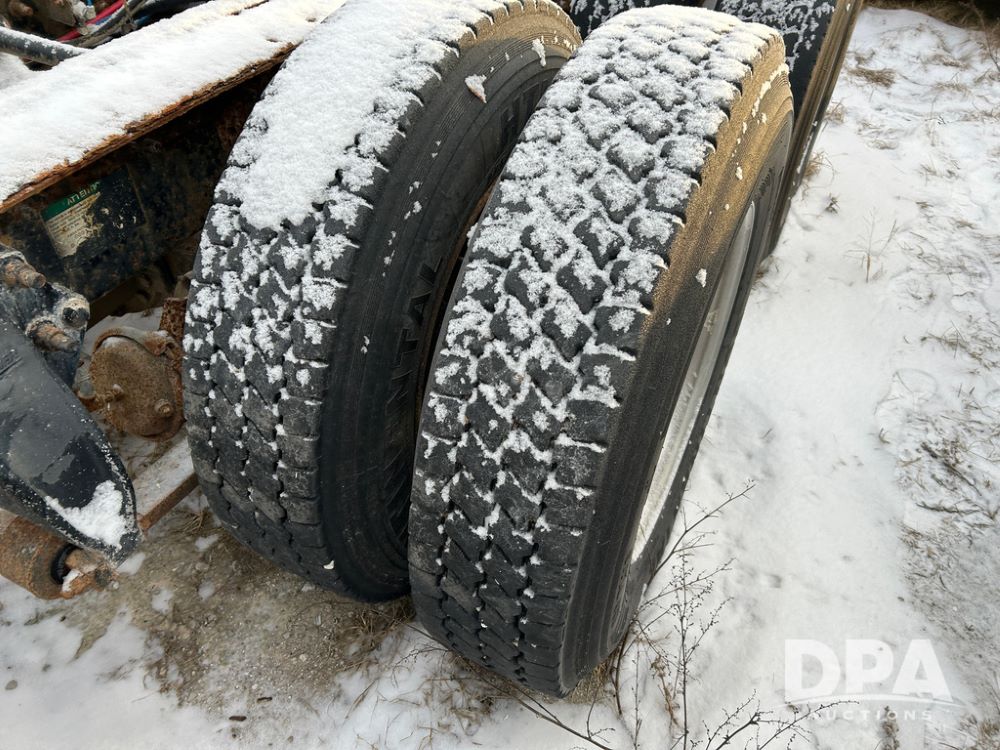 2000 Freightliner FLD112 Truck (CP1494, Unit 4135), cab/chassis, Cummins ISM diesel engine, 10 speed transmission, tandem axle full screw, air lift tag axle, air ride suspension, dual aluminum fuel tanks, cruise control, air dump valve, 22.5 tires, aluminum wheels, odometer reads 766,188 miles.