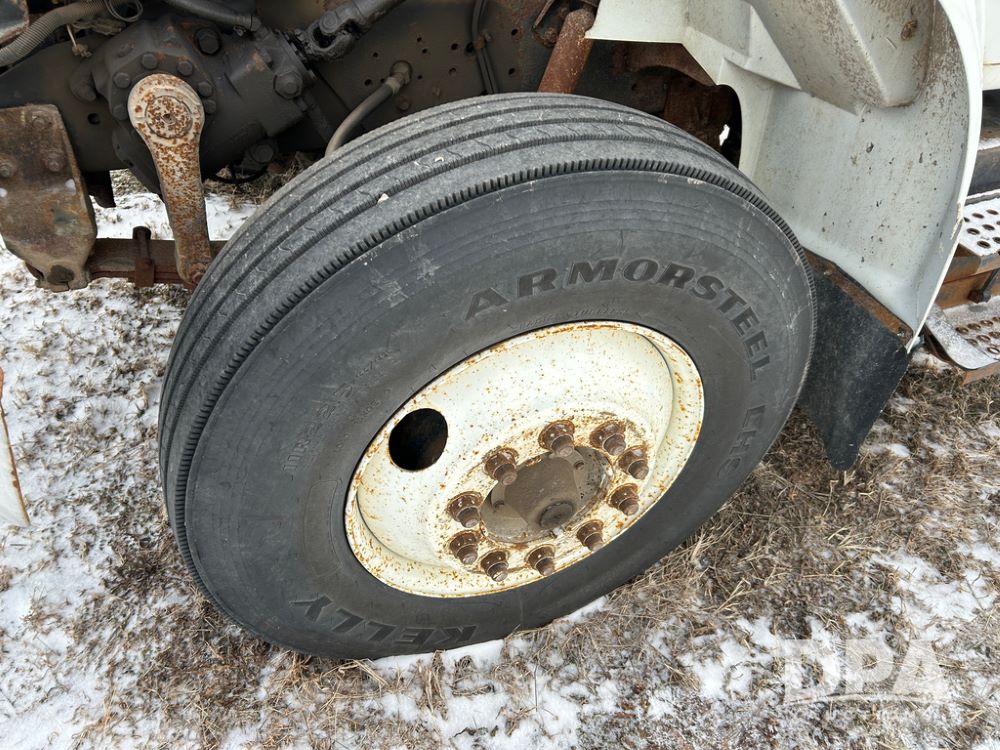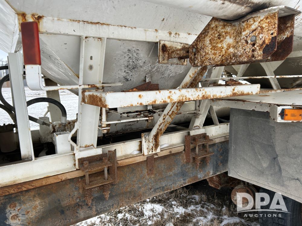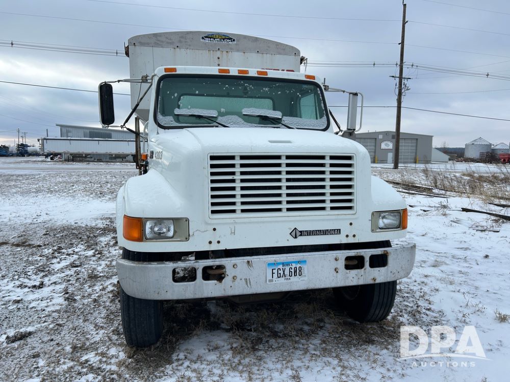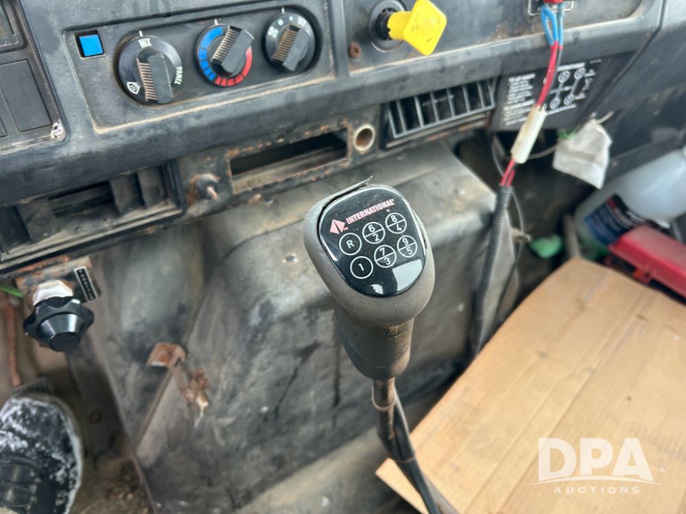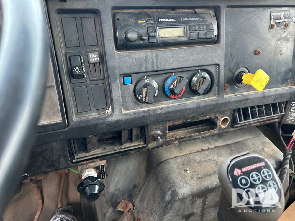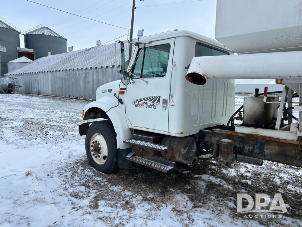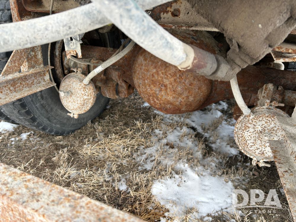 1995 International 4900 Dry Truck (CP1497, Unit 4303), NON RUNNER, DT466 diesel engine, 9 speed transmission, tandem axle full screw, Tyler stainless steel hydraulic 2 compartment dry tender box, side discharge auger, roll over tarp, cab heat/air conditioning, 22.5 tires, odometer reads 635,817 miles.