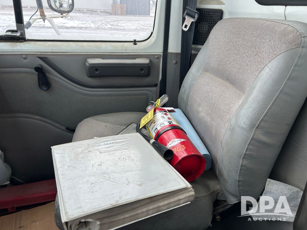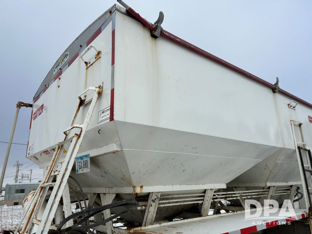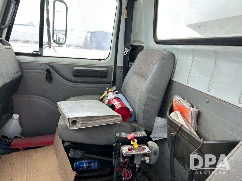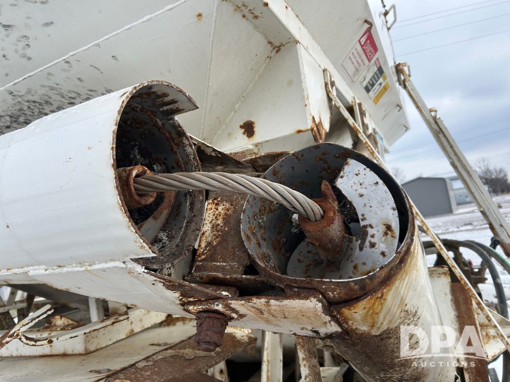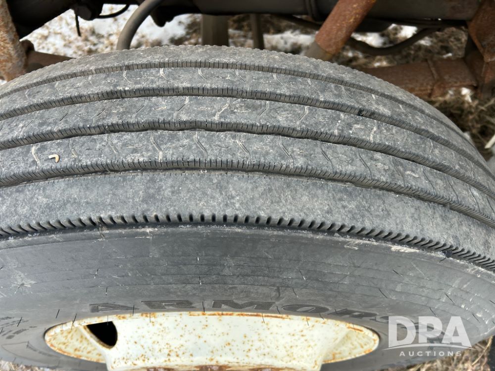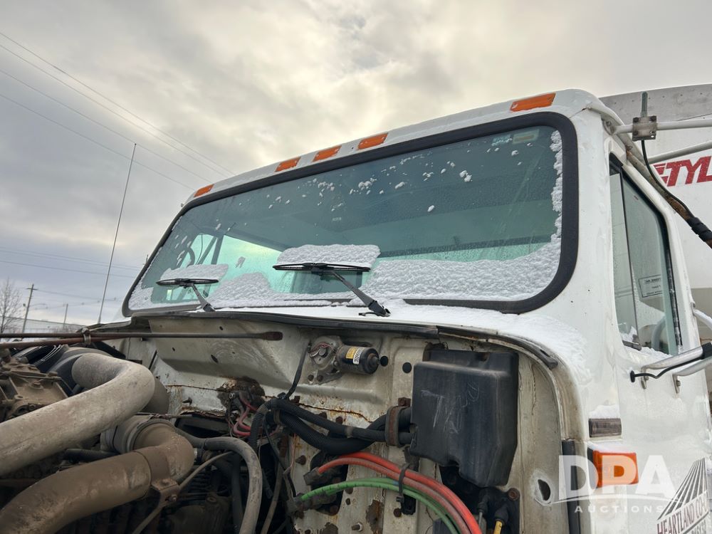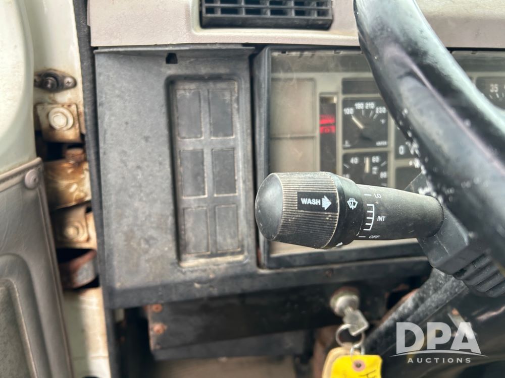 1995 International 4900 Dry Truck (CP1497, Unit 4303), NON RUNNER, DT466 diesel engine, 9 speed transmission, tandem axle full screw, Tyler stainless steel hydraulic 2 compartment dry tender box, side discharge auger, roll over tarp, cab heat/air conditioning, 22.5 tires, odometer reads 635,817 miles.