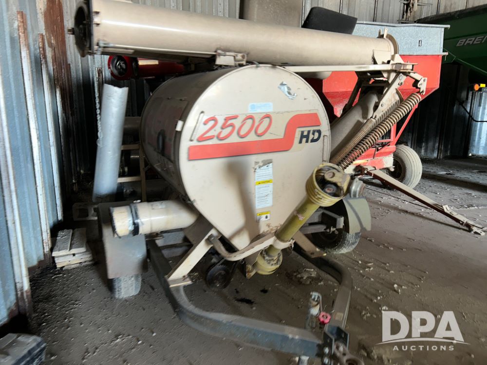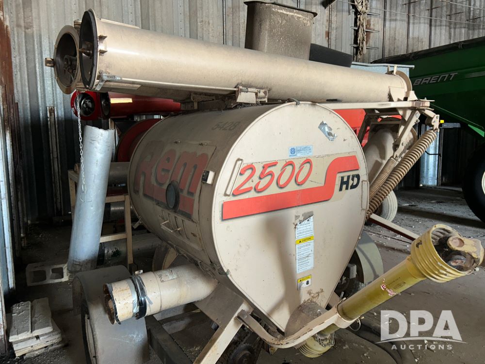 Rem Grain Vac (CP1512, Unit 5428), model 2500 portable grain vac, PTO Drive, single axle gear and some flex pipe included.