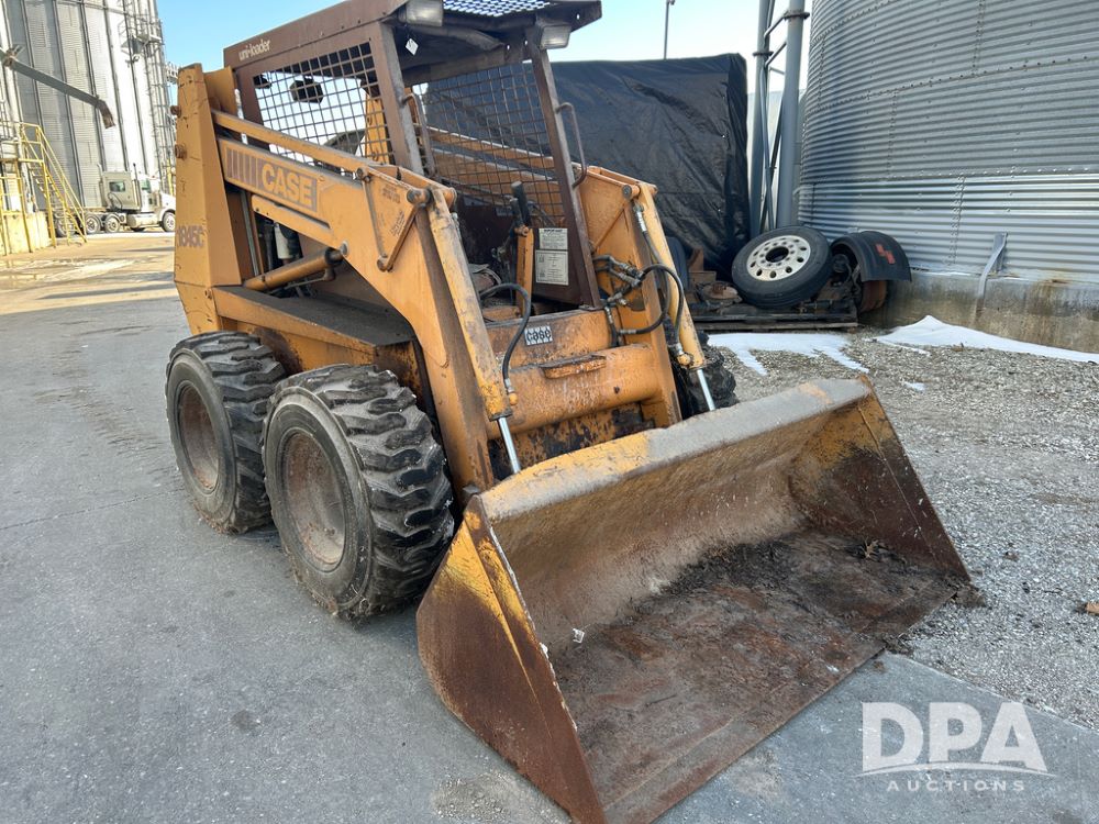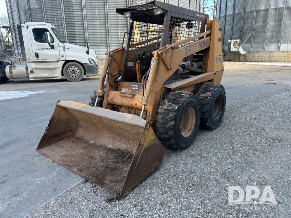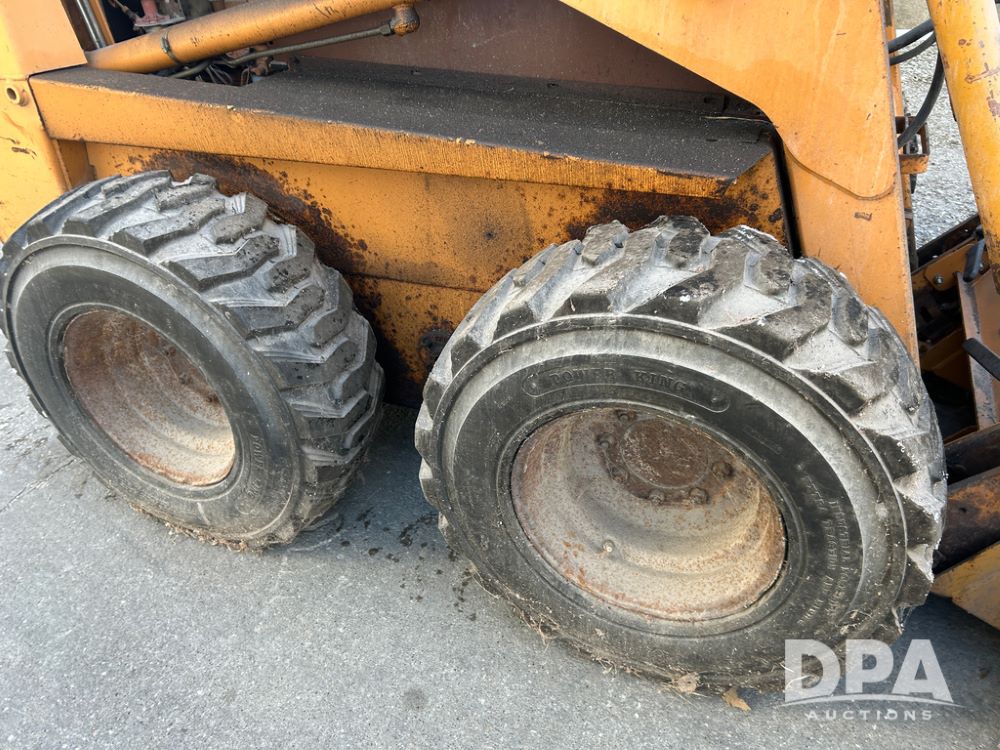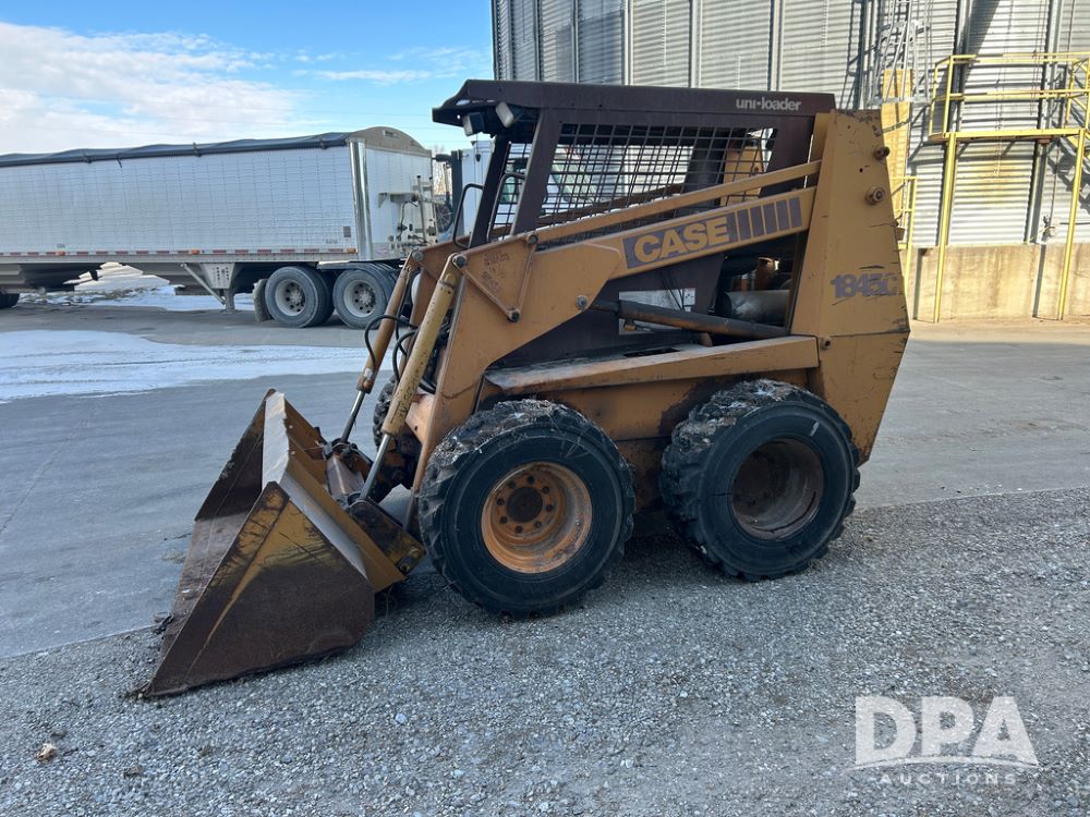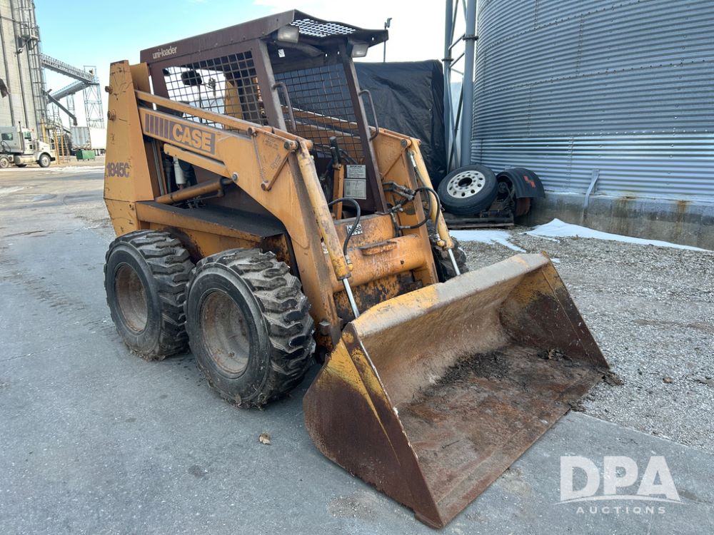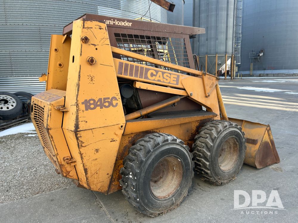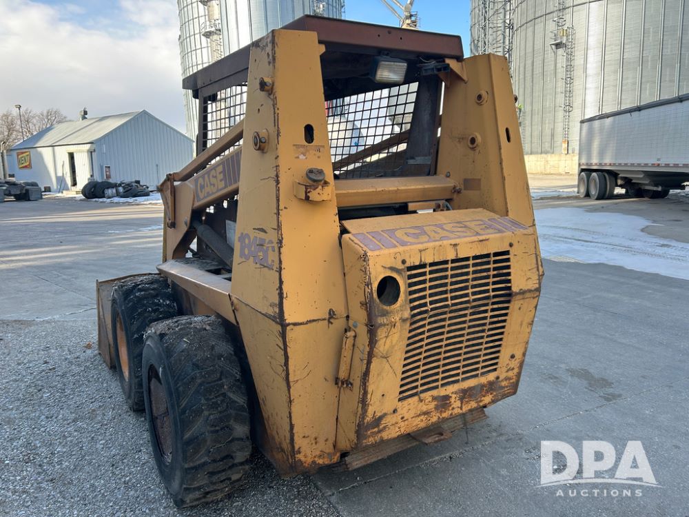 Case 1845C Skid Loader (CP1516, Unit 5581), diesel engine, hydrostatic drive, open station, auxiliary hydraulic outlets, 72'' front bucket, 12-16.5 tires, shows 4070 hours on meter.