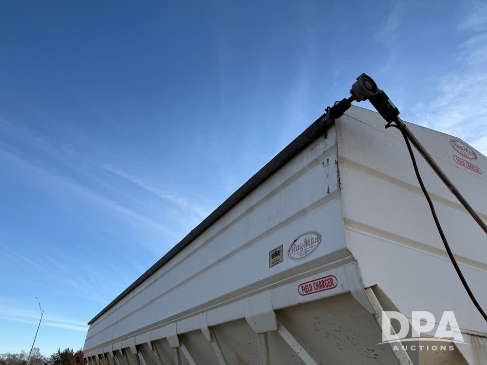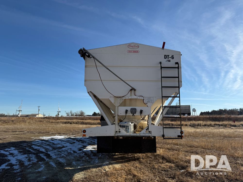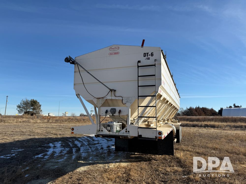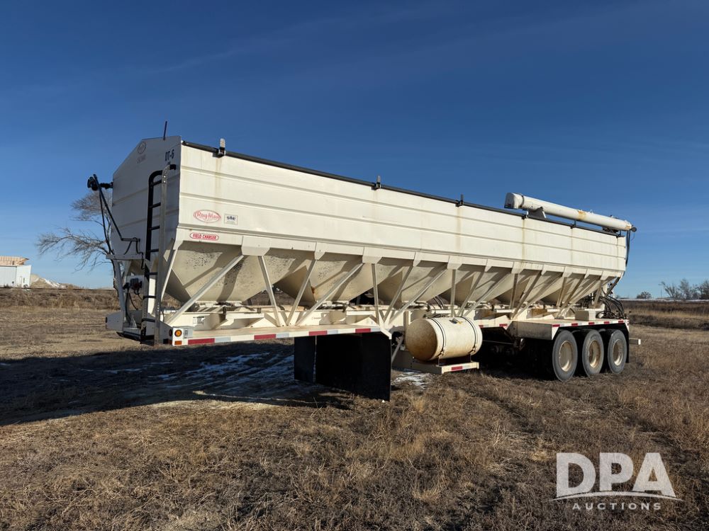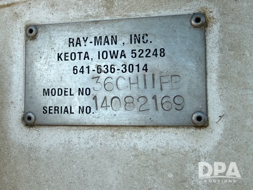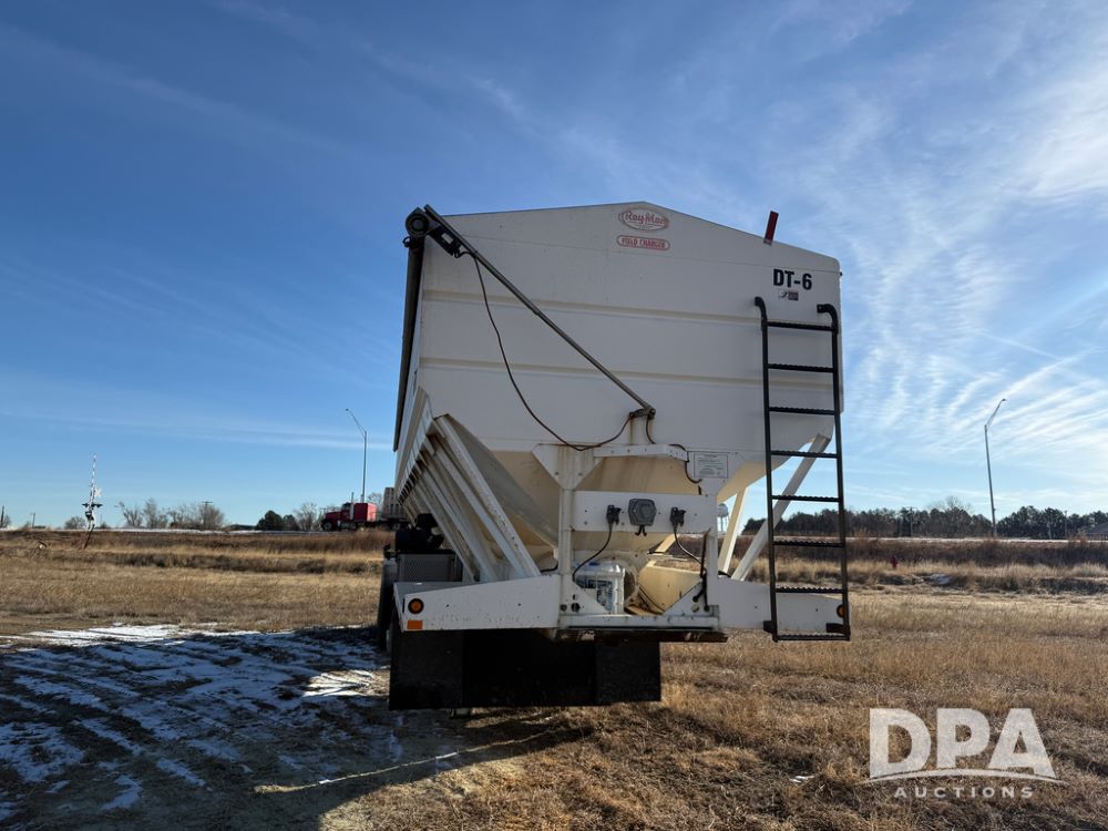 2014 Ray-Man Field Charger Dry Tender Trailer (NP6438, Unit DT-6), Ray-Man Model 36CHIIFB dry tender box (S/N 14082169), approx. 36 ton capacity, hydraulic, Cummins B3.3 diesel engine (74 HP gross rated), electric start, shows 1,621 hours, overhead auger, electric roll tarp, triple axle, spring suspension, Haldex ABS, Holland landing gear, front/rear ladder, 11R22.5 tires, GVWR 87,500 pounds.