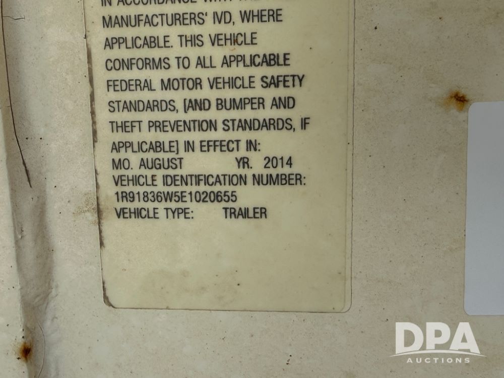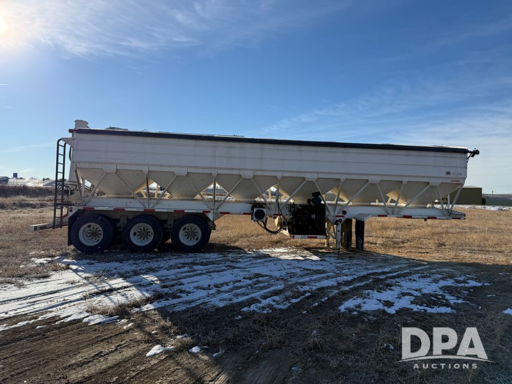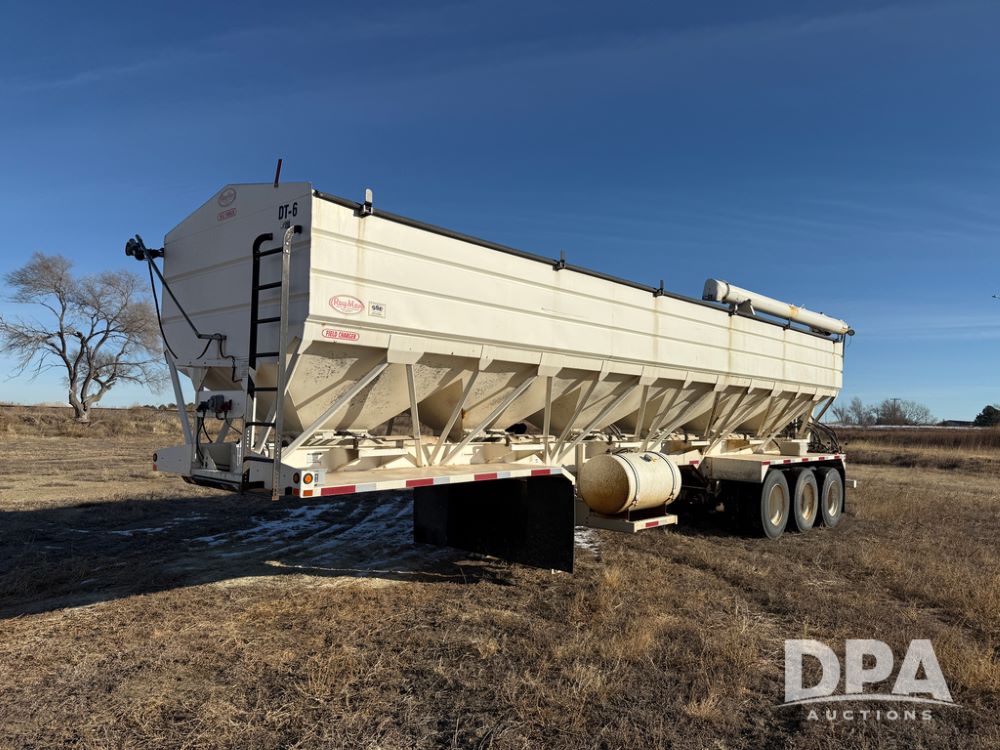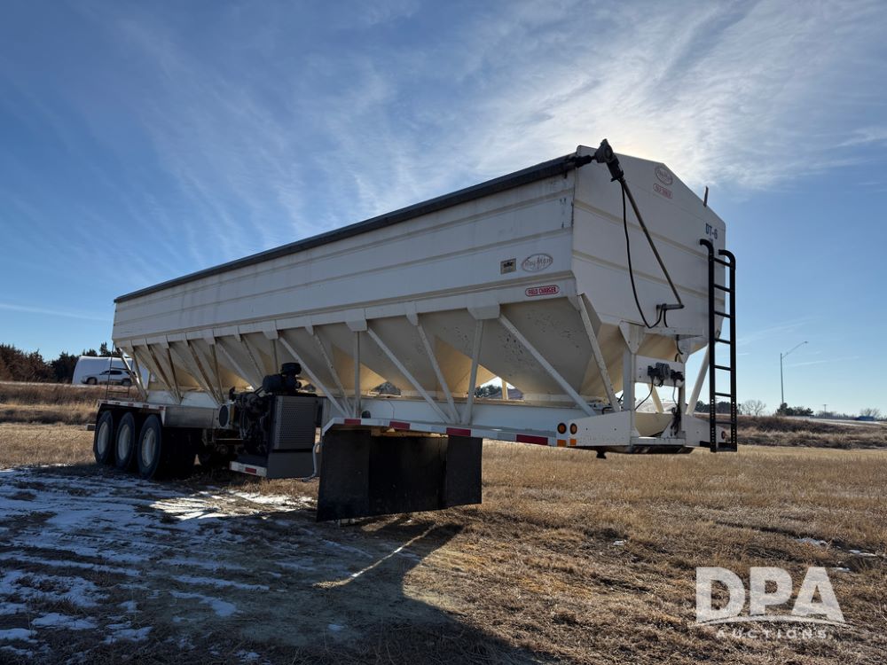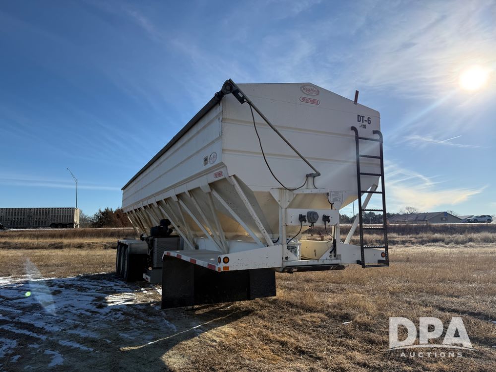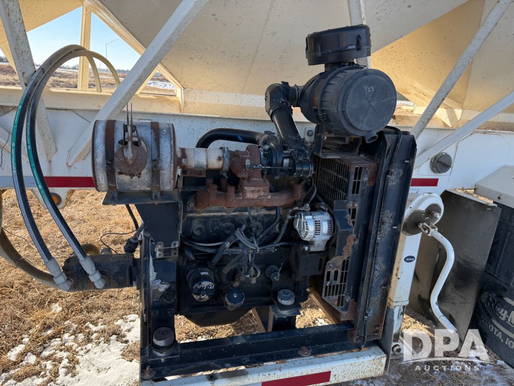 2014 Ray-Man Field Charger Dry Tender Trailer (NP6438, Unit DT-6), Ray-Man Model 36CHIIFB dry tender box (S/N 14082169), approx. 36 ton capacity, hydraulic, Cummins B3.3 diesel engine (74 HP gross rated), electric start, shows 1,621 hours, overhead auger, electric roll tarp, triple axle, spring suspension, Haldex ABS, Holland landing gear, front/rear ladder, 11R22.5 tires, GVWR 87,500 pounds.