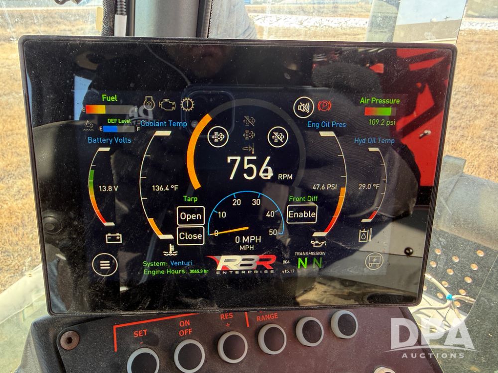 2020 RBR Venturi 400 Dry Floater (NP6439), Cummins QSL9 diesel engine, Allison automatic transmission, heat, air conditioning, Am/Fm radio, cruise, buddy seat, CaseIH 810 Flex-Air System (S/N JFGY438APJT048045), 70' boom, electric roll tarp, Michelin VF380/90R46 tires, PYLE rear digital camera, Raven GPS, Raven Viper 4 monitor, shows 3,045 hours.