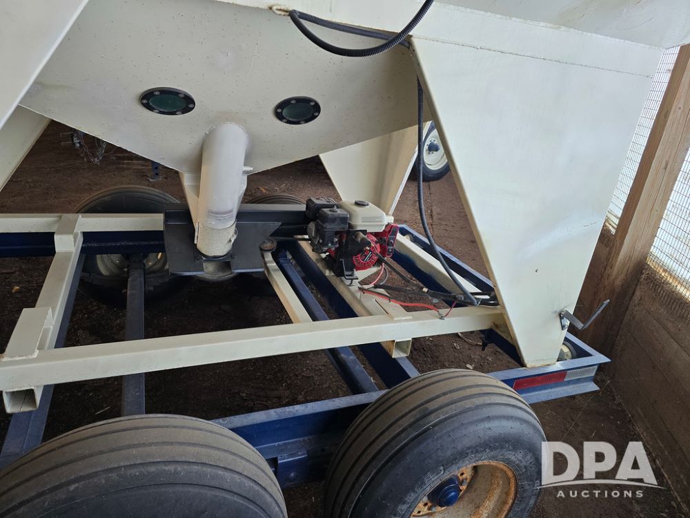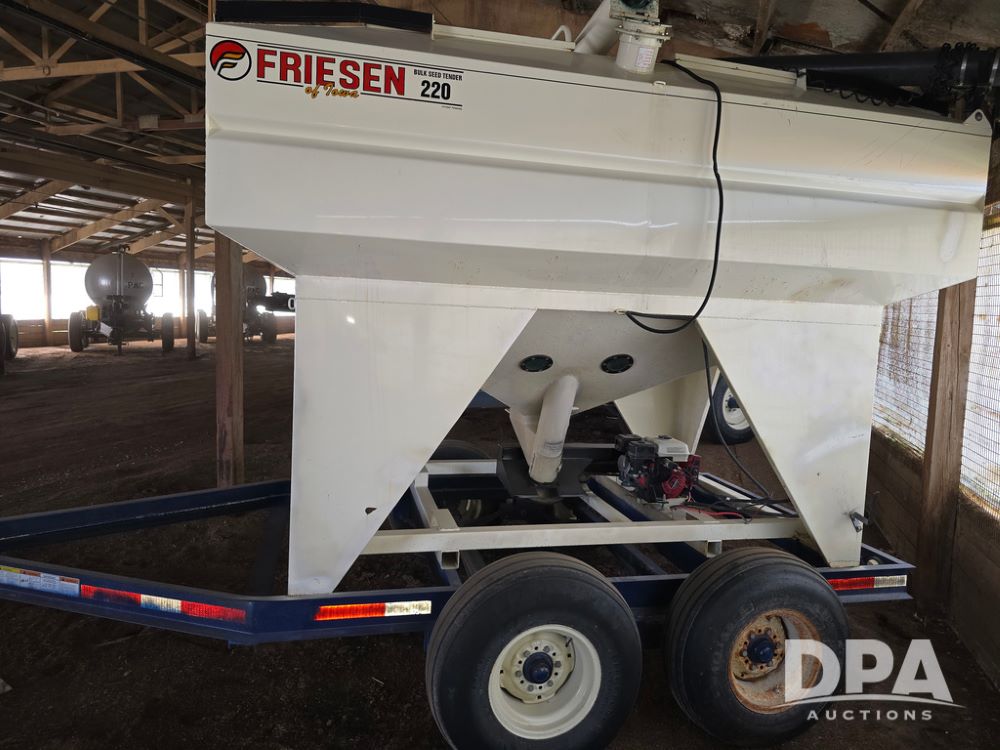 2002 Friesen 220 Bulk Seed Tender (NP6459, Unit 8), (2) 110 bushel compartments, 6" poly bristle auger, Honda 5.5HP gas engine with electric start, toggled throttle/clutch control for variable speed, bumper pull, tandem axle, good tires.