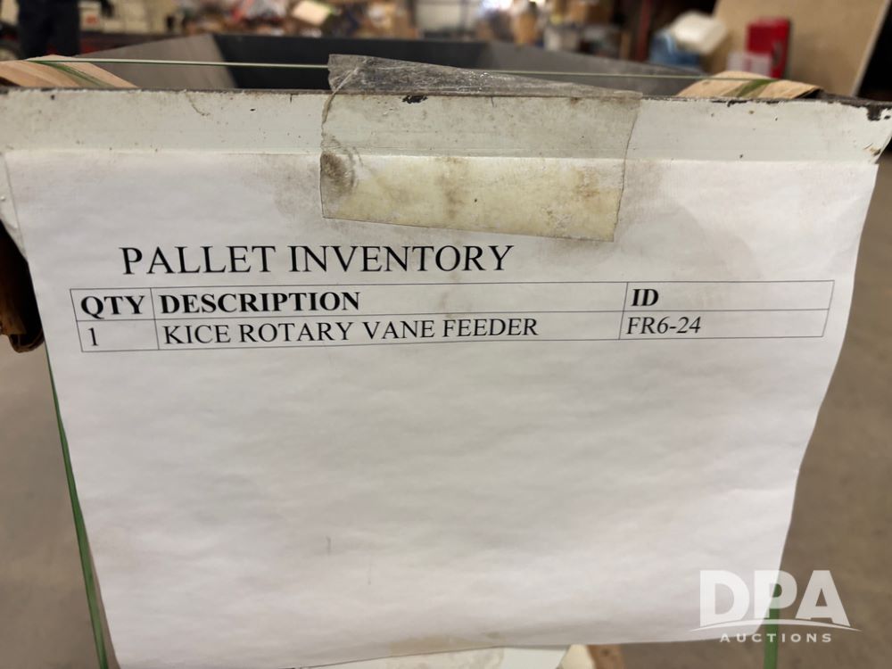 Kice FR6-24 Rotary Vane Feeder (DR12989 P42A), model HC3100, 8 gauge steel hopper, discharge outlet, 1140 output torque, provides constant volumetric rate.