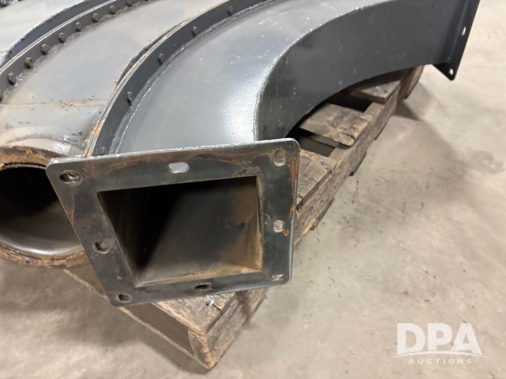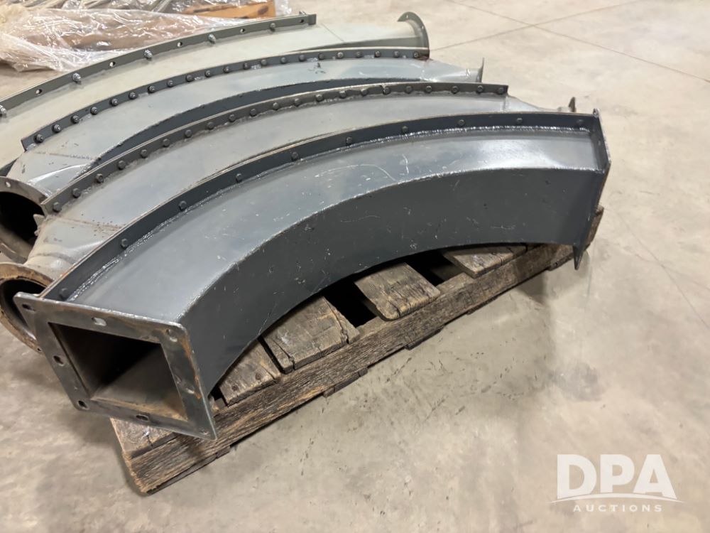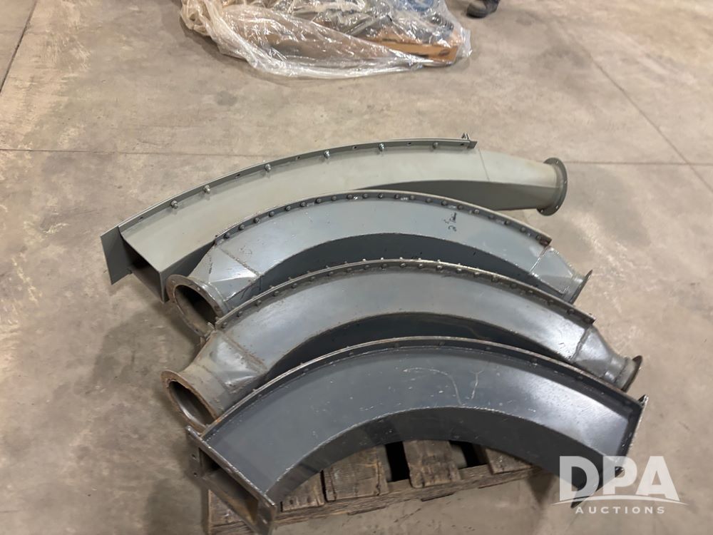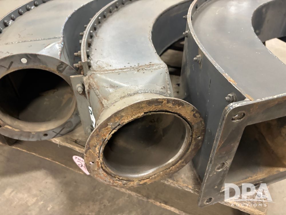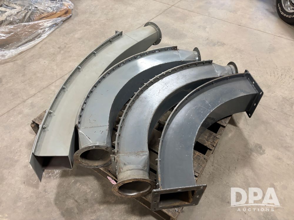 Steel Back Sweep Elbows (DR12999 P21A), 1-6'' 90 degree square in/out, 2-6'' 90 degree 10 gauge square in/out, 1-6'' 45 degree 10 gauge w/ square to round, all back sweep elbows sell as single lot.
