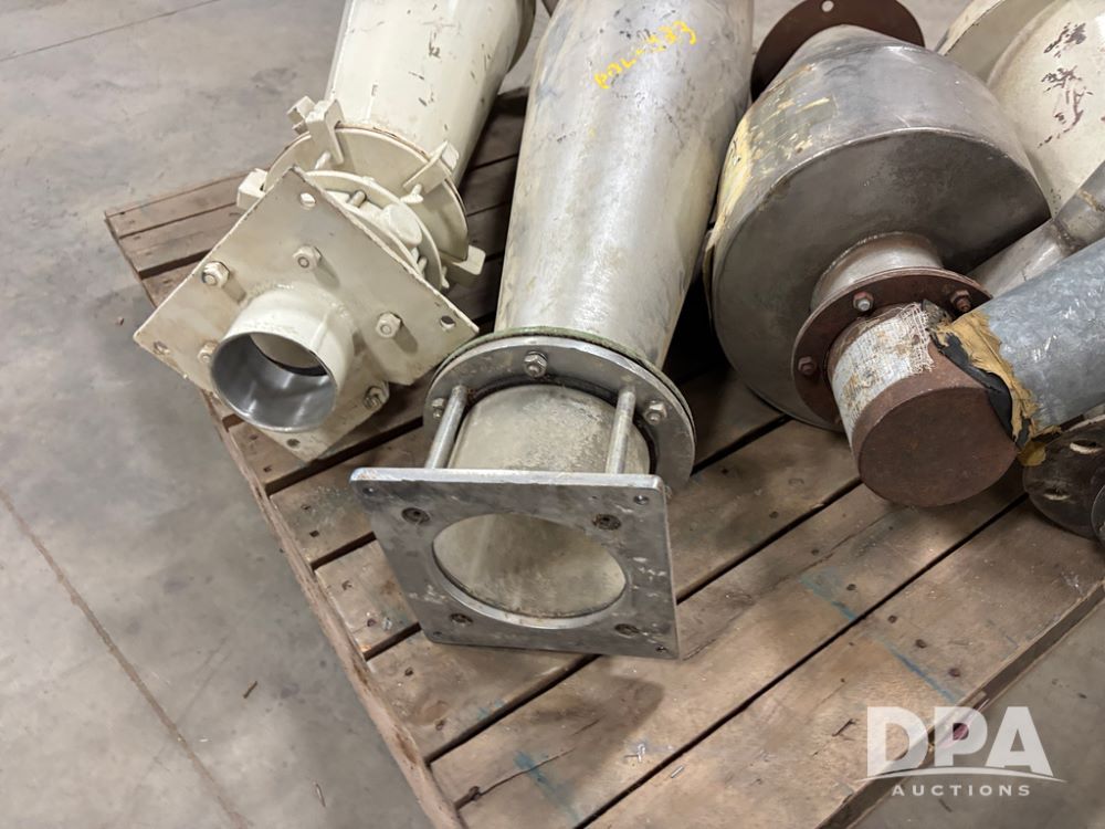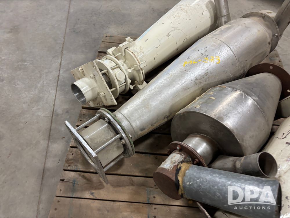 Small Cyclones (DR13012 P18A), 4- small cyclones, Kice 3''X4'' w/5 discharge 34'' tall, Keystone 4'' w/14'' discharge 41'' tall, 2-3/4'' w/6'' discharge 52'' left hand, 3''X4'' w/5'' discharge 30'' tall left hand, all four sell as single lot.