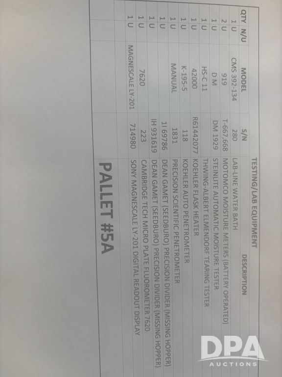 Lab Testing Equipment (DR13025 P5A), pallet lot of several lab and testing equipment, moisture testers, penetrometers, complete list is seen in picture.