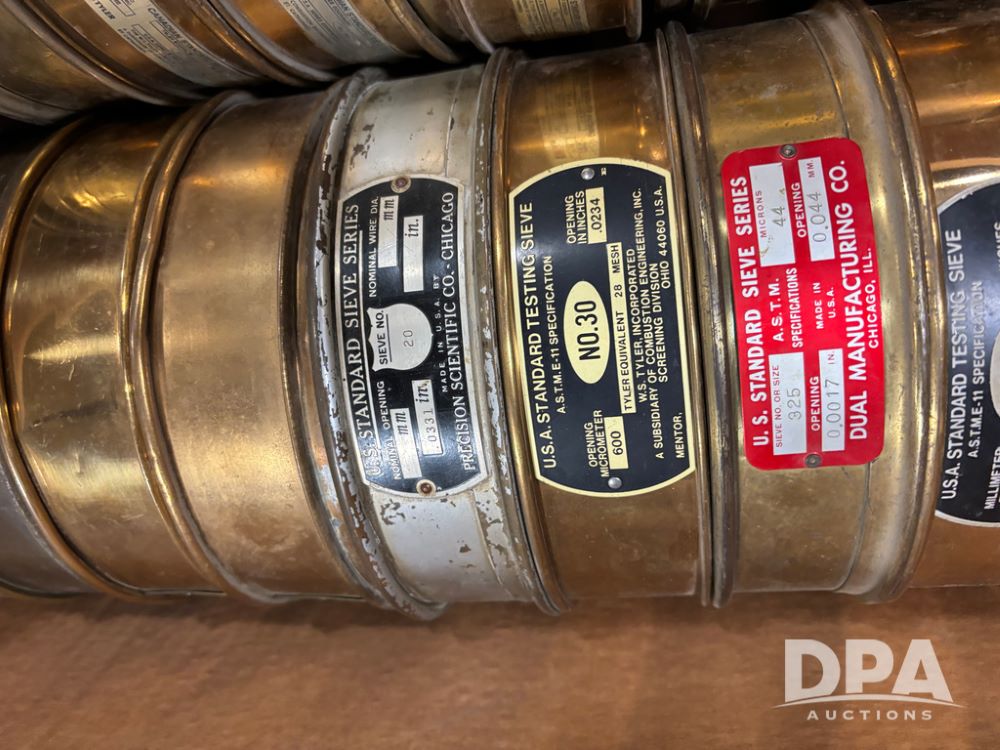 8'' Test Sieves (DR13027 P4A), large assortment of 8'' test sieves, complete list is seen in picture.