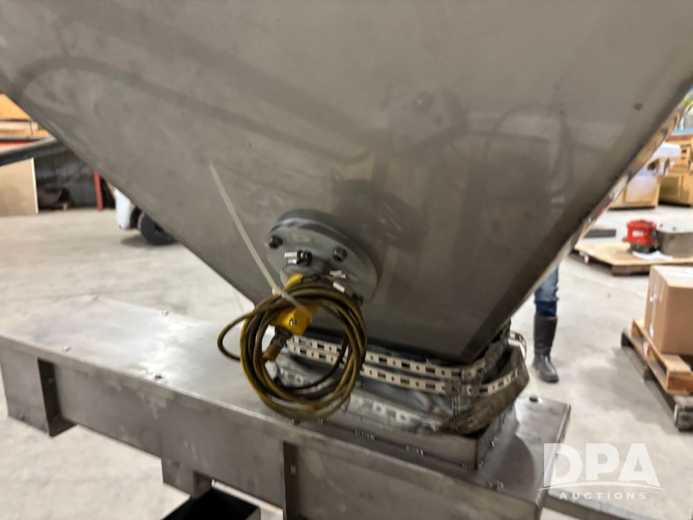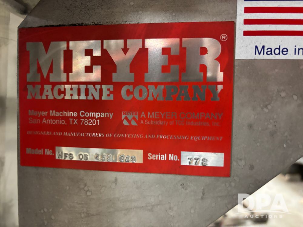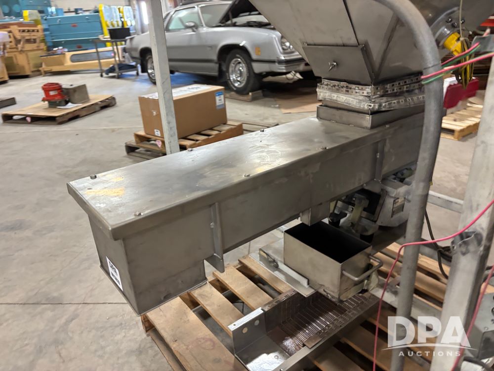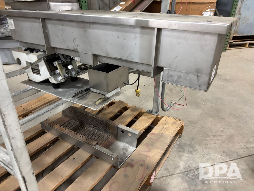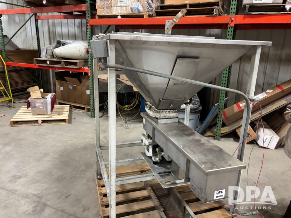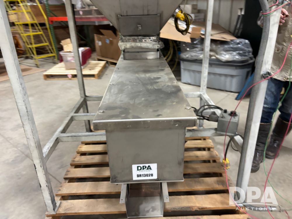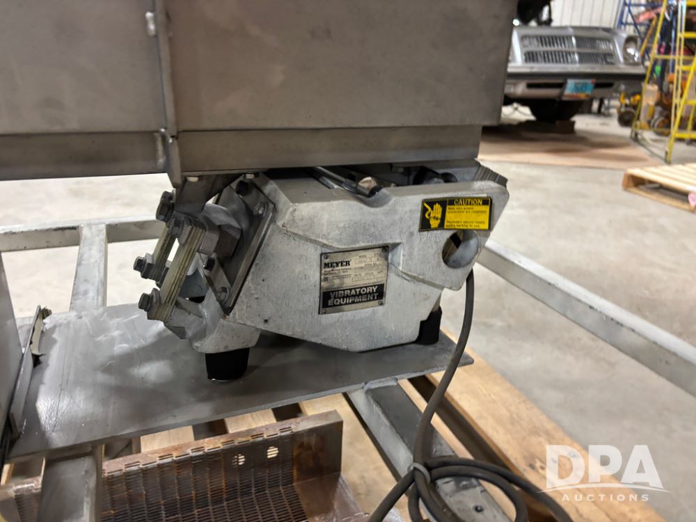 Meyer Stainless Steel Vibratory Hopper (DR13028 P51A), stainless steel hopper/feeder w/vibratory conveyor, proximity sensor hopper feeder, 8''X6'' hopper discharge, conveyor is 8''X42'', could be use din food grade.