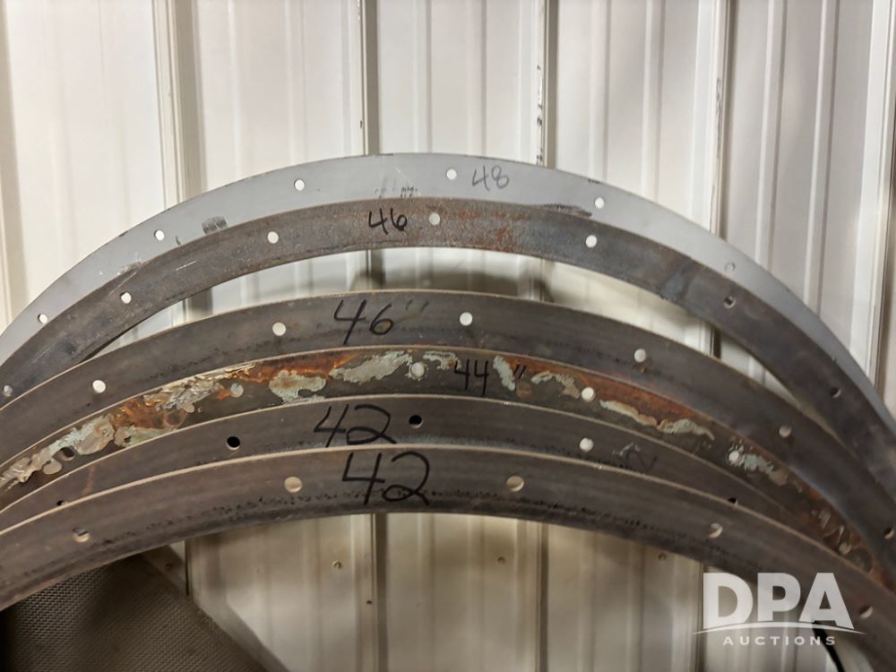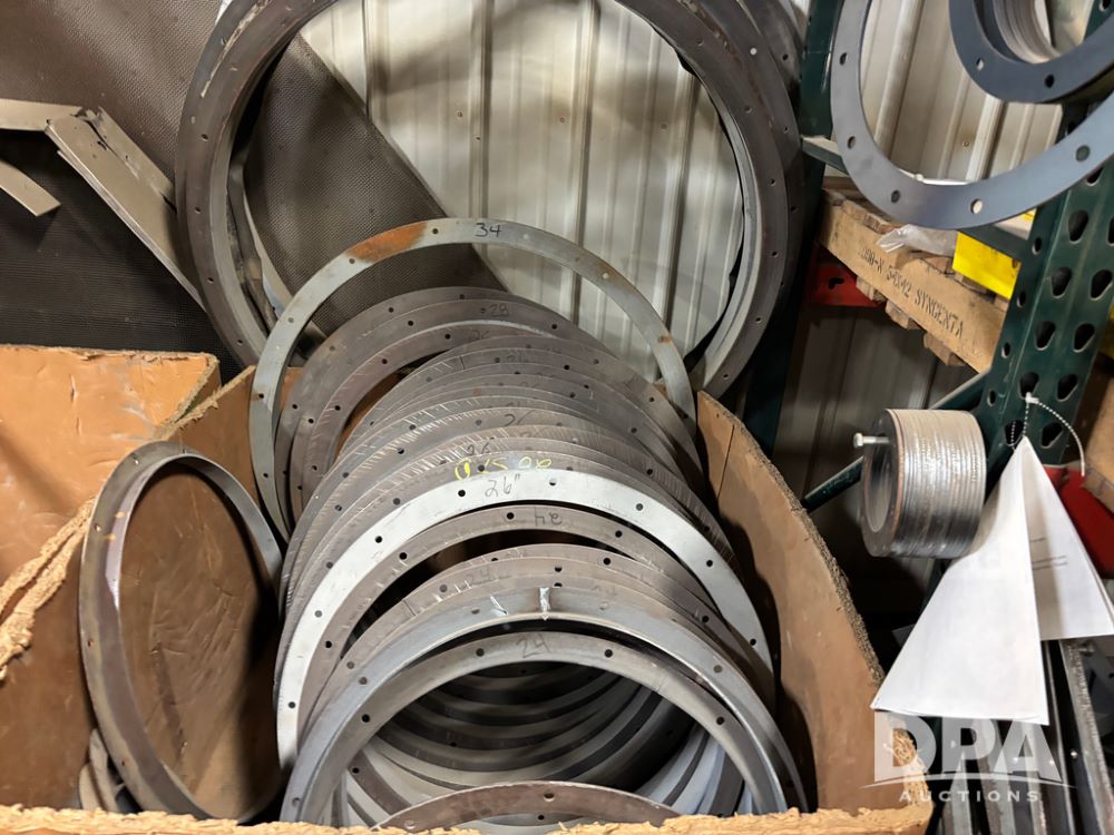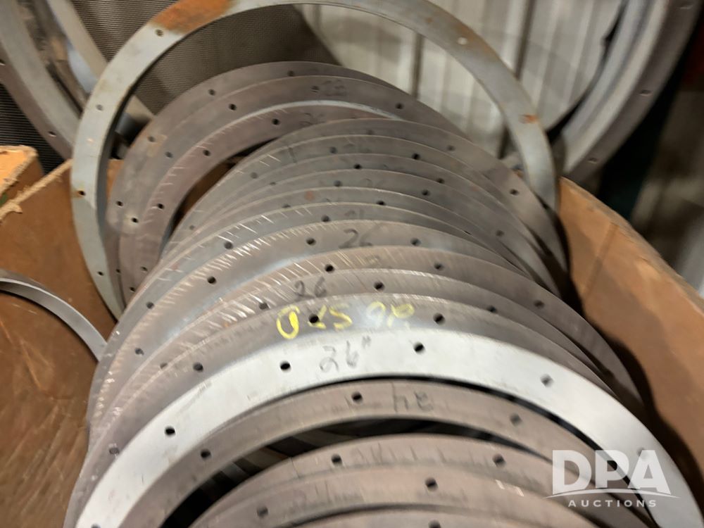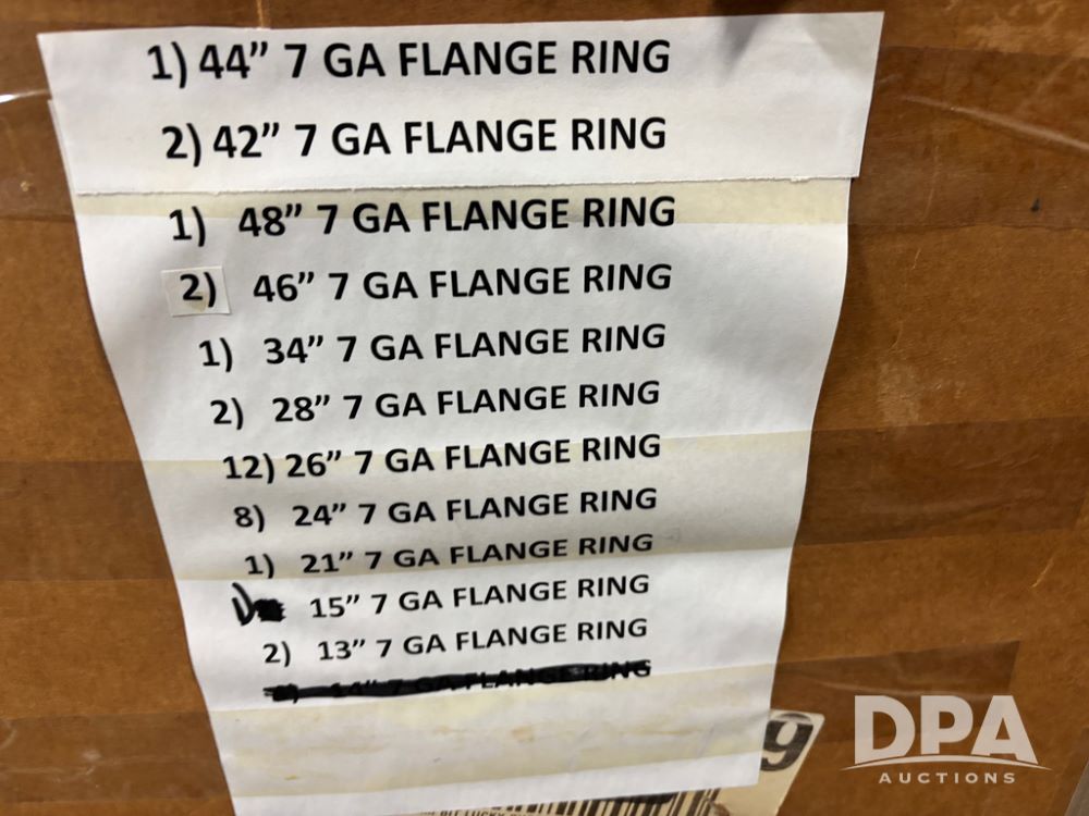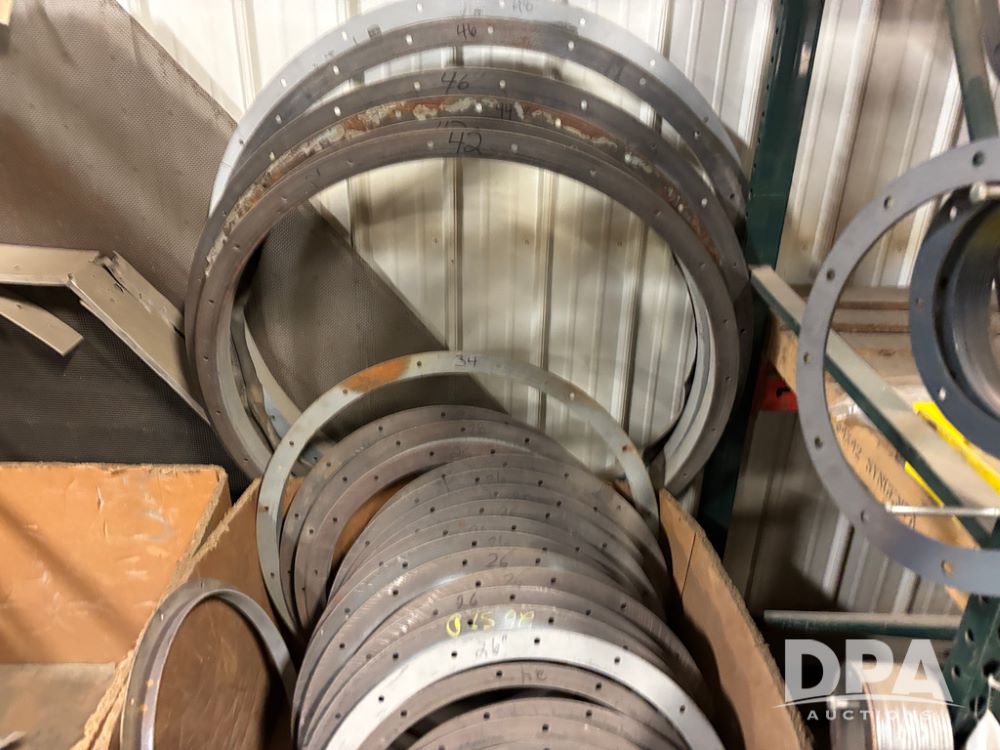 NEW Round Angle Flanges (DR13032 P46A), assorted NEW round angle flanges, 2-10ga 13'', 1-7ga 15'', 1-7ga 21'', 8-7ga 24'', 12- 7ga26'', 2-7ga 28'', 1-7ga 34'', 2-7ga 42'', 1-7ga 44'', 2-7ga 46'' and 1-7ga 48'', all sell as single lot.