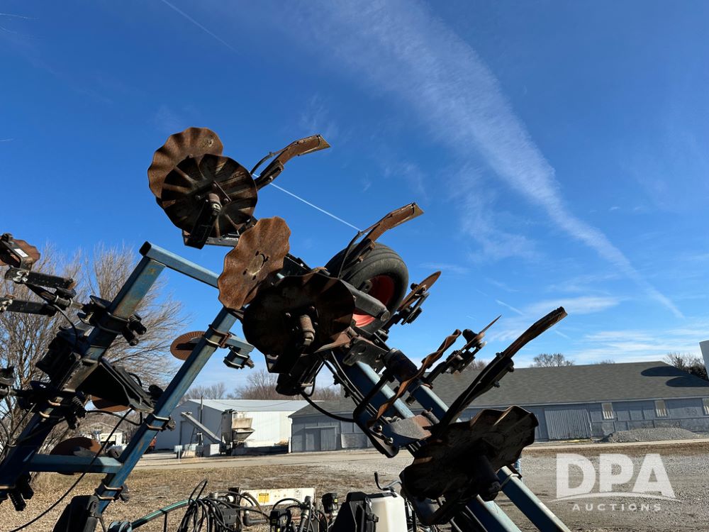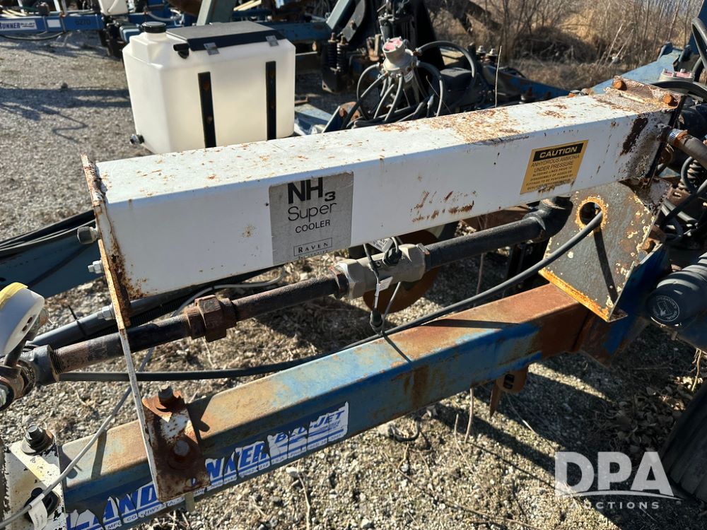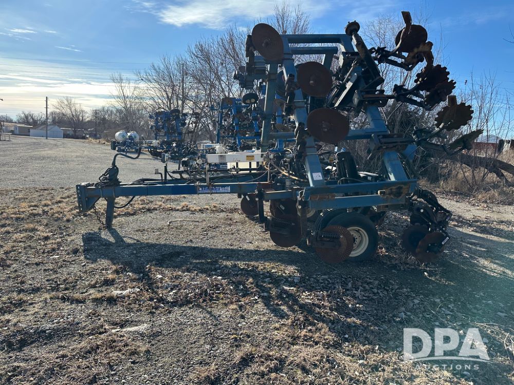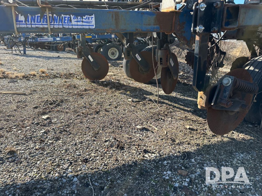 Blu-Jet Land Runner Tool Bar (DPA5008 Unit 6176), 11 knife Landwalker tool bar, front fluted coulters, Raven cooler, rear dual fluted sealers, hydraulic wings & gauge wheels, tandem axle main frame,11L-15 tires.